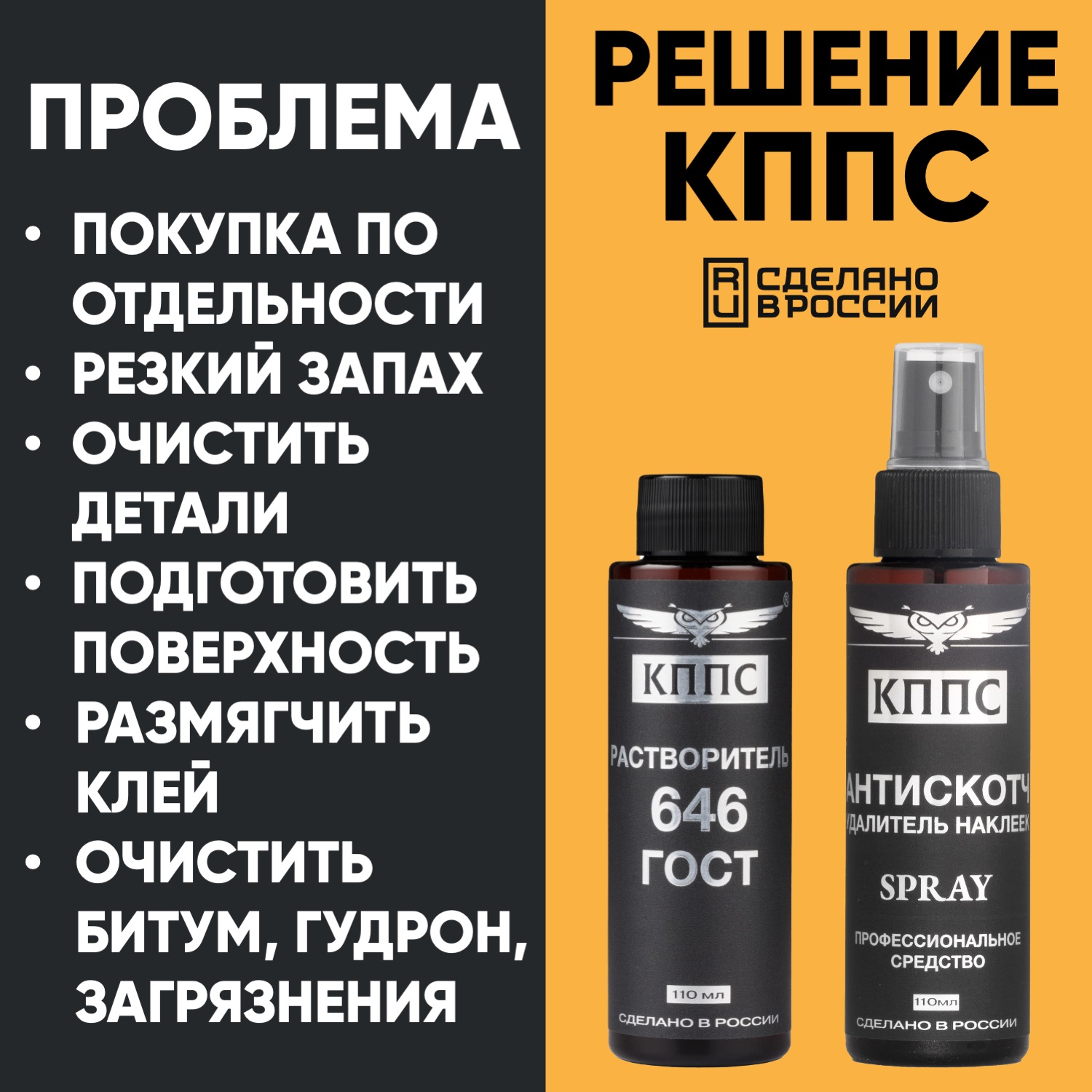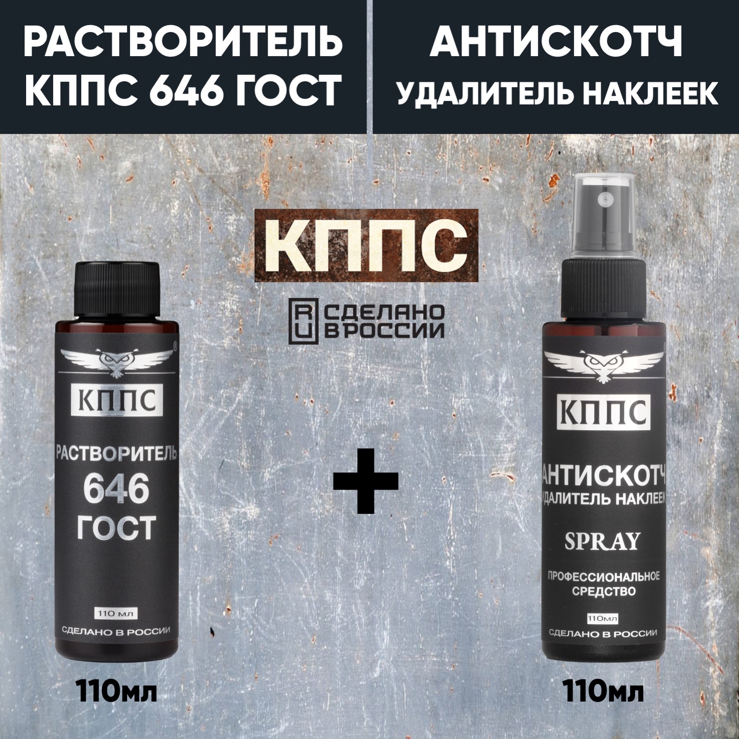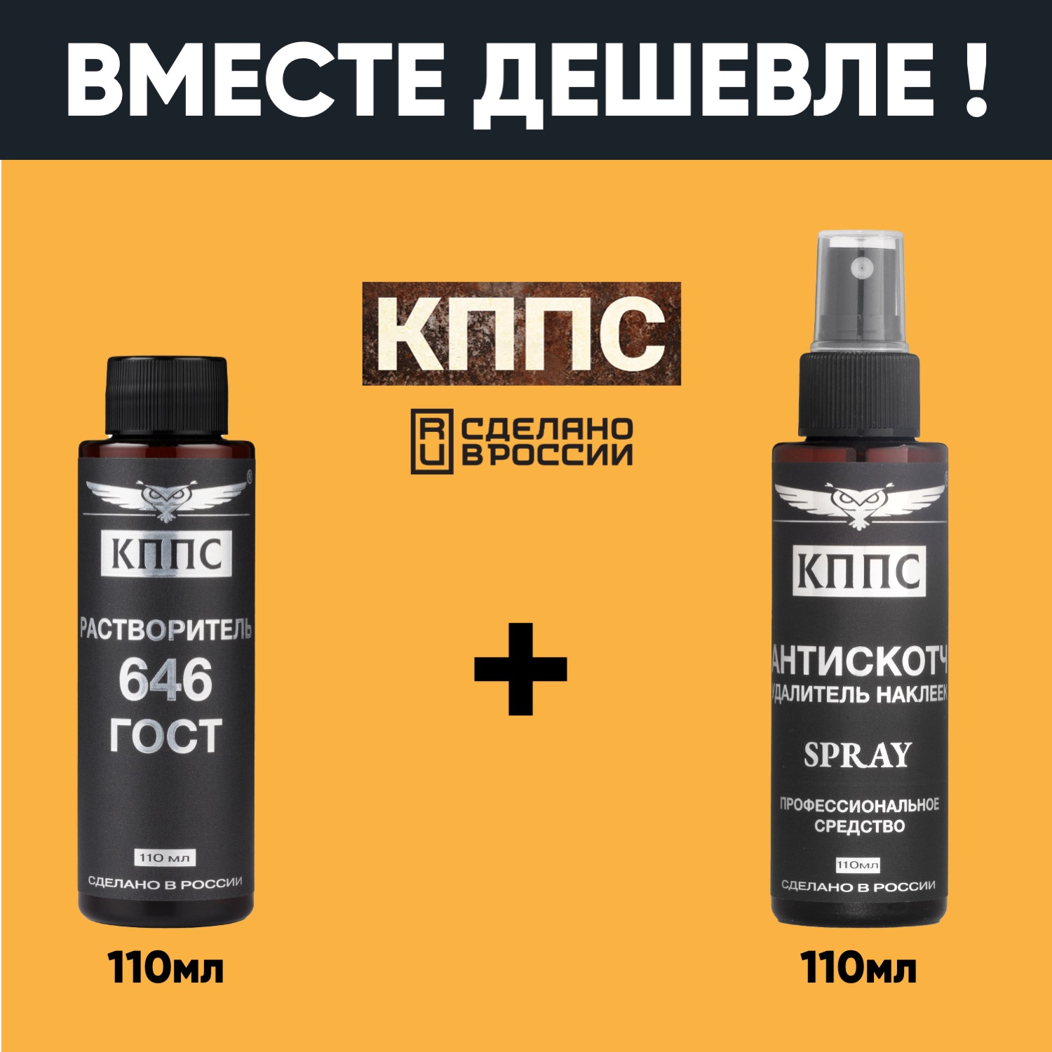 Растворитель КППС 646 ГОСТ (110мл) + АНТИСКОТЧ удалитель наклеек КППС SPRAY (110 мл)