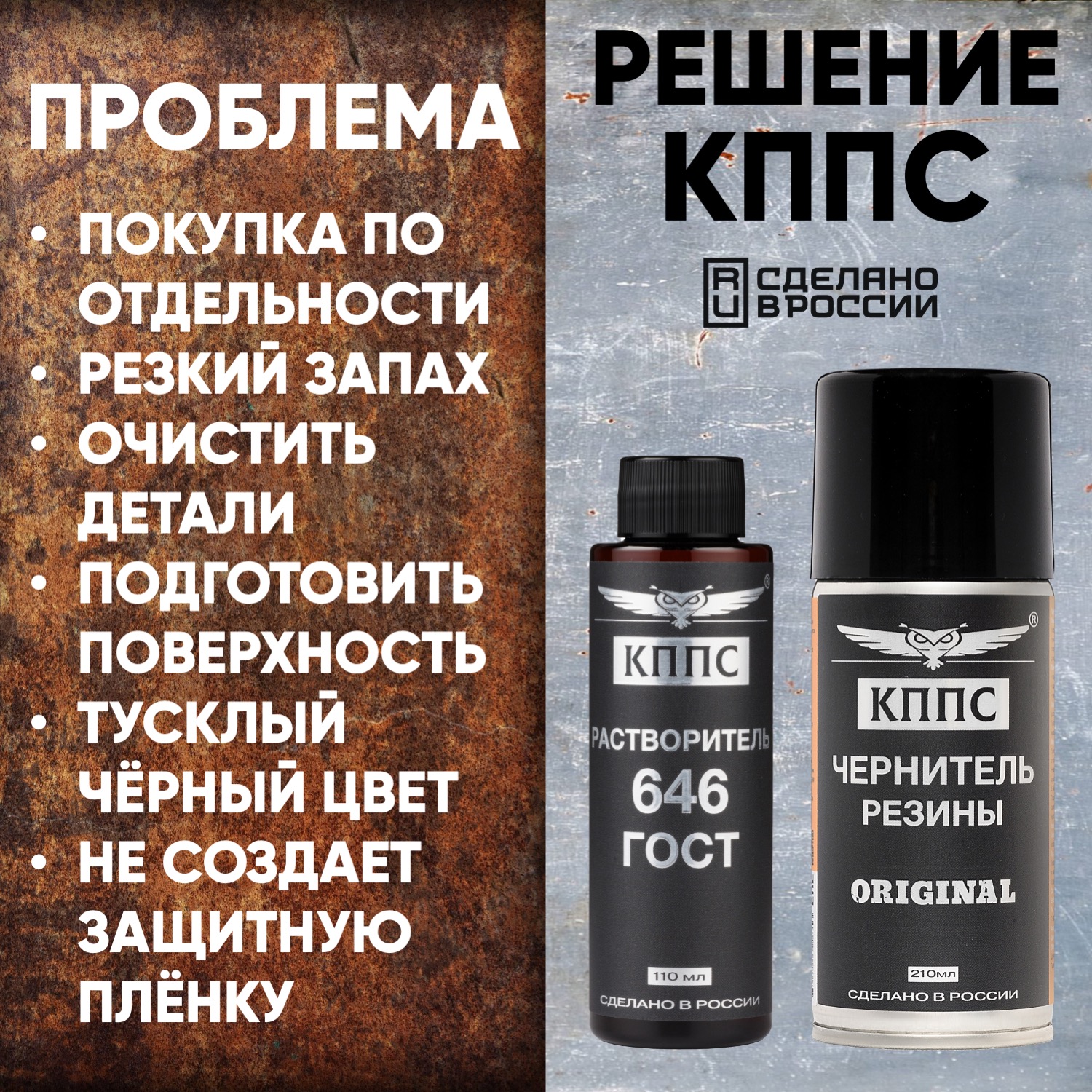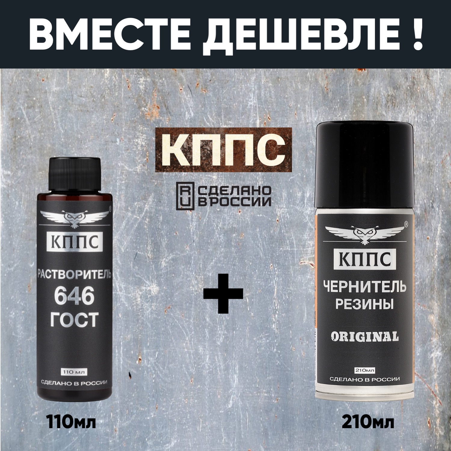 Растворитель КППС 646 ГОСТ (110мл) + Чернитель резины КППС (210мл)