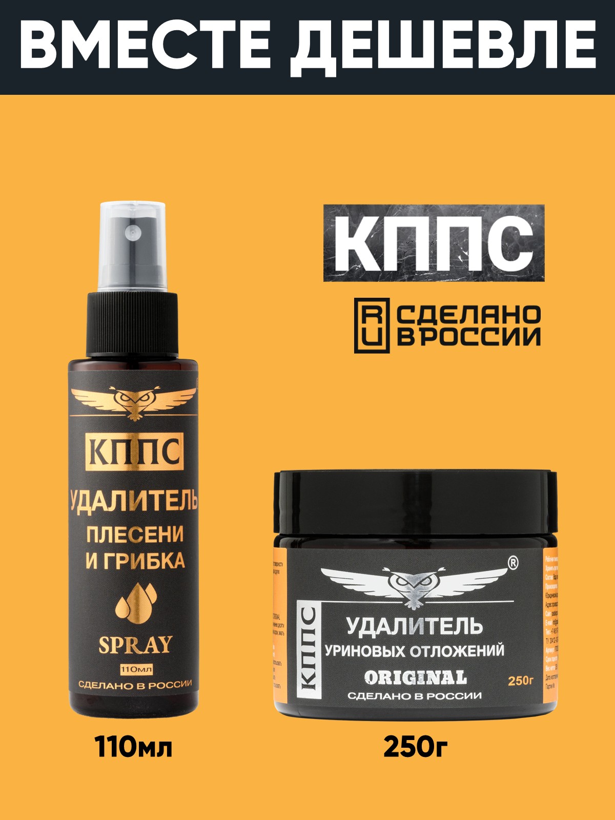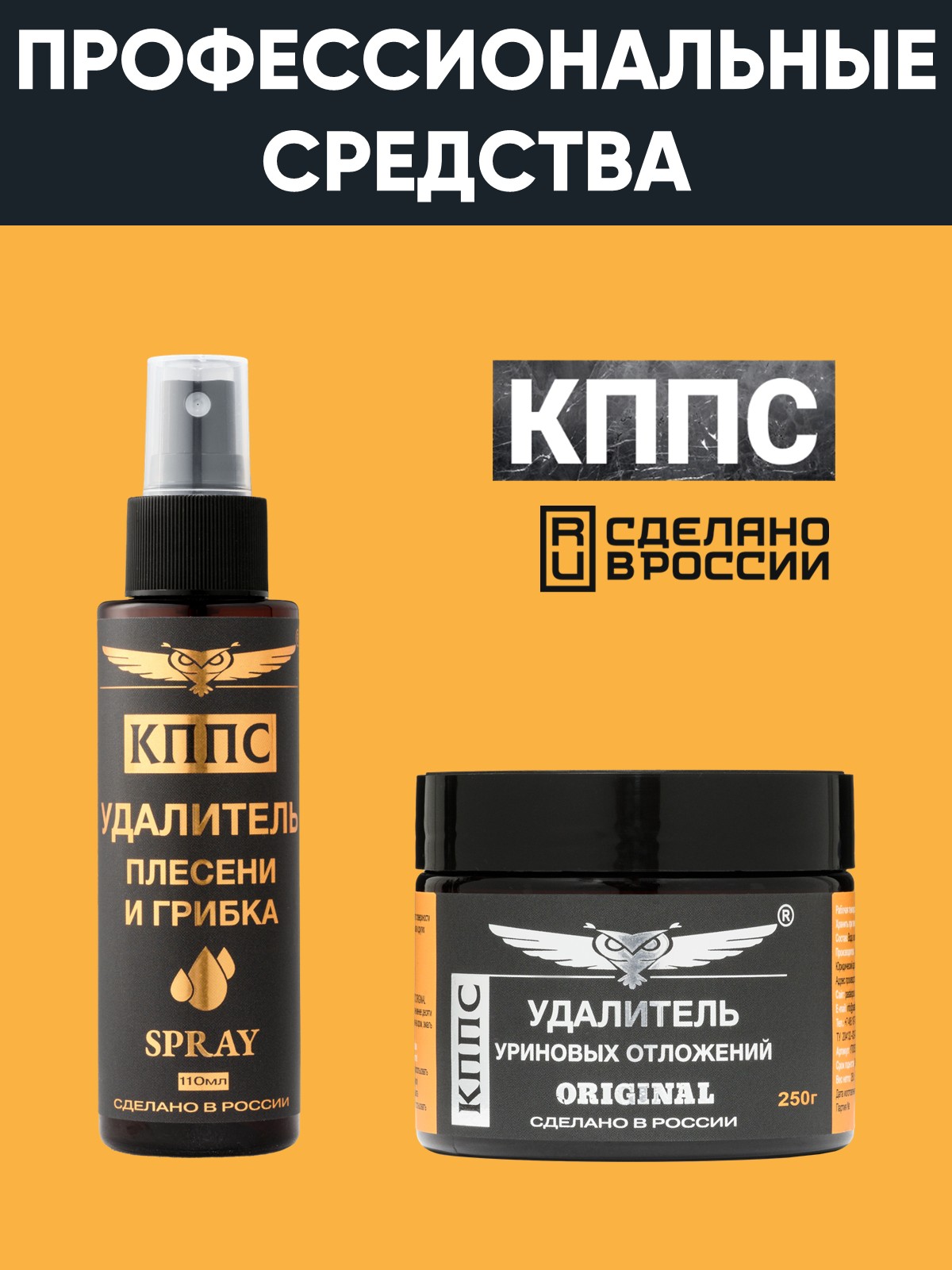 Удалитель плесени и грибка КППС Spray 110мл + Удалитель уриновых отложений КППС Original 250г
