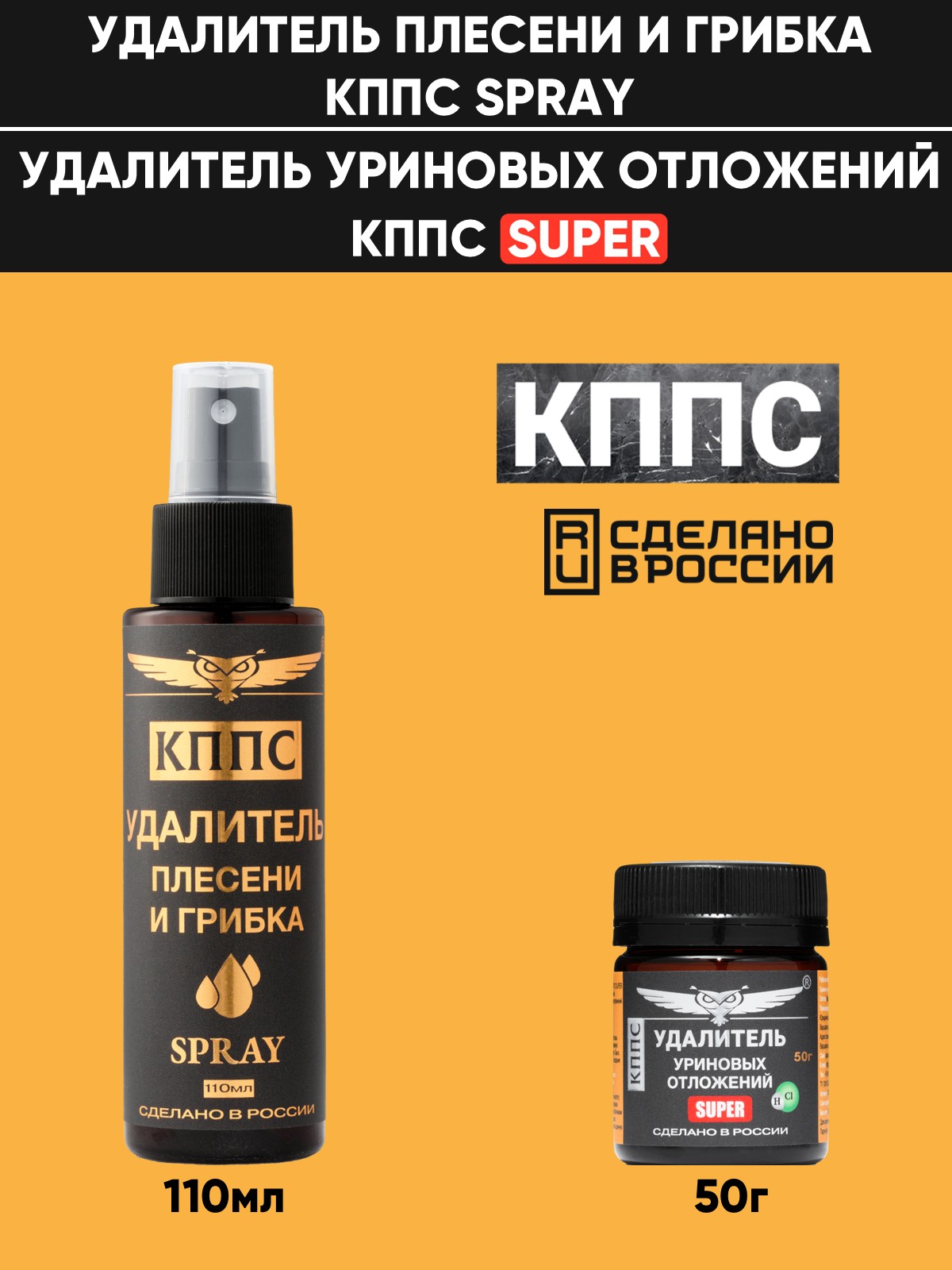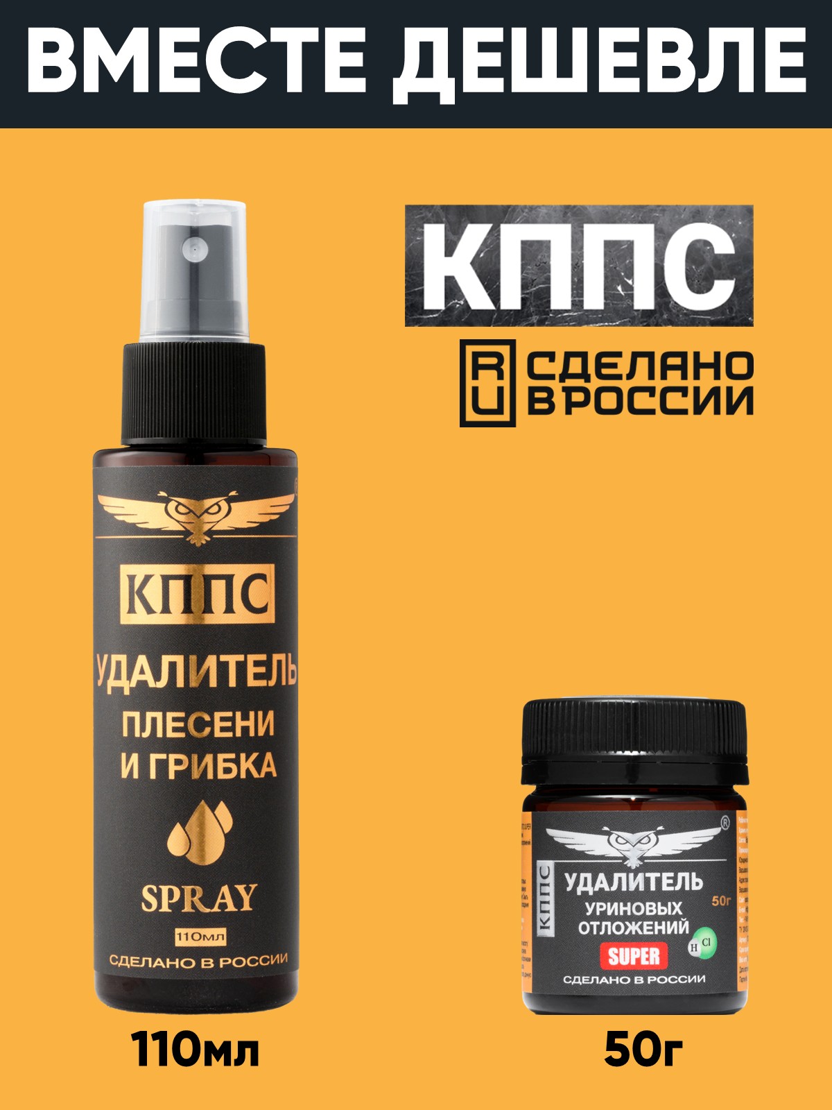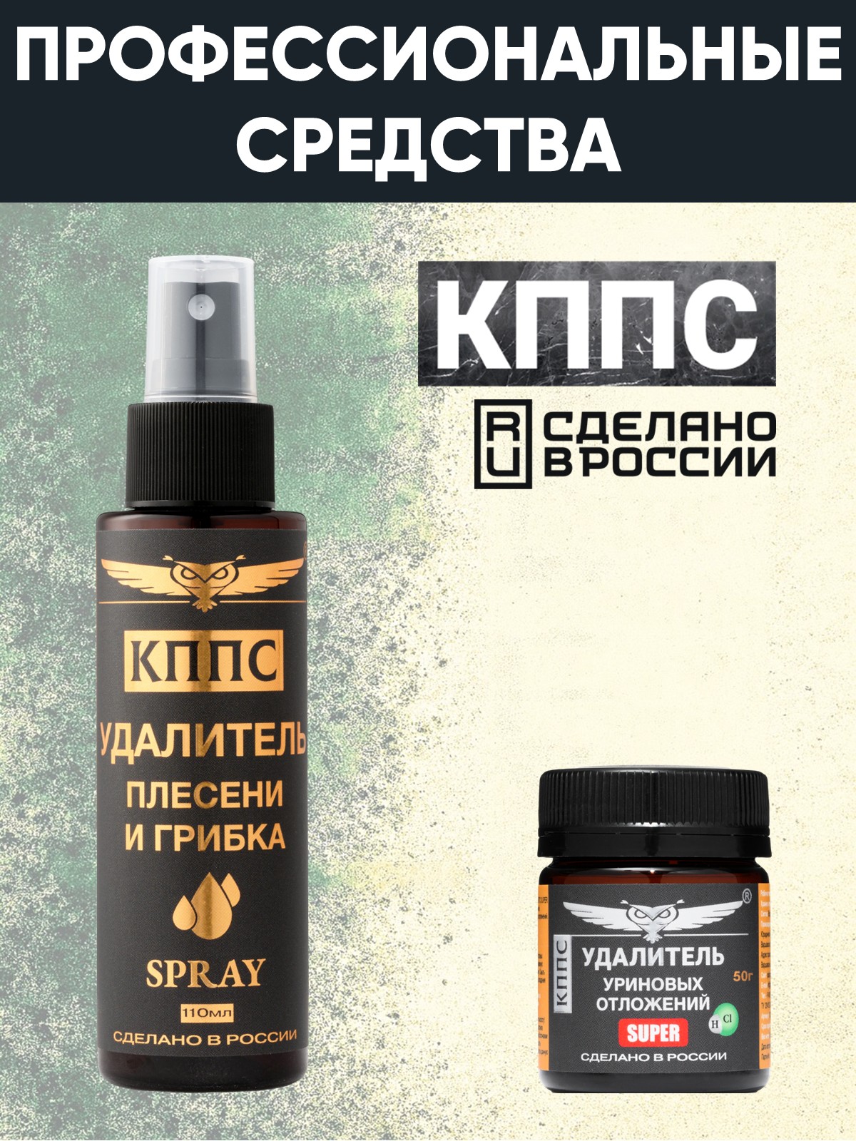 Удалитель плесени и грибка КППС Spray 110мл + Удалитель уриновых отложений КППС SUPER 50г