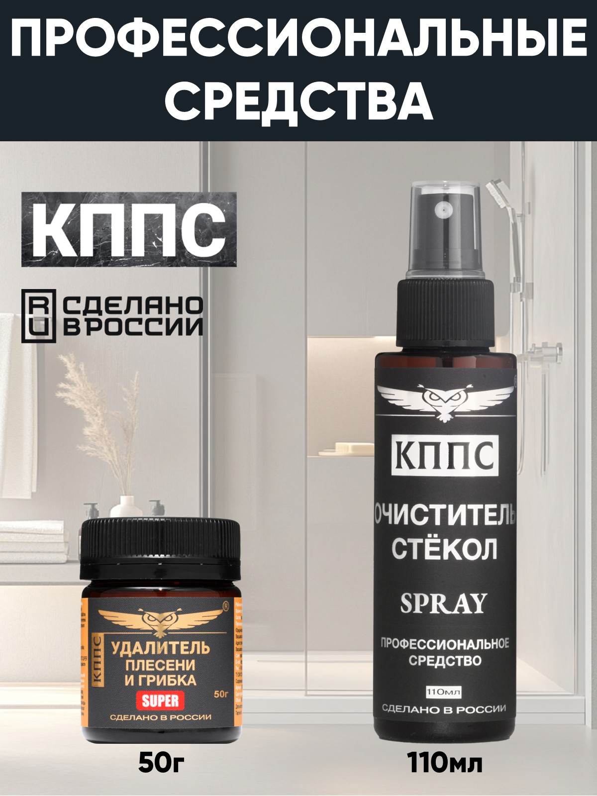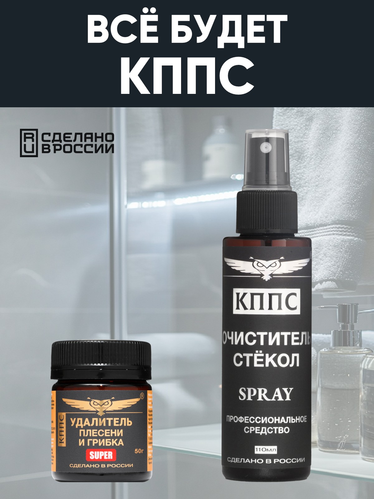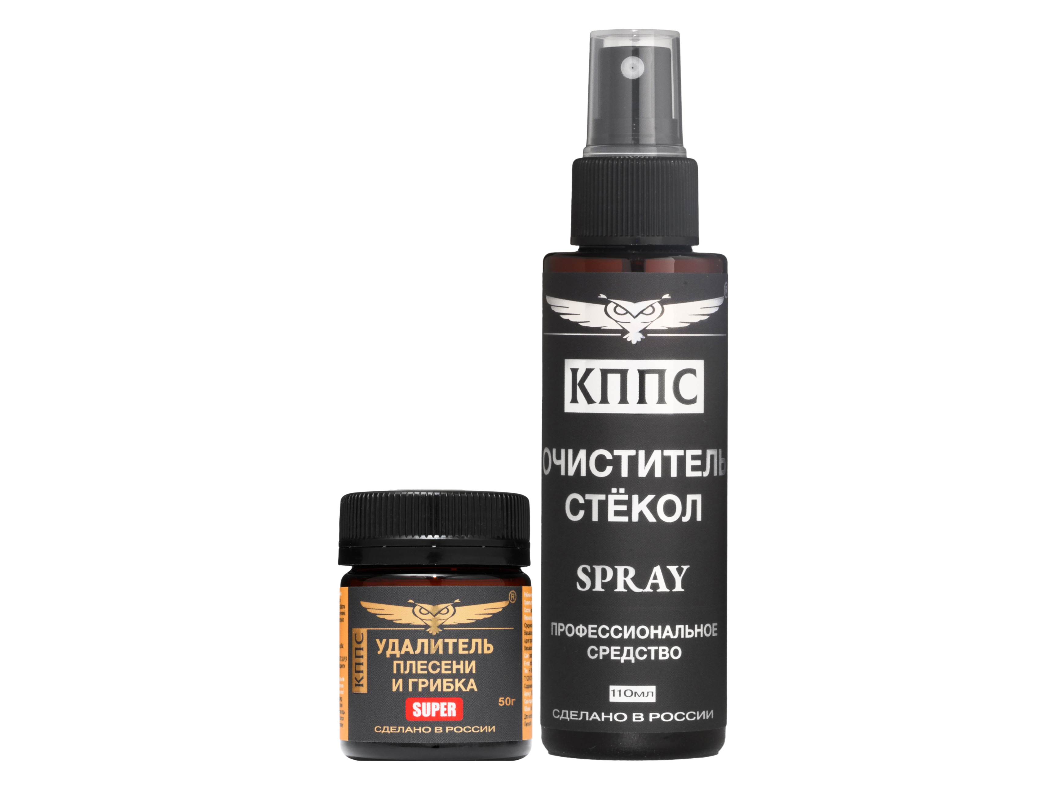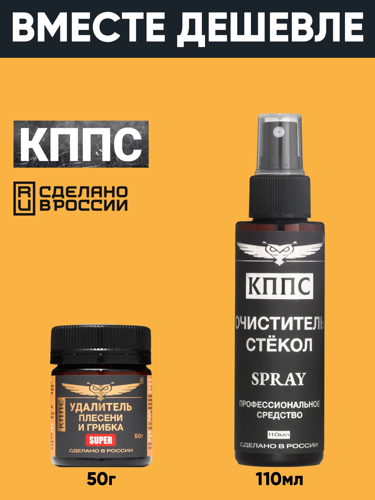 Удалитель плесени и грибка КППС SUPER 50г + Очиститель стёкол КППС SPRAY 110мл