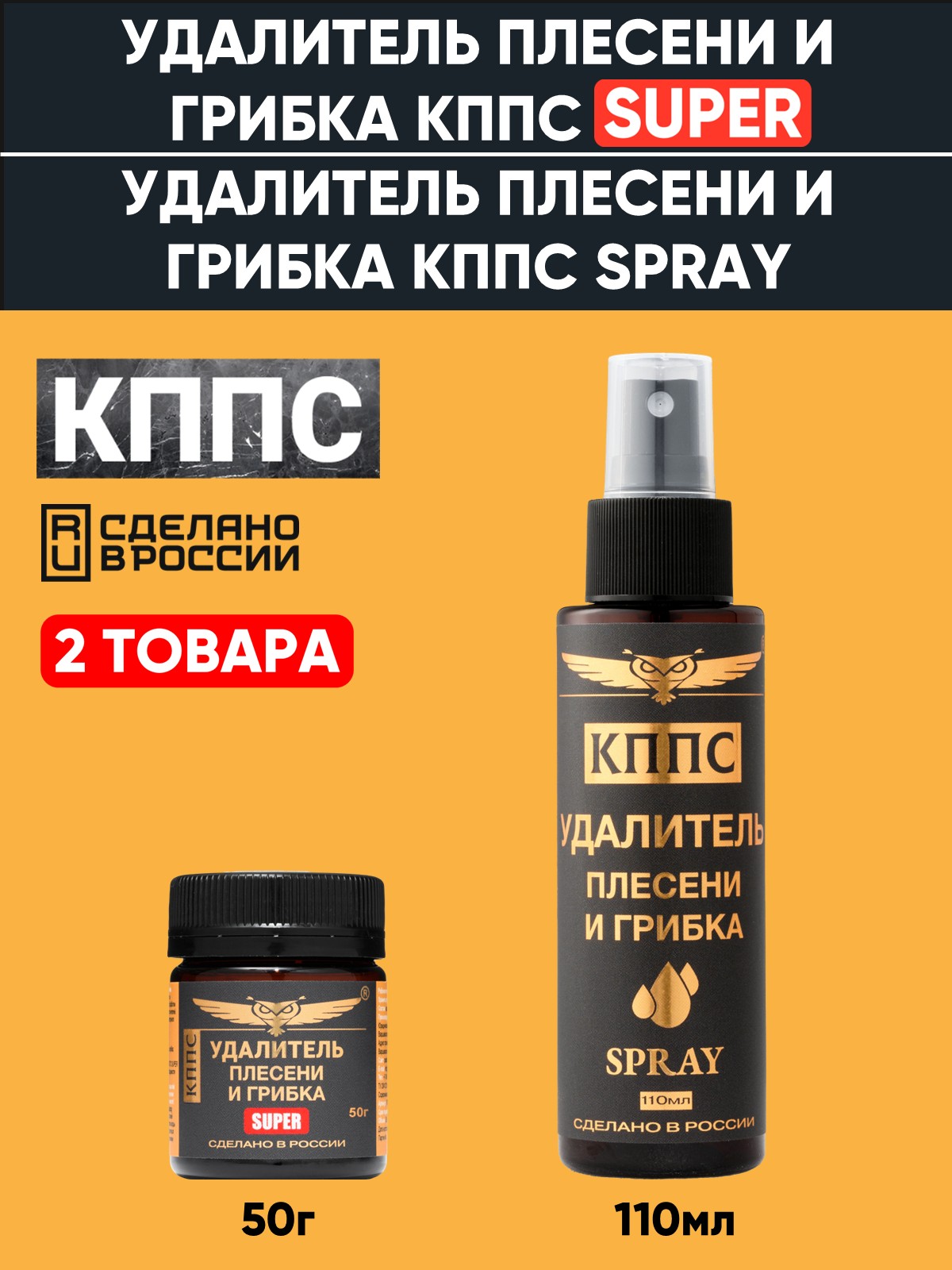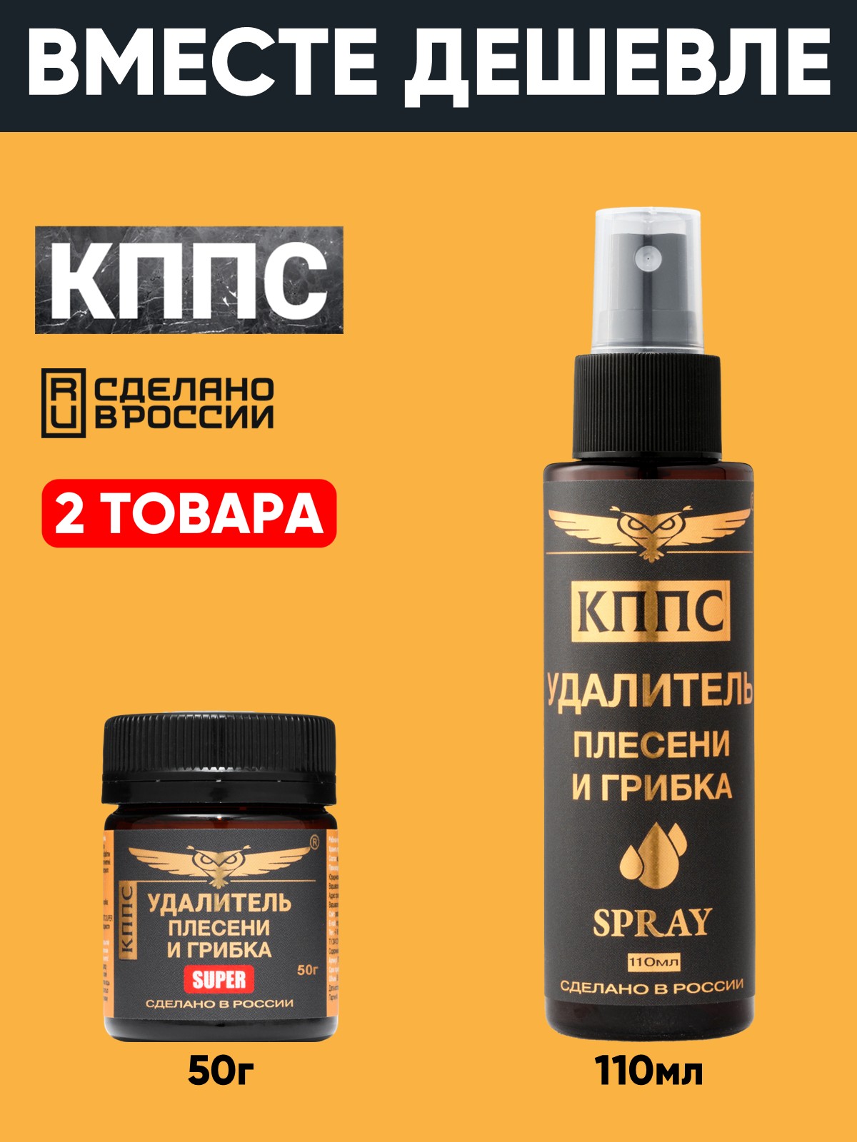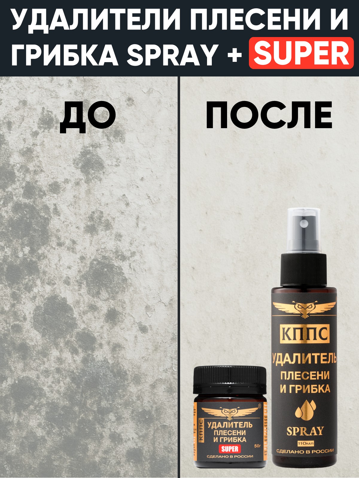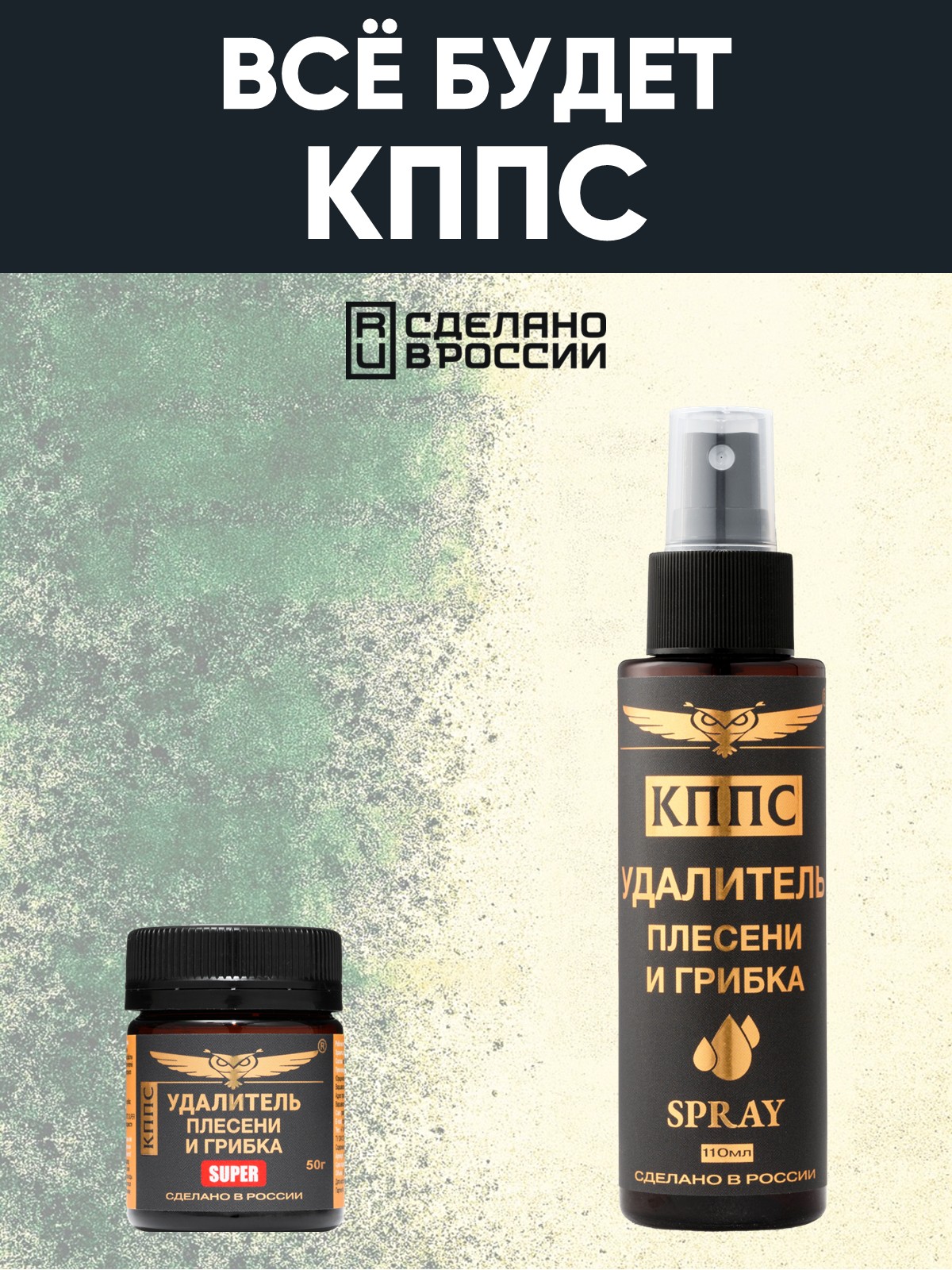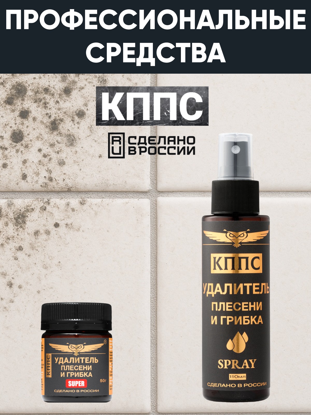 Удалитель плесени и грибка КППС SUPER 50г + Удалитель плесени и грибка КППС SPRAY 110мл