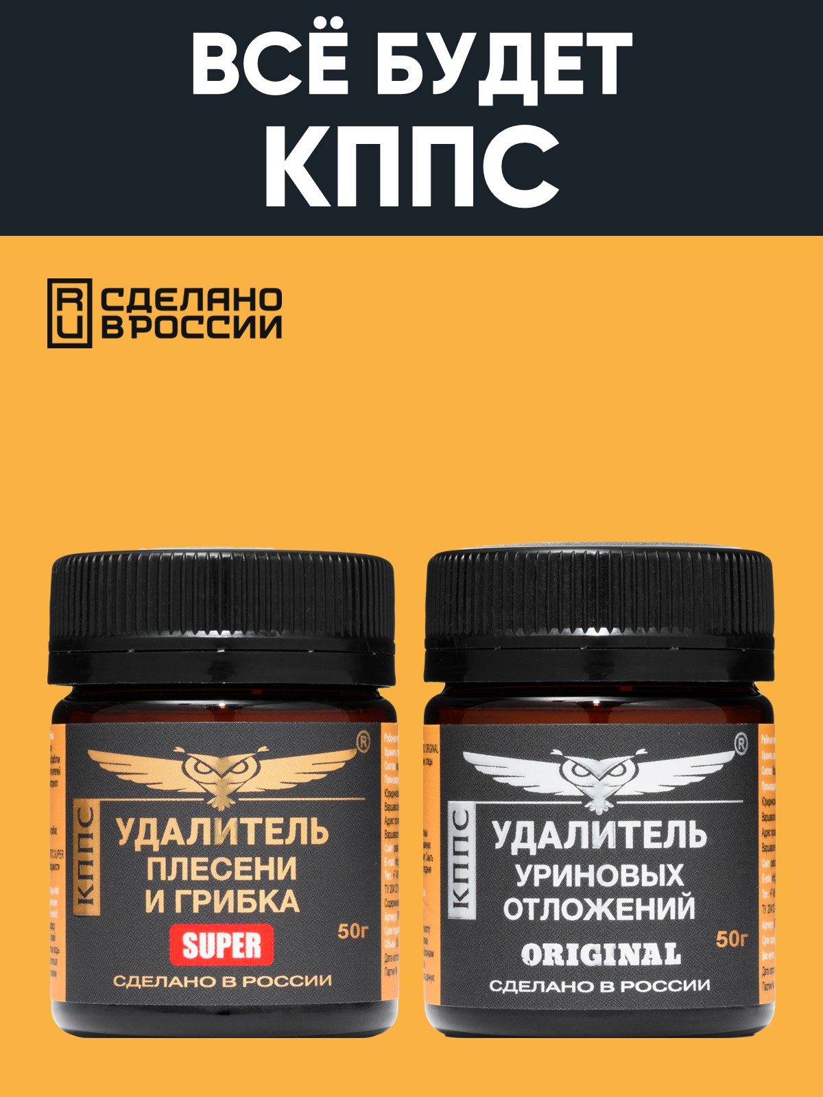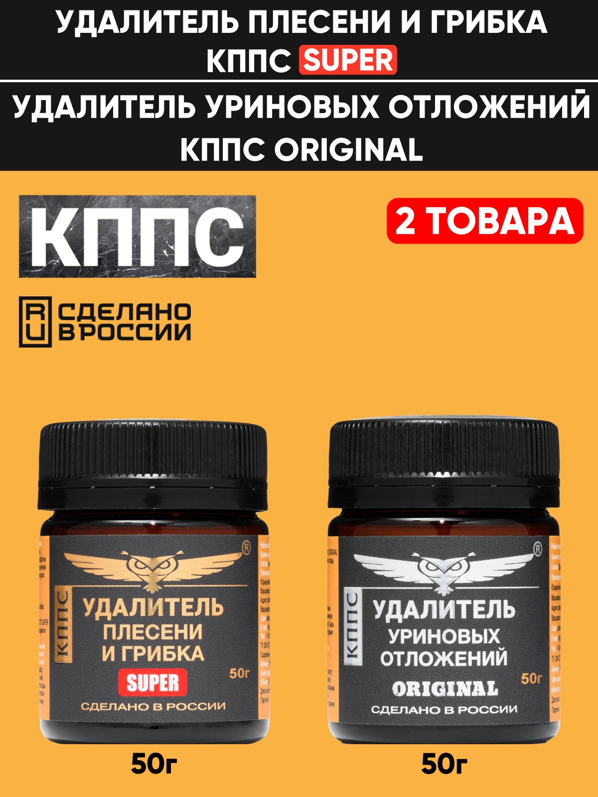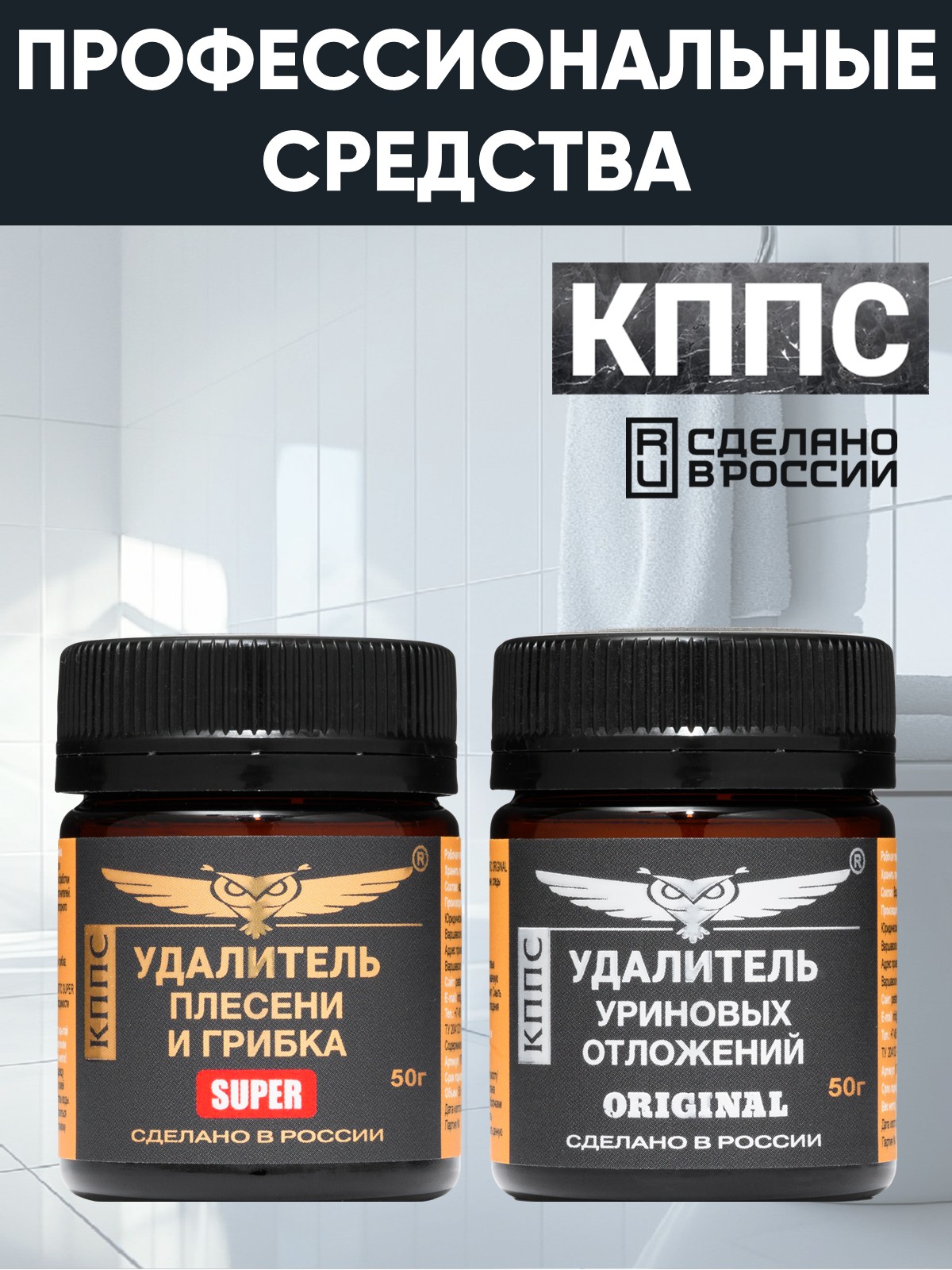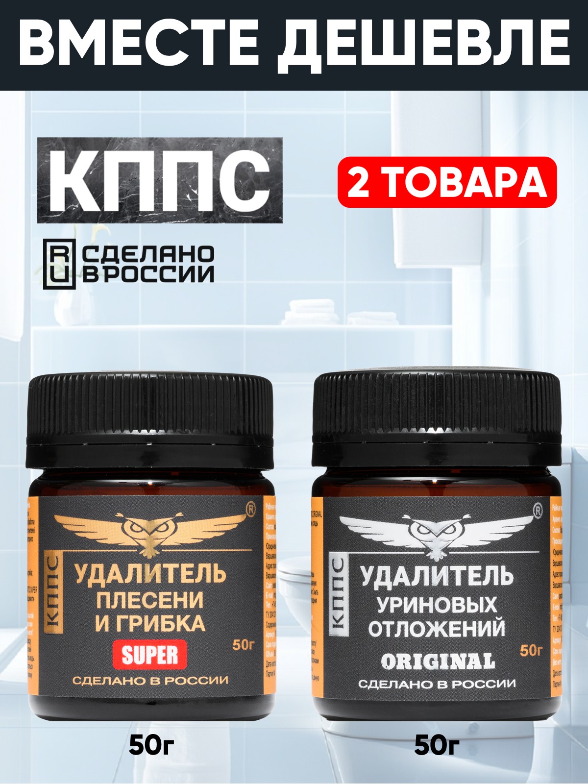 Удалитель плесени и грибка КППС SUPER 50г + Удалитель уриновых отложений КППС Original 50г