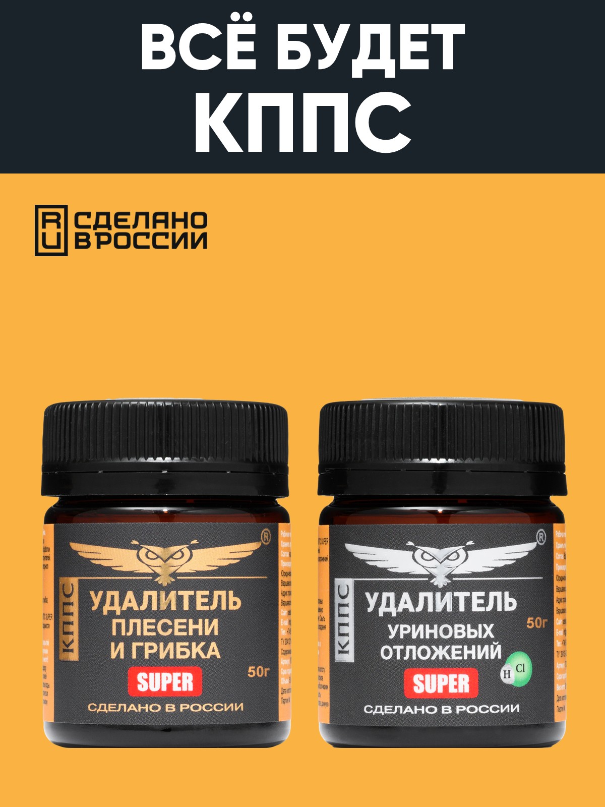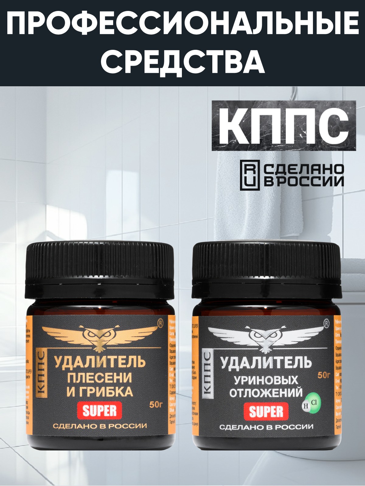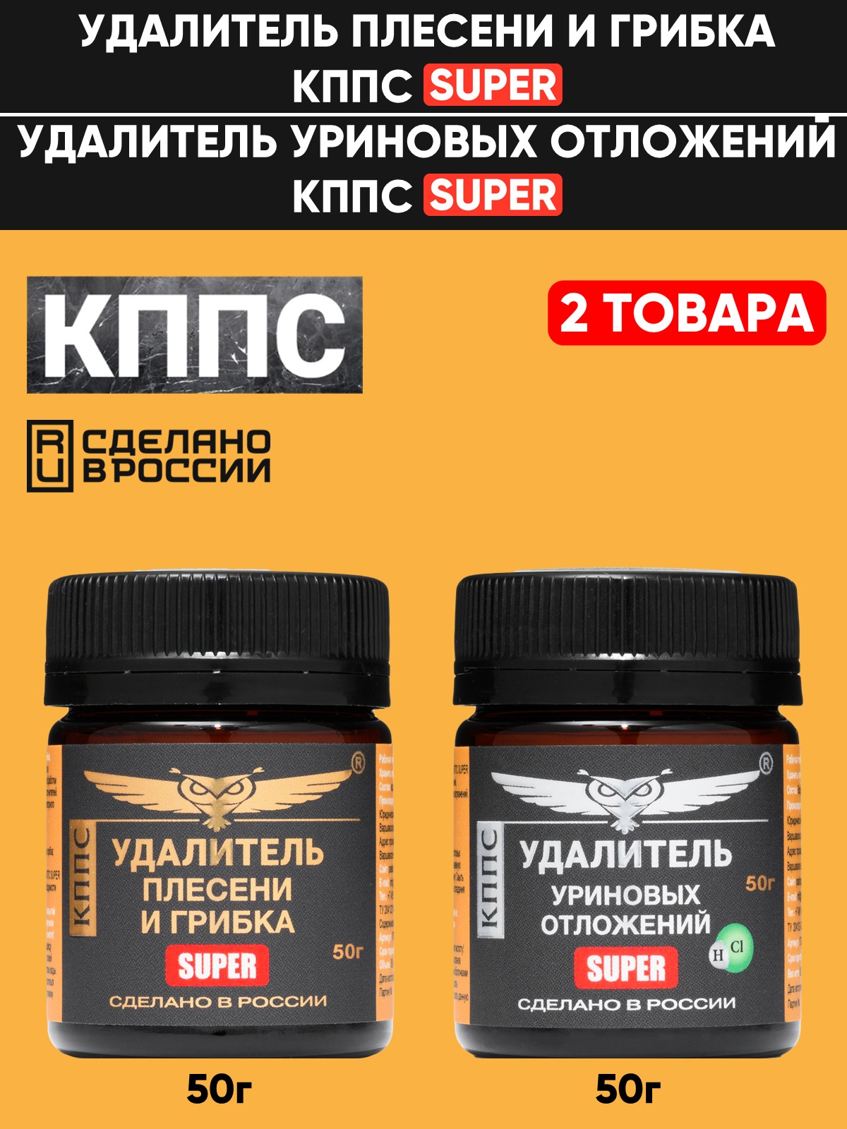 Удалитель плесени и грибка КППС SUPER 50г + Удалитель уриновых отложений КППС Super 50г