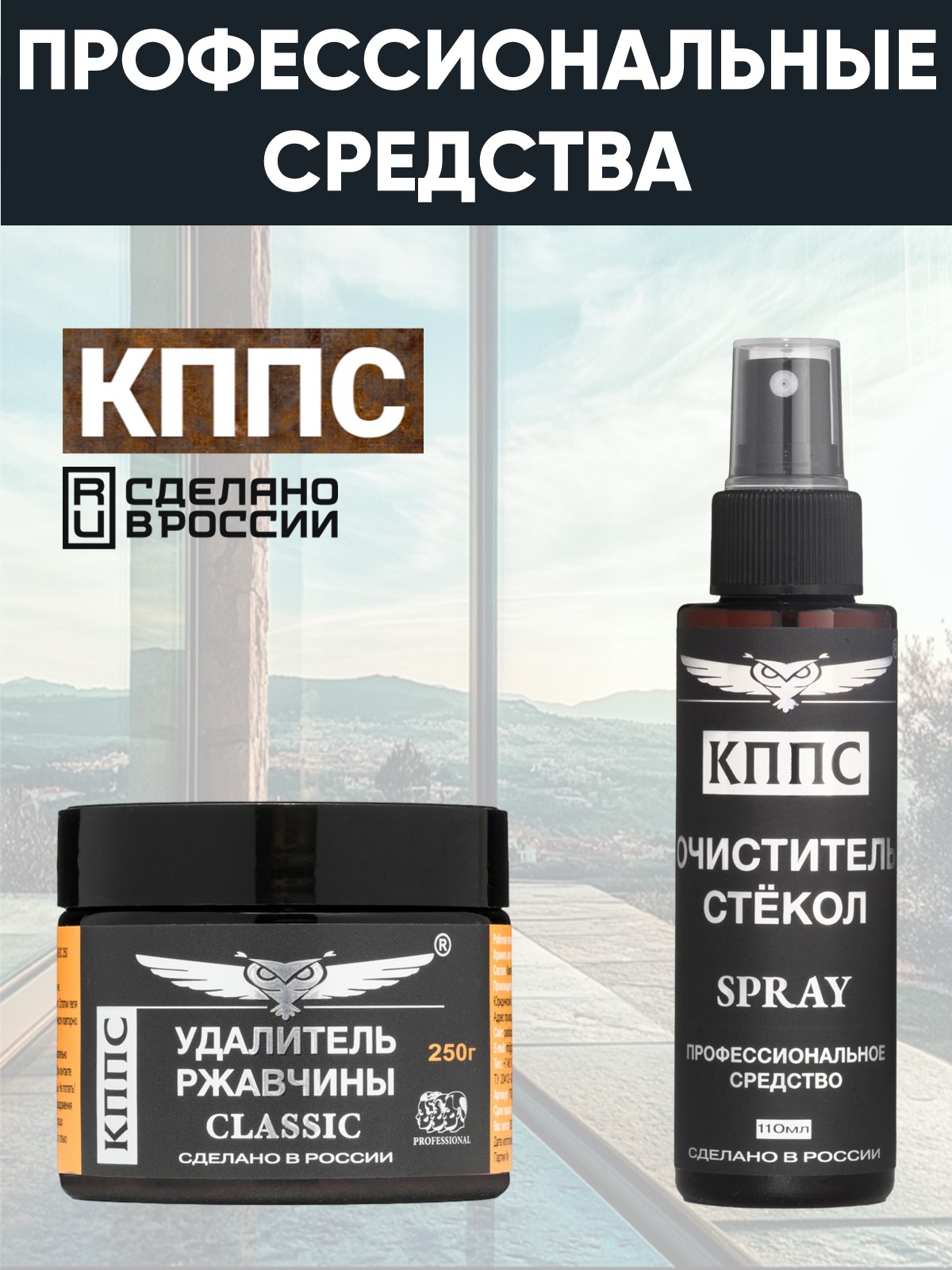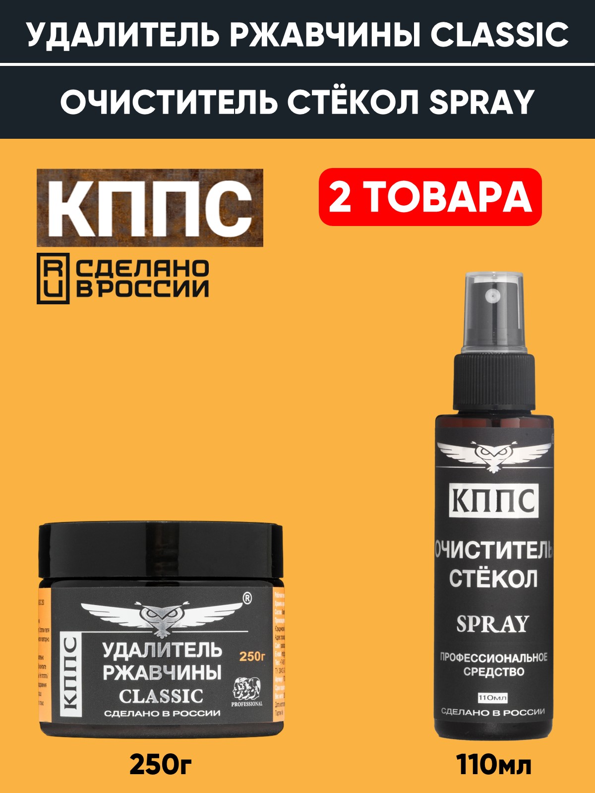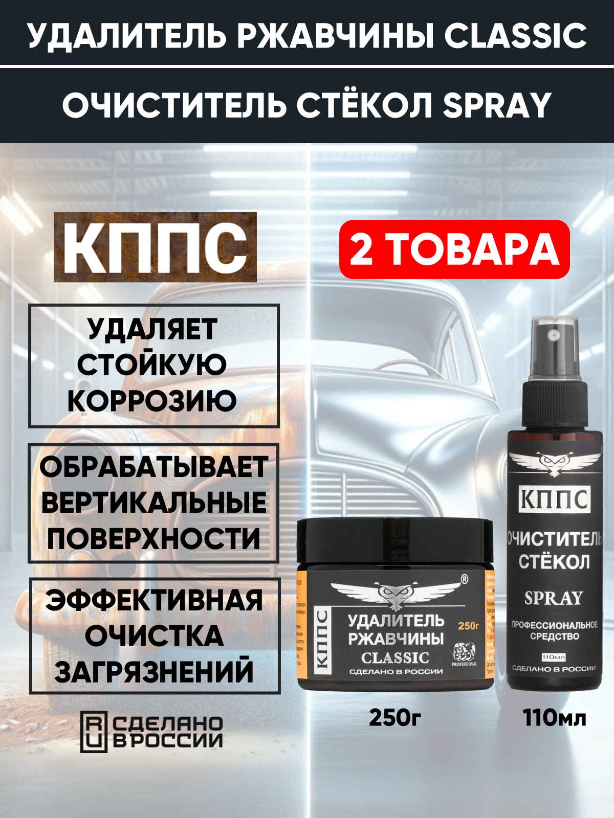Удалитель ржавчины КППС Classic 250г + Очиститель стёкол КППС 110мл