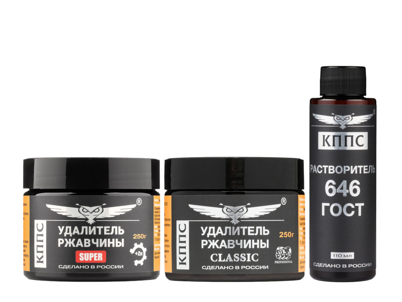 Технические характеристики Удалитель ржавчины КППС Classic 250г + Удалитель ржавчины КППС Super 250г + Растворитель КППС 646 ГОСТ 110 мл