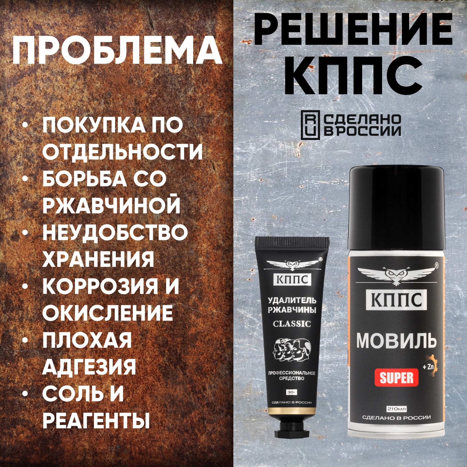 Удалитель ржавчины КППС CLASSIC (30г) + Мовиль КППС SUPER (210мл)