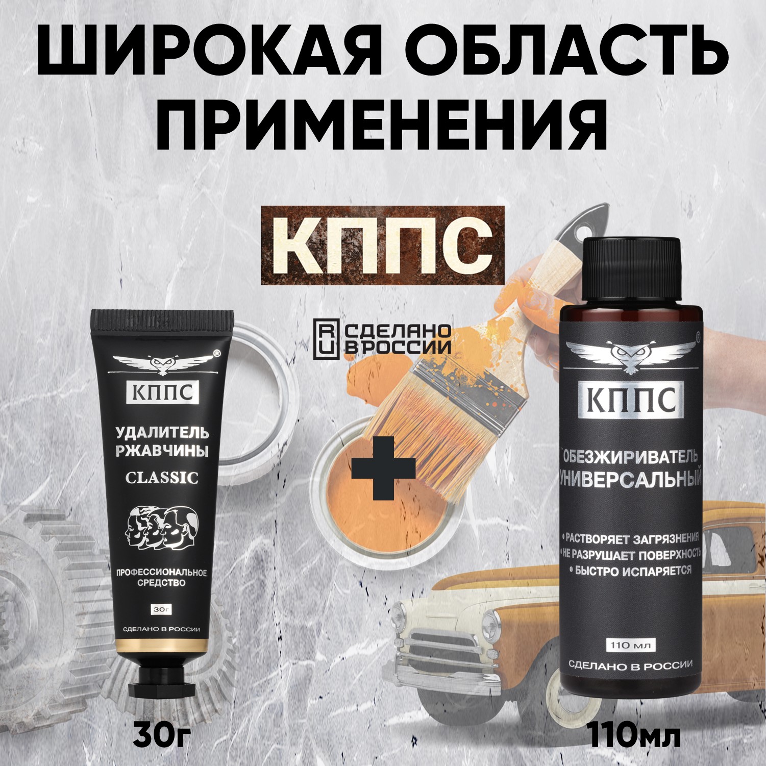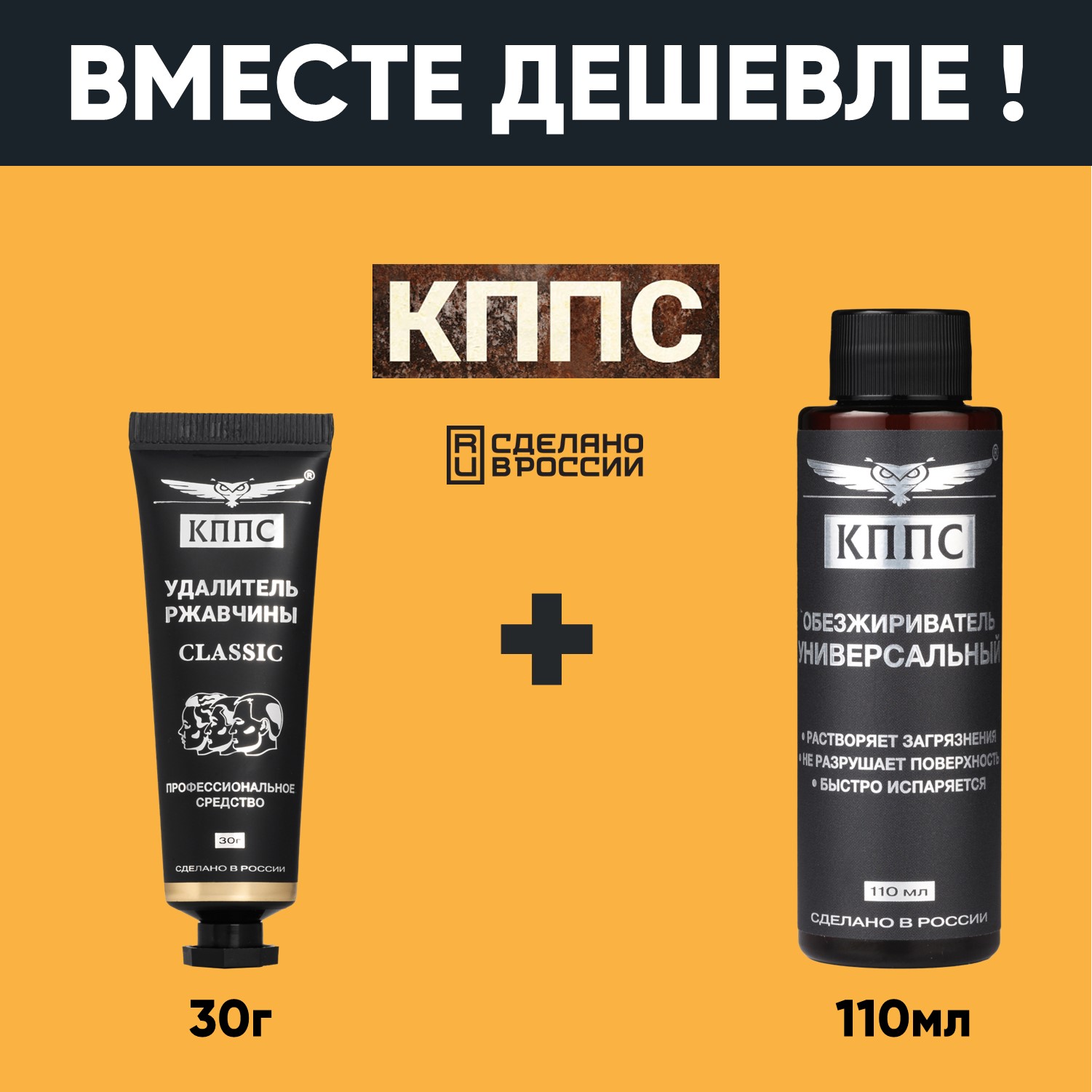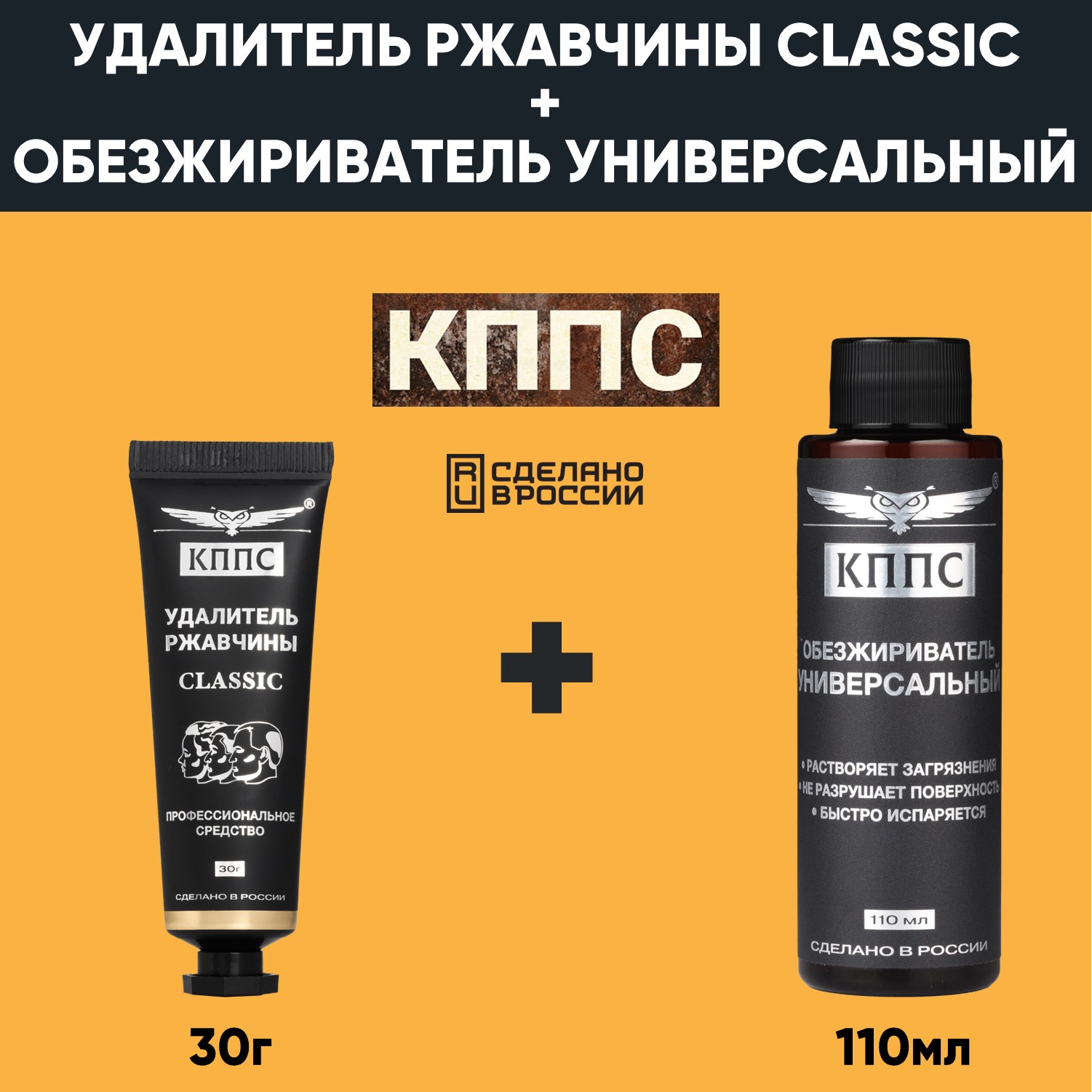 Удалитель ржавчины КППС CLASSIC (30г) + Универсальный обезжириватель КППС (110мл)