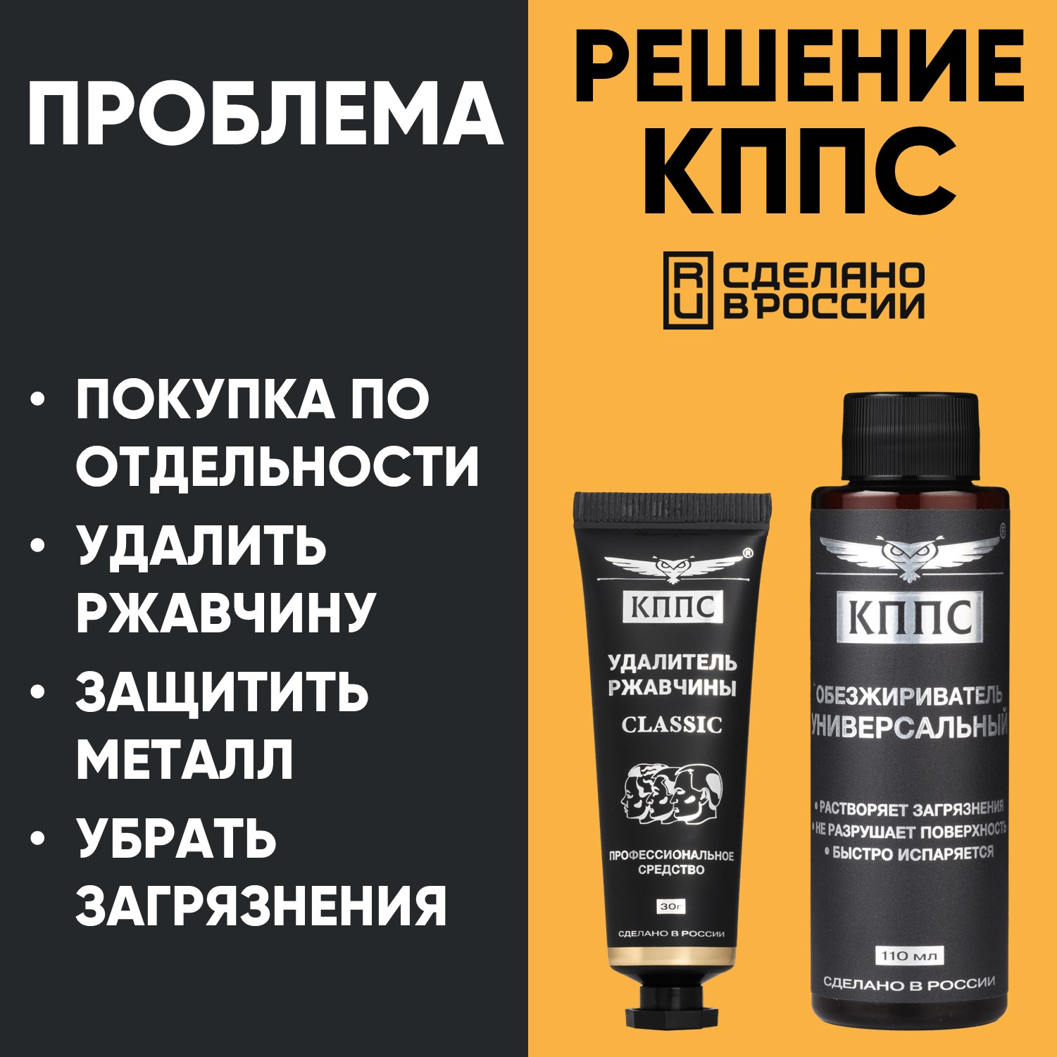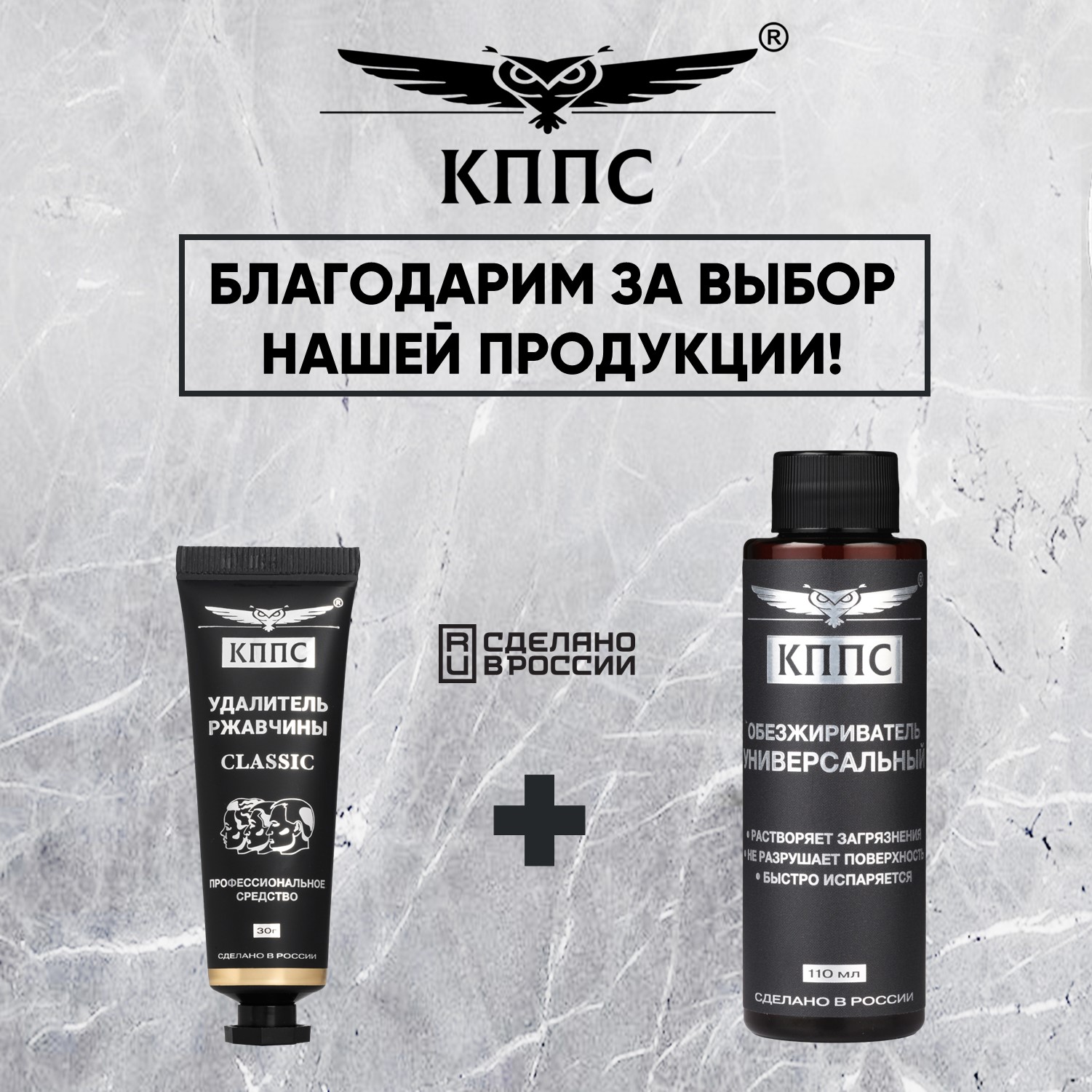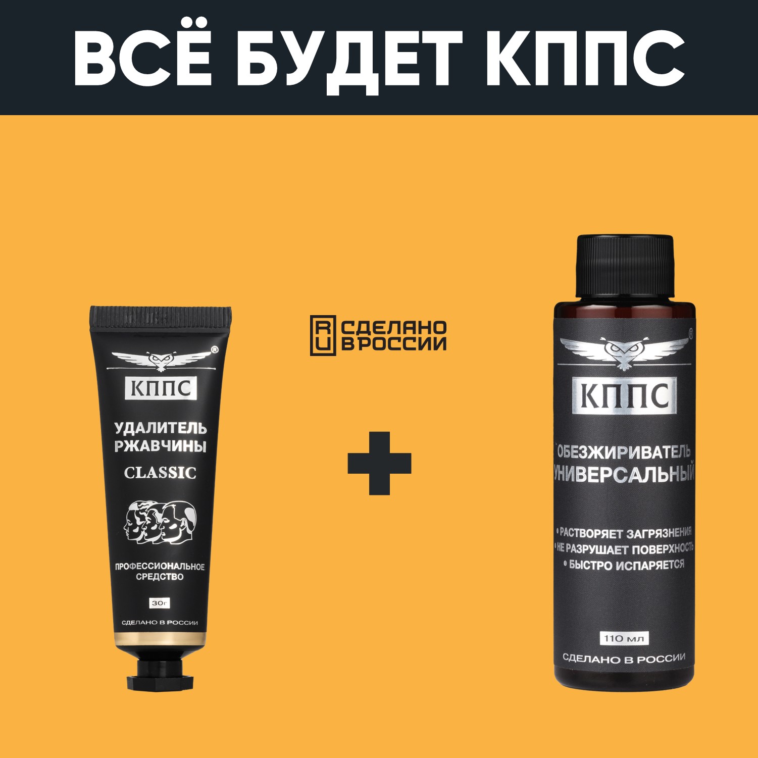 Удалитель ржавчины КППС CLASSIC (30г) + Универсальный обезжириватель КППС (110мл)