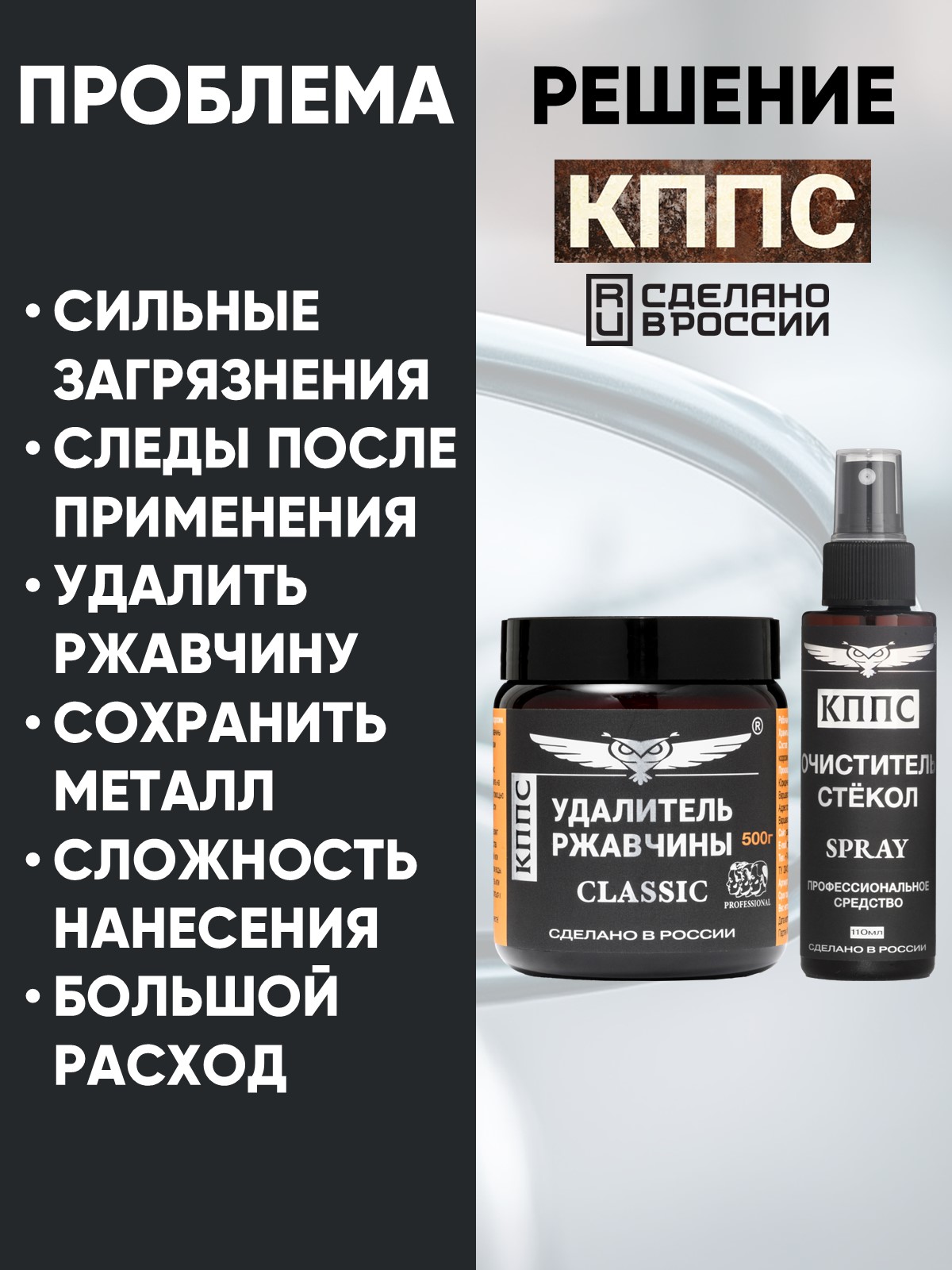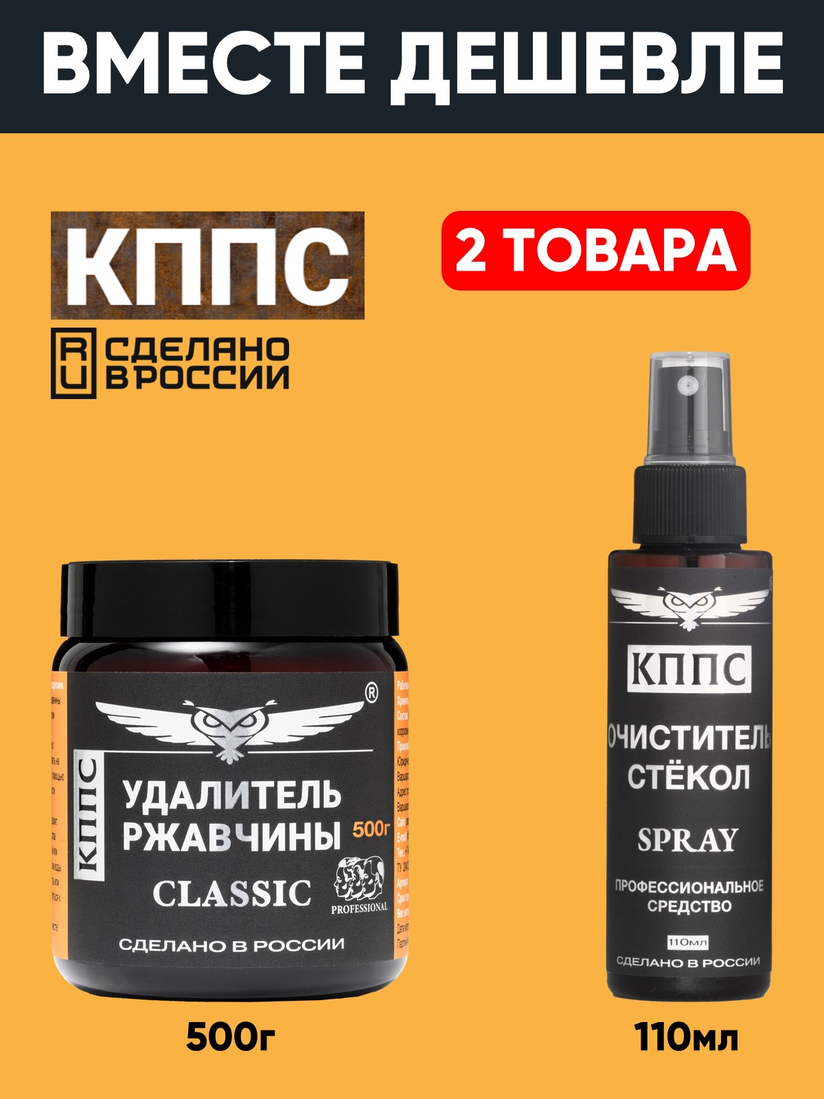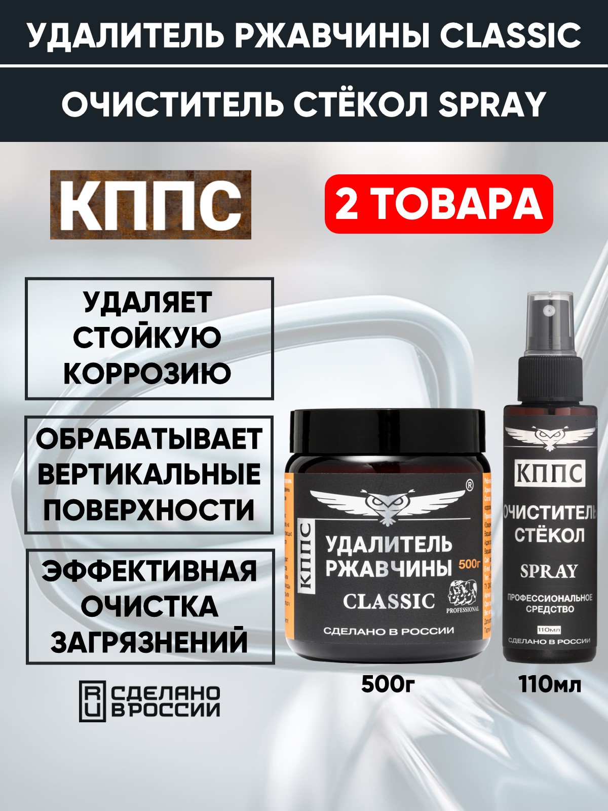 Удалитель ржавчины КППС Classic (500г) + Очиститель стёкол КППС (110мл)