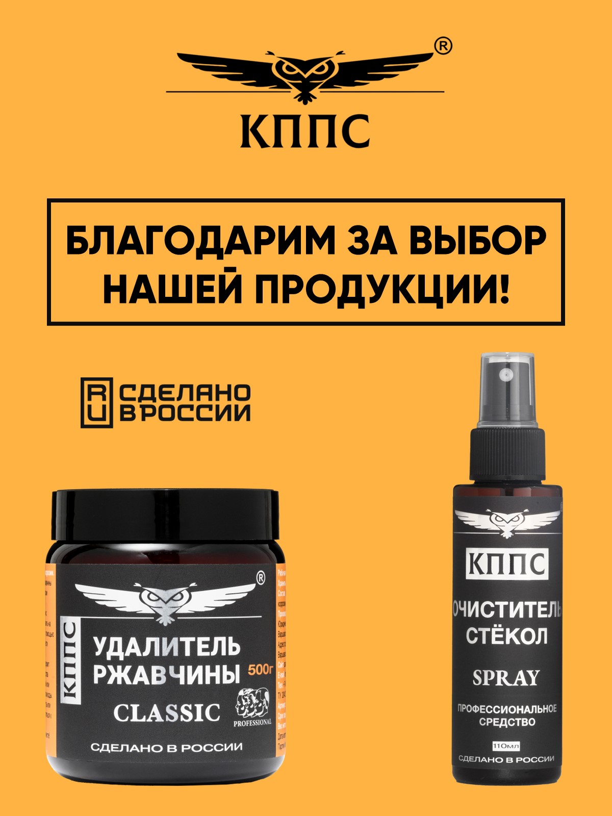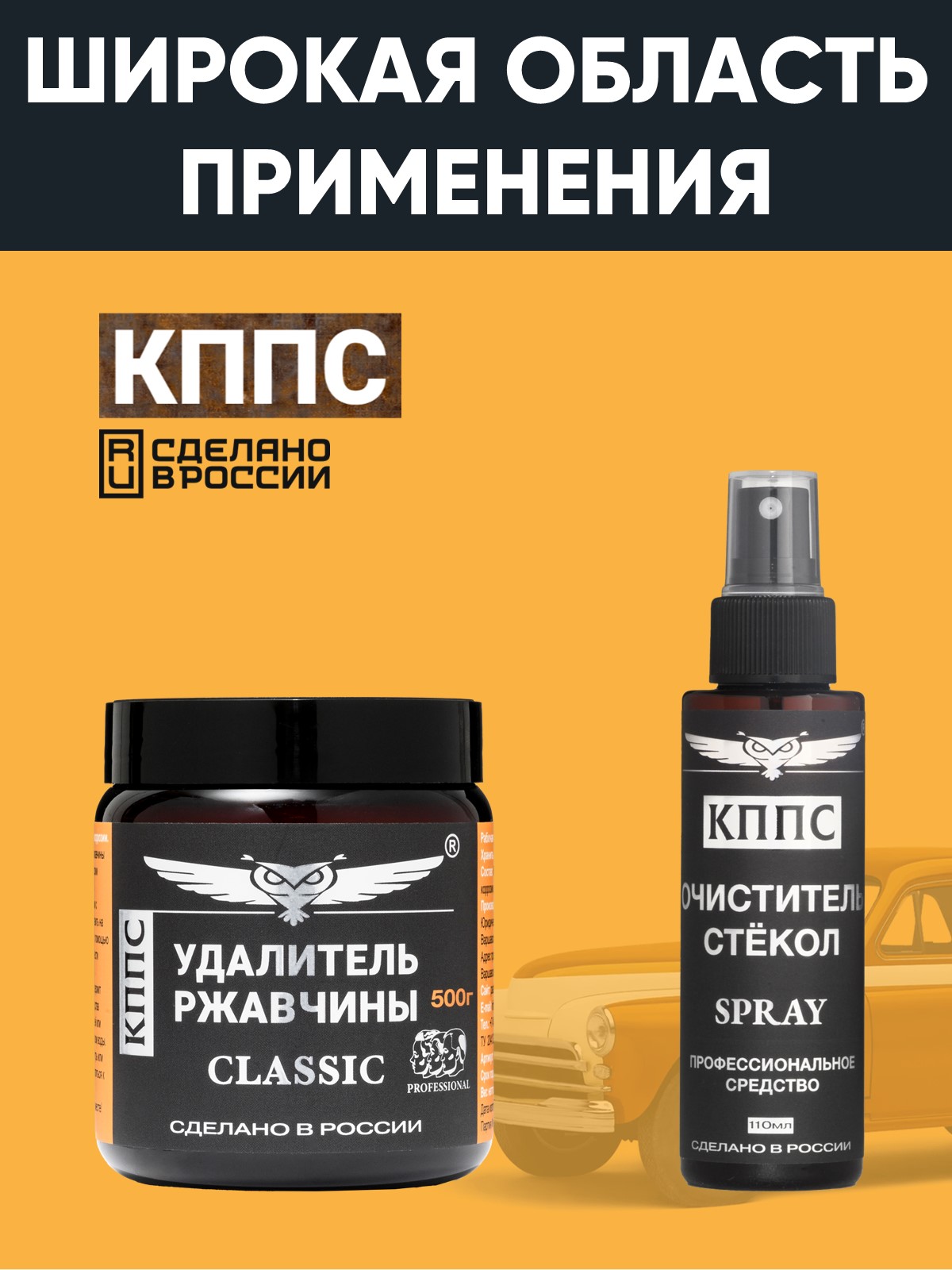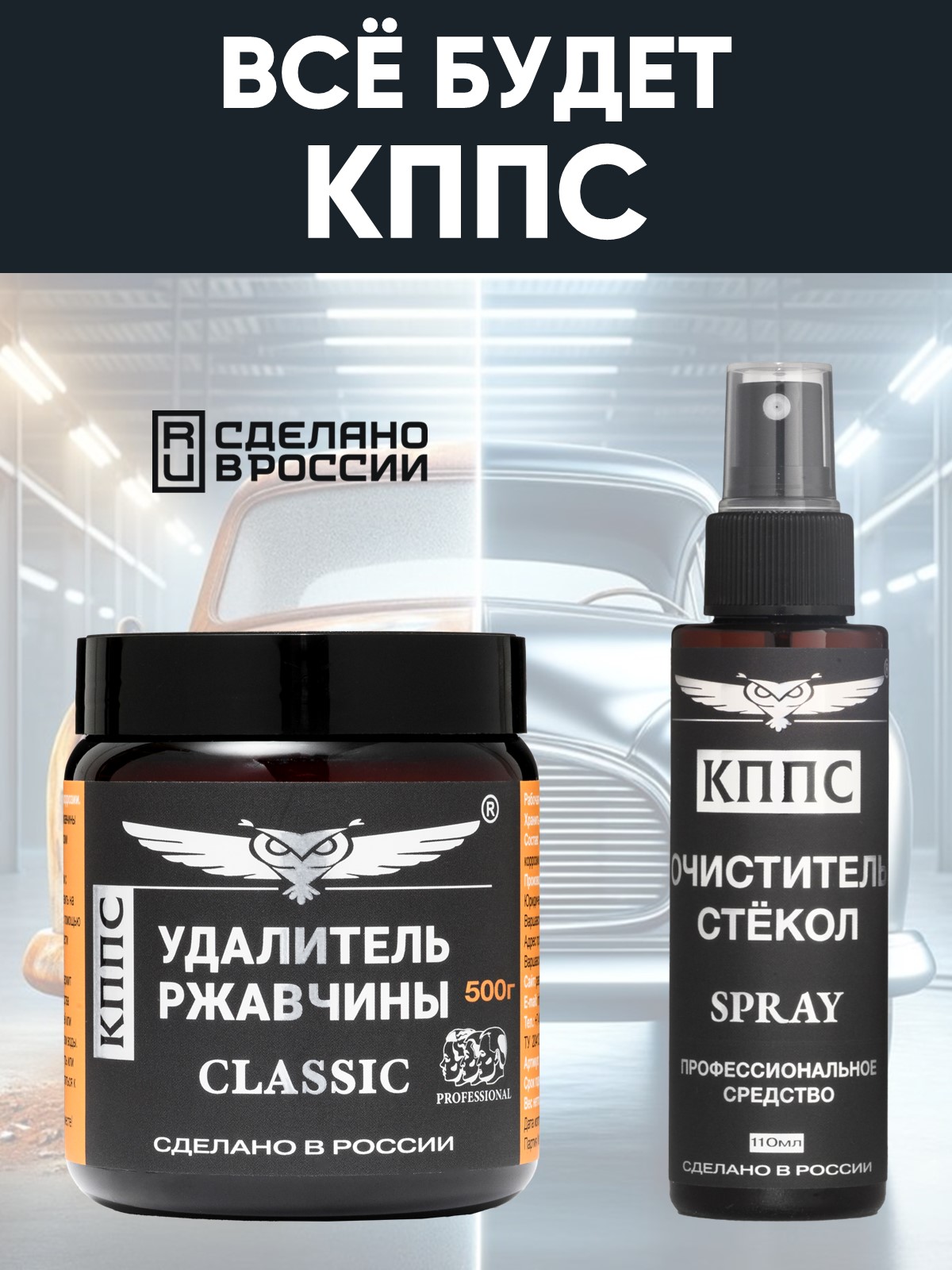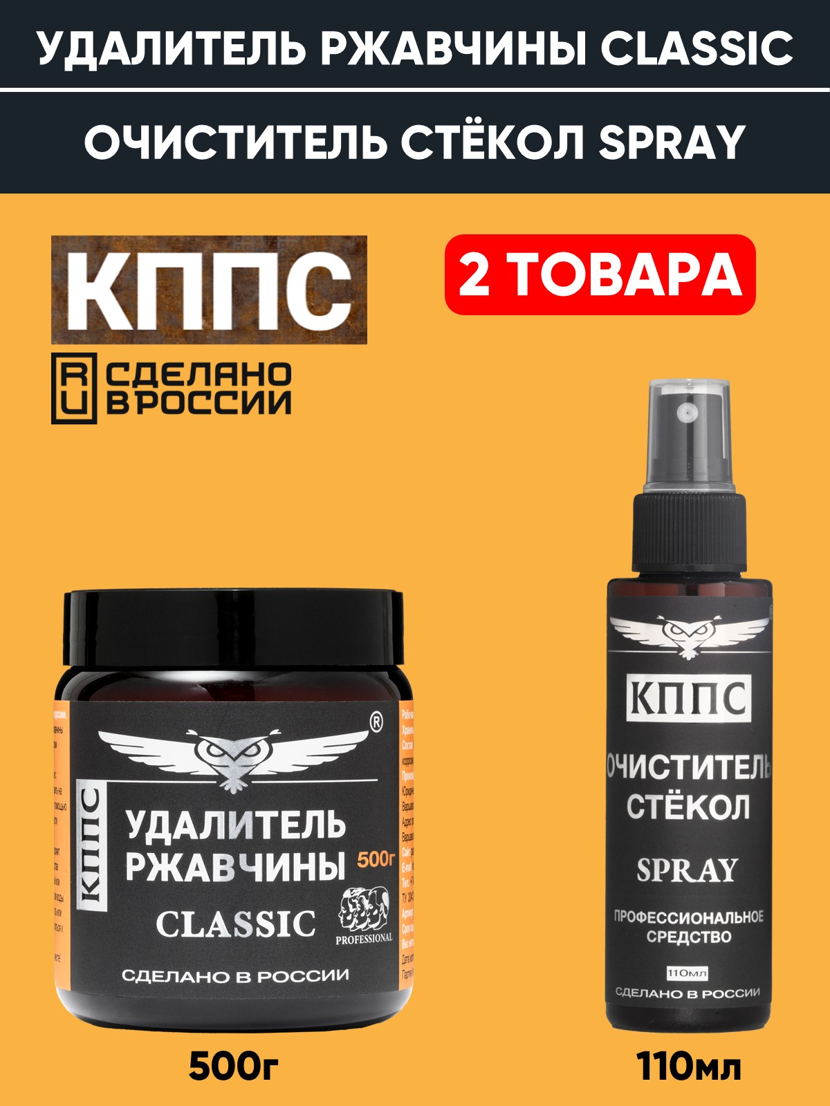 Удалитель ржавчины КППС Classic (500г) + Очиститель стёкол КППС (110мл)