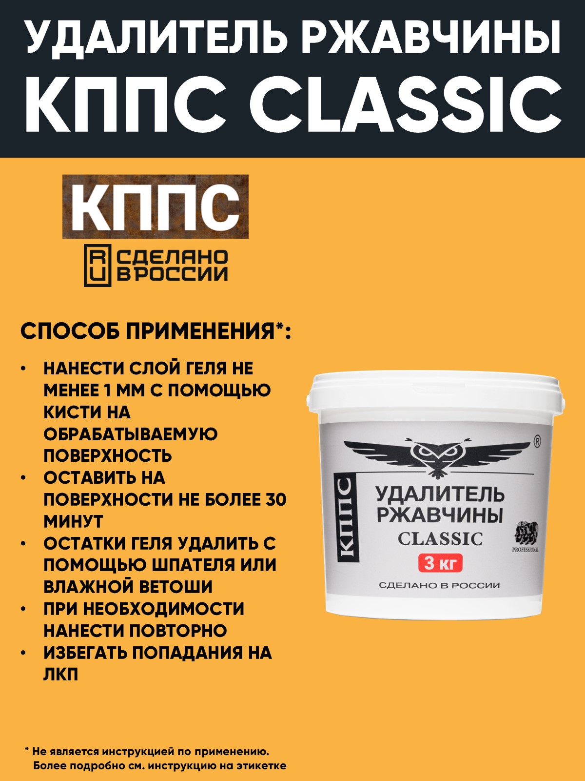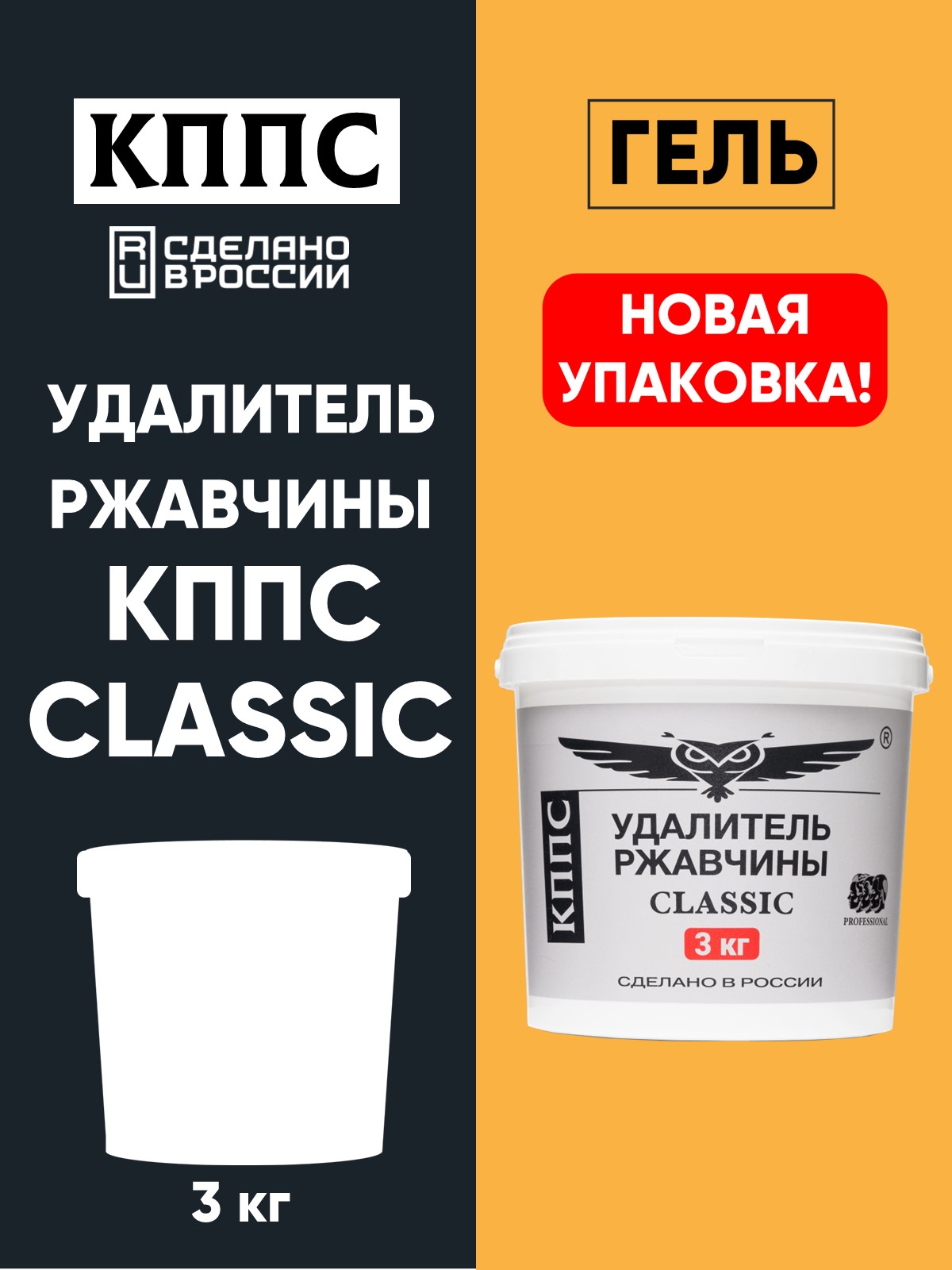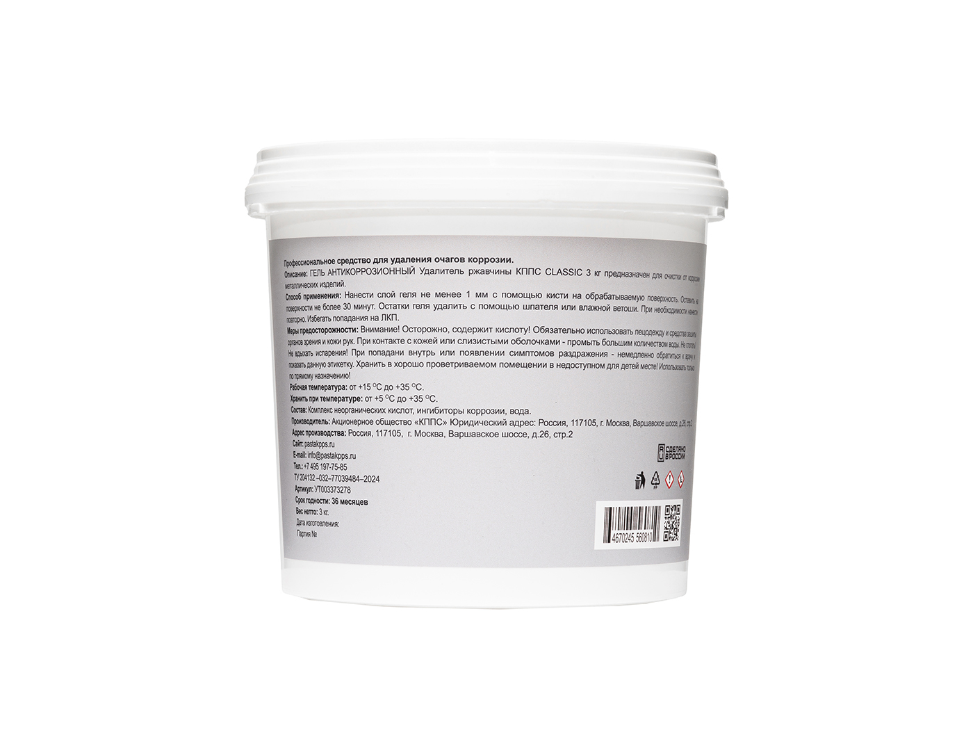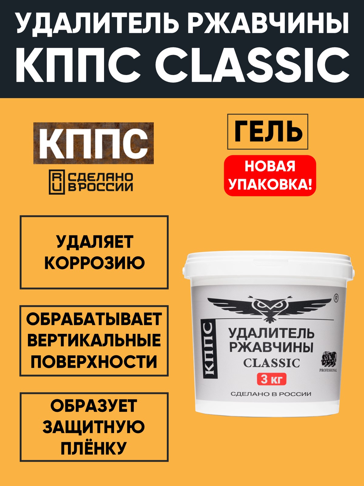 Технические характеристики Удалитель ржавчины КППС CLASSIC (ведро 3кг), Гель антикоррозионный