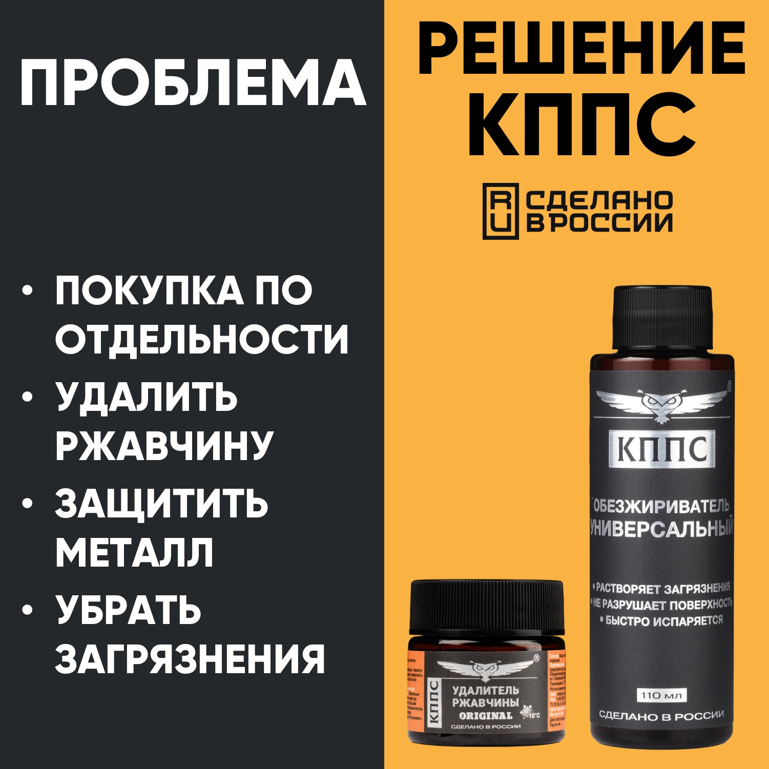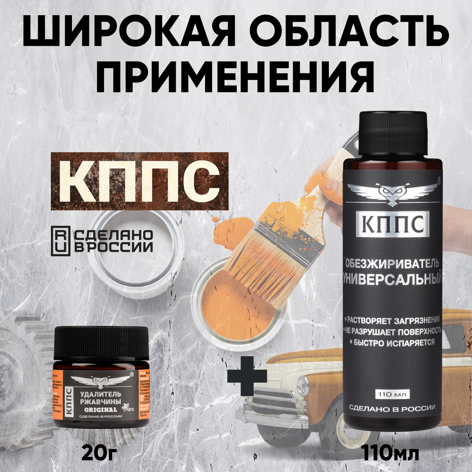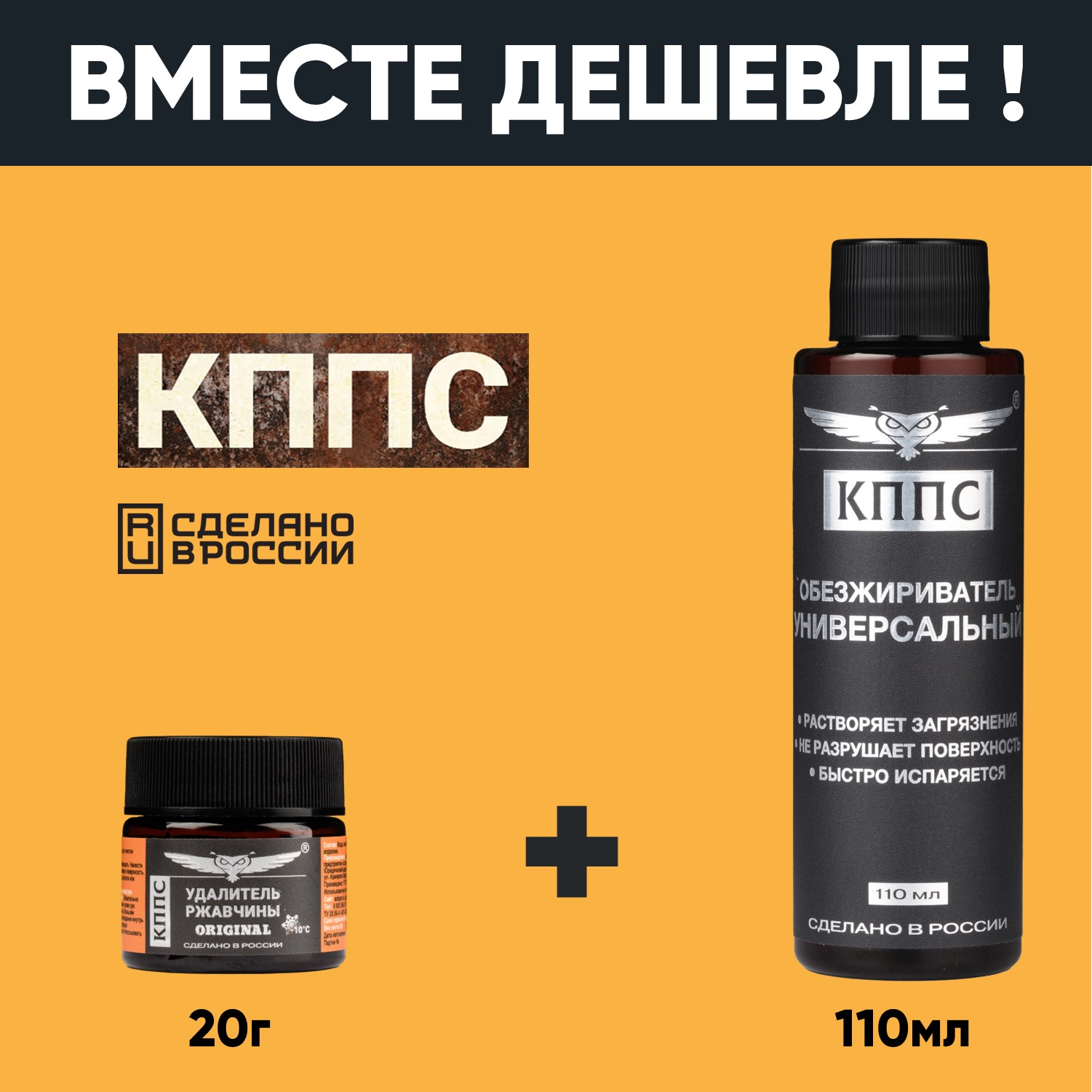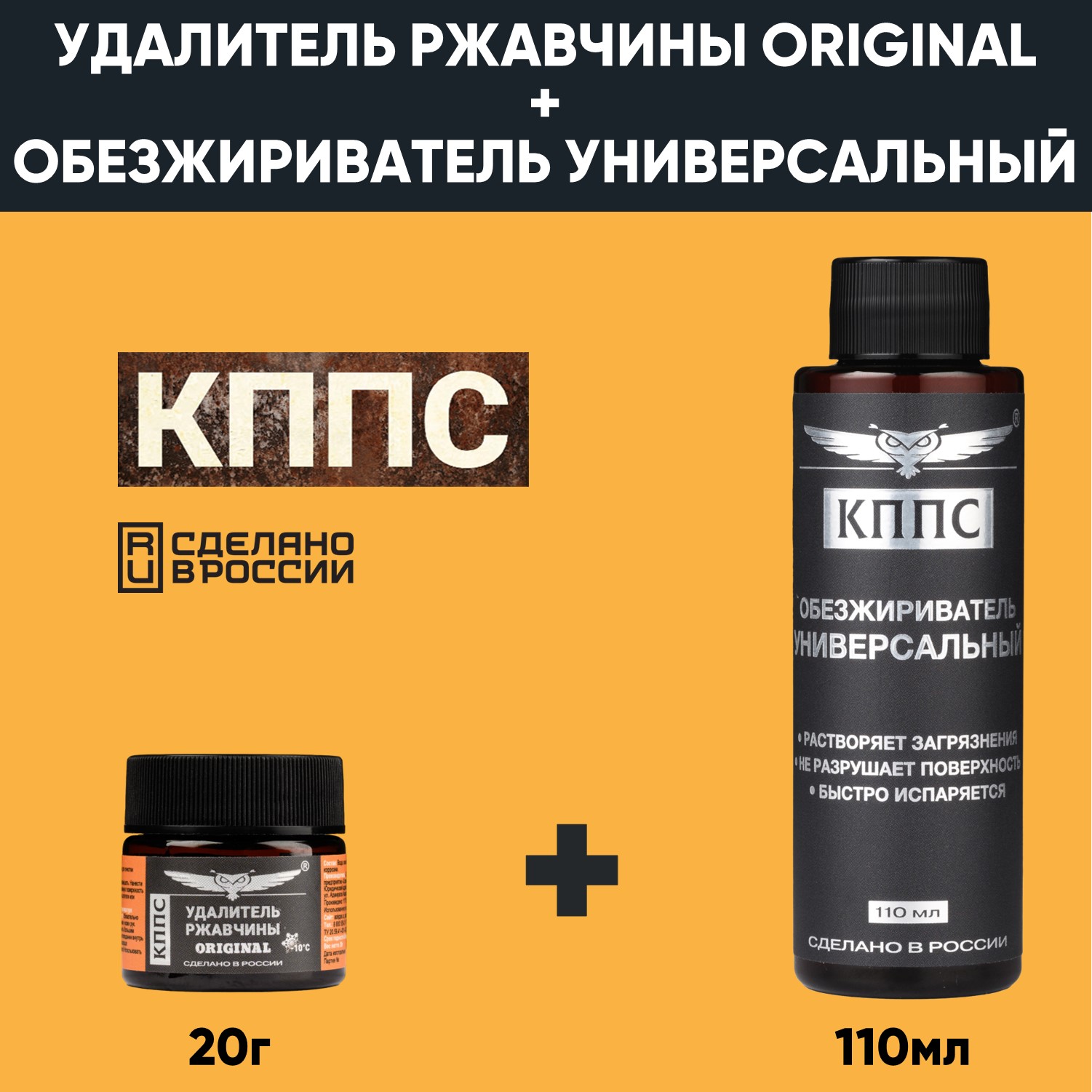 Удалитель ржавчины КППС ORIGINAL (20г) + Универсальный обезжириватель КППС (110мл)