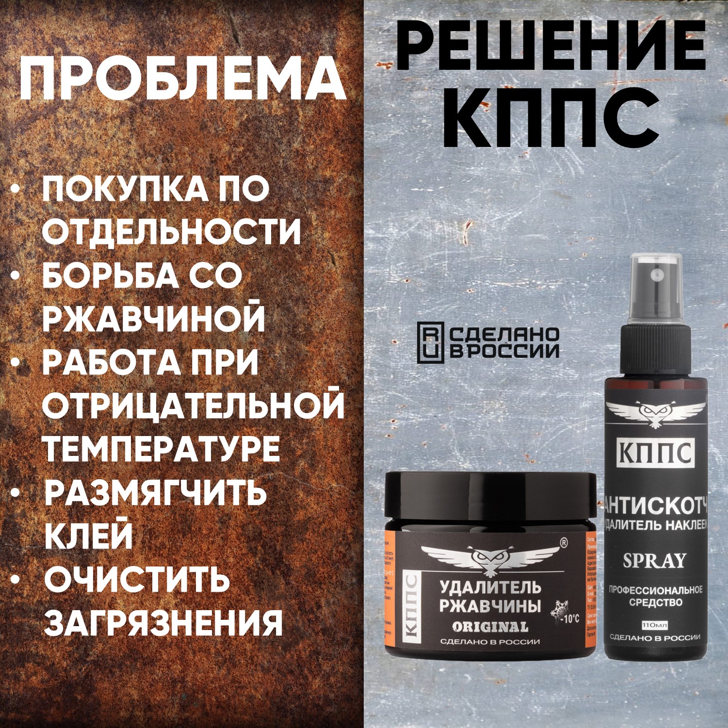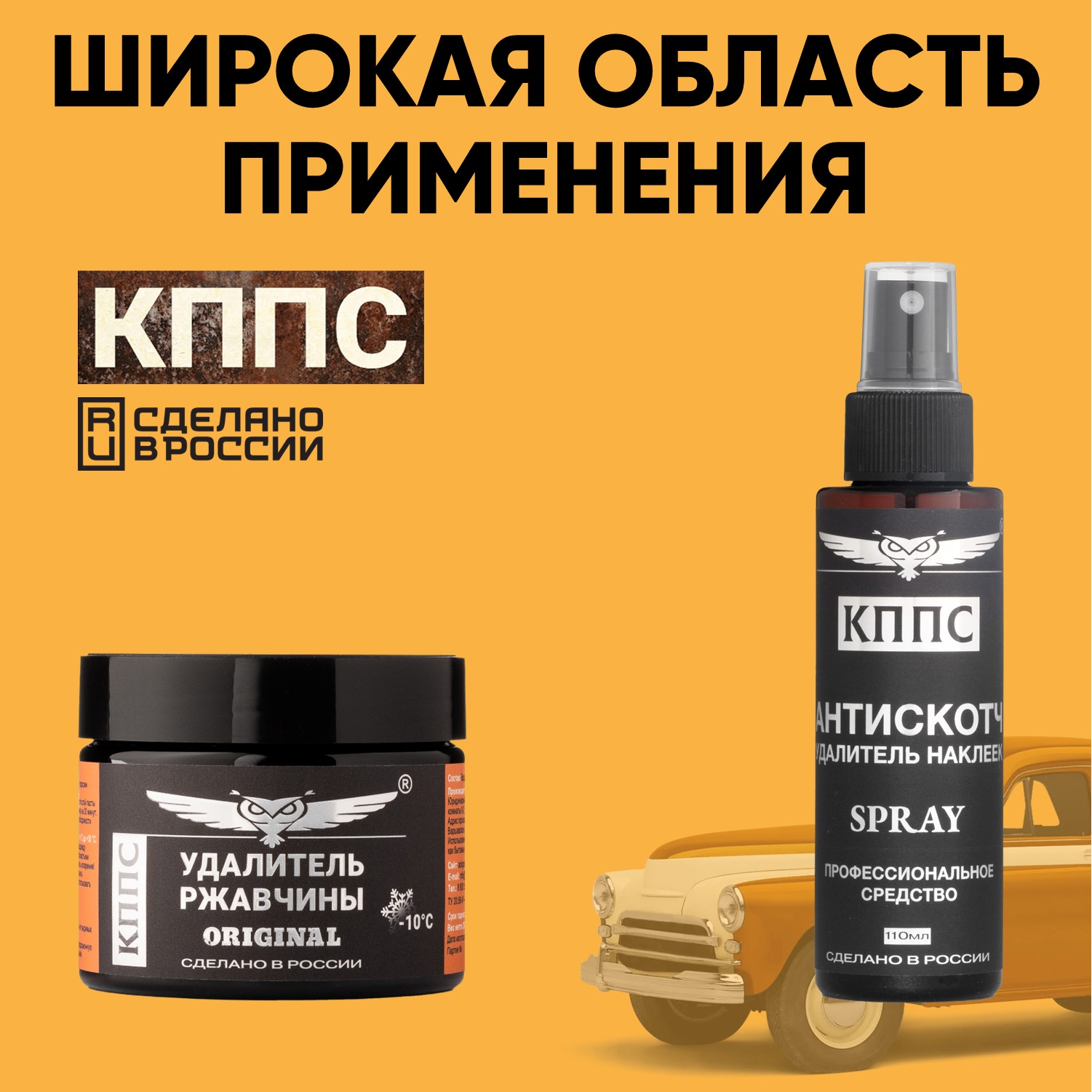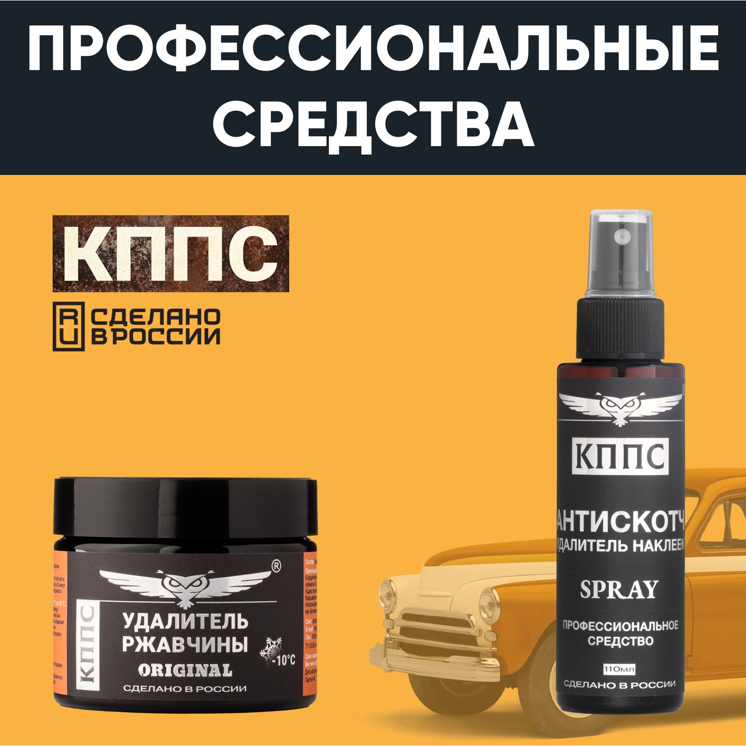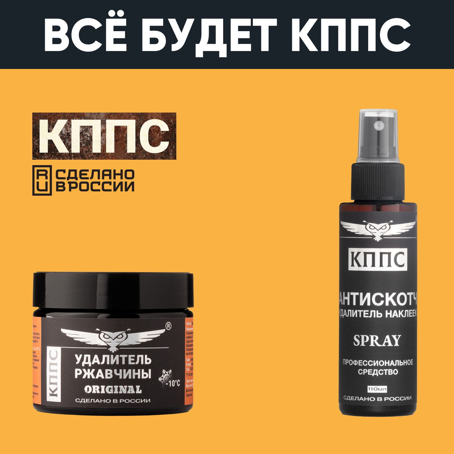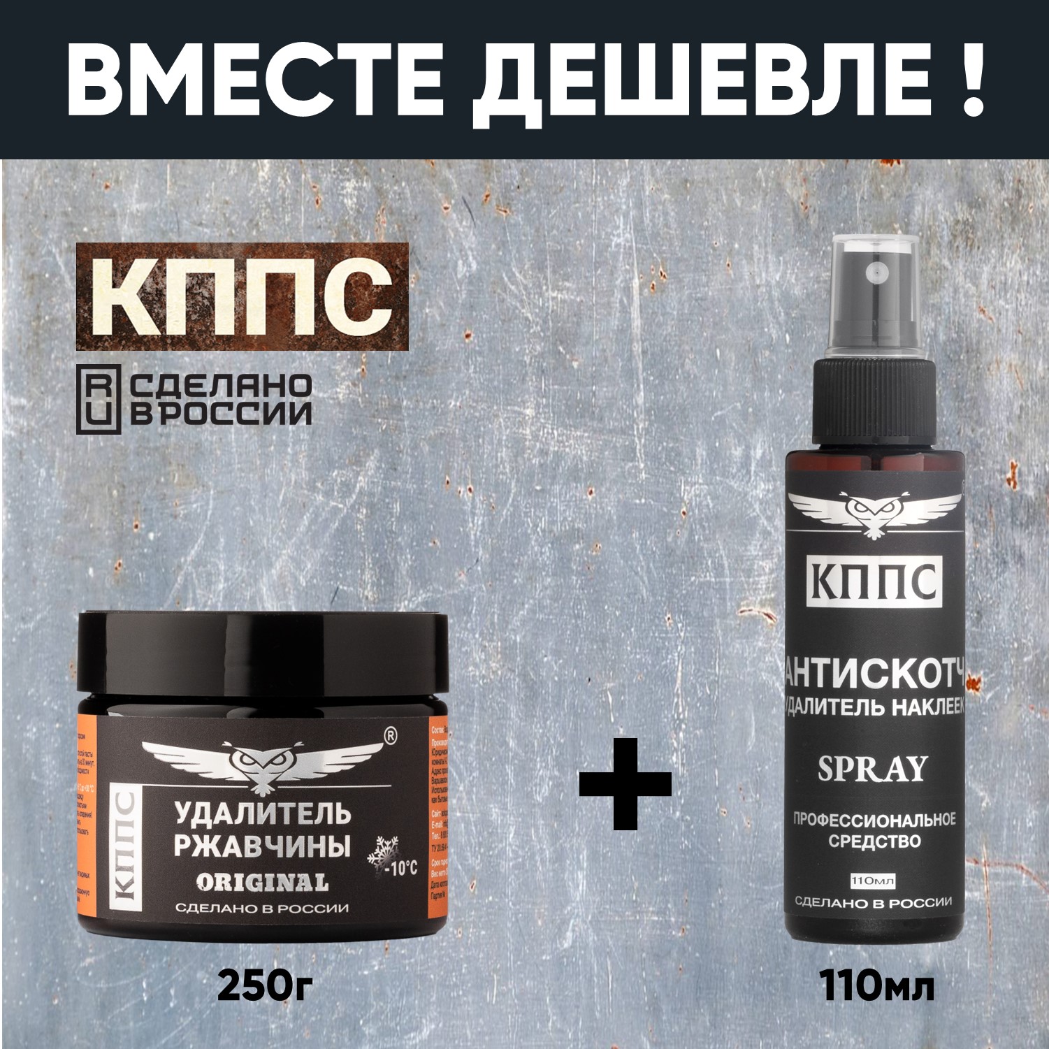 Технические характеристики Удалитель ржавчины КППС ORIGINAL (250г) + АНТИСКОТЧ удалитель наклеек КППС SPRAY (110 мл)