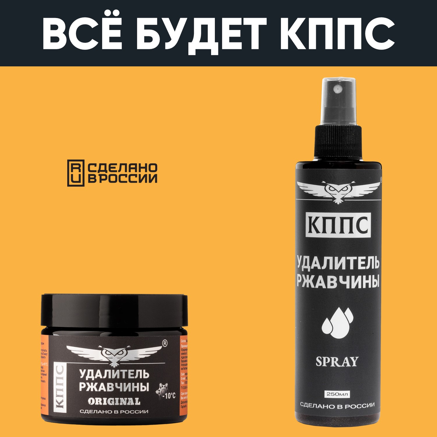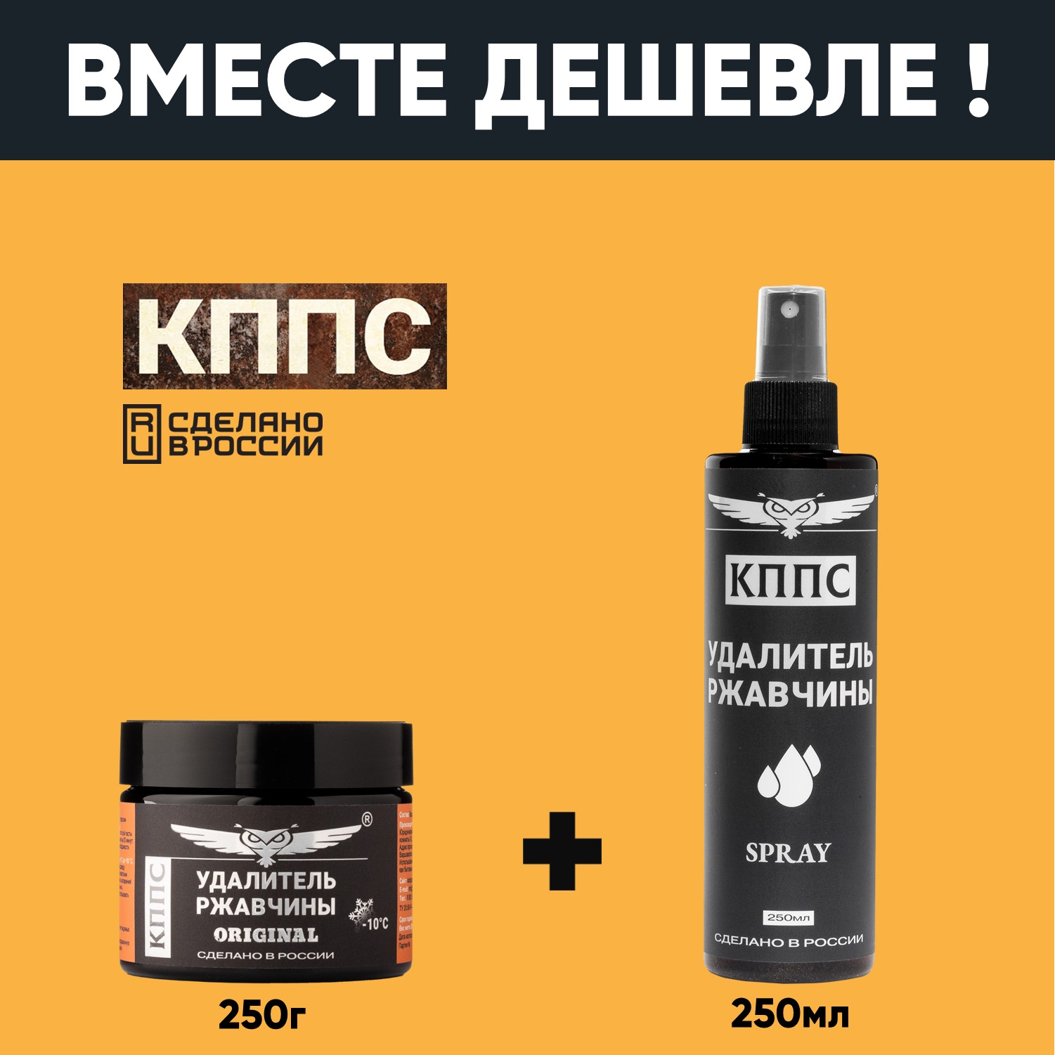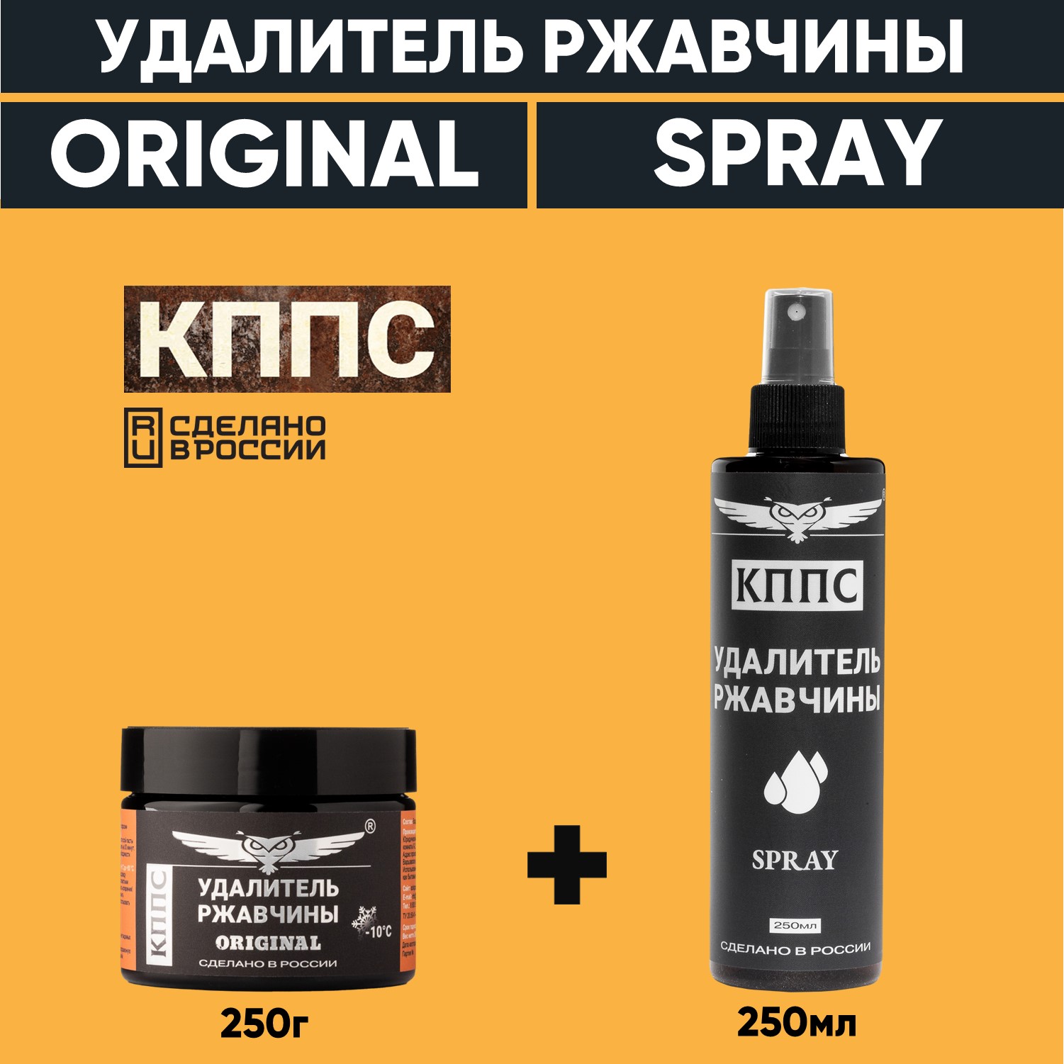 Технические характеристики Удалитель ржавчины КППС ORIGINAL (250г) + Удалитель ржавчины КППС SPRAY (250мл)