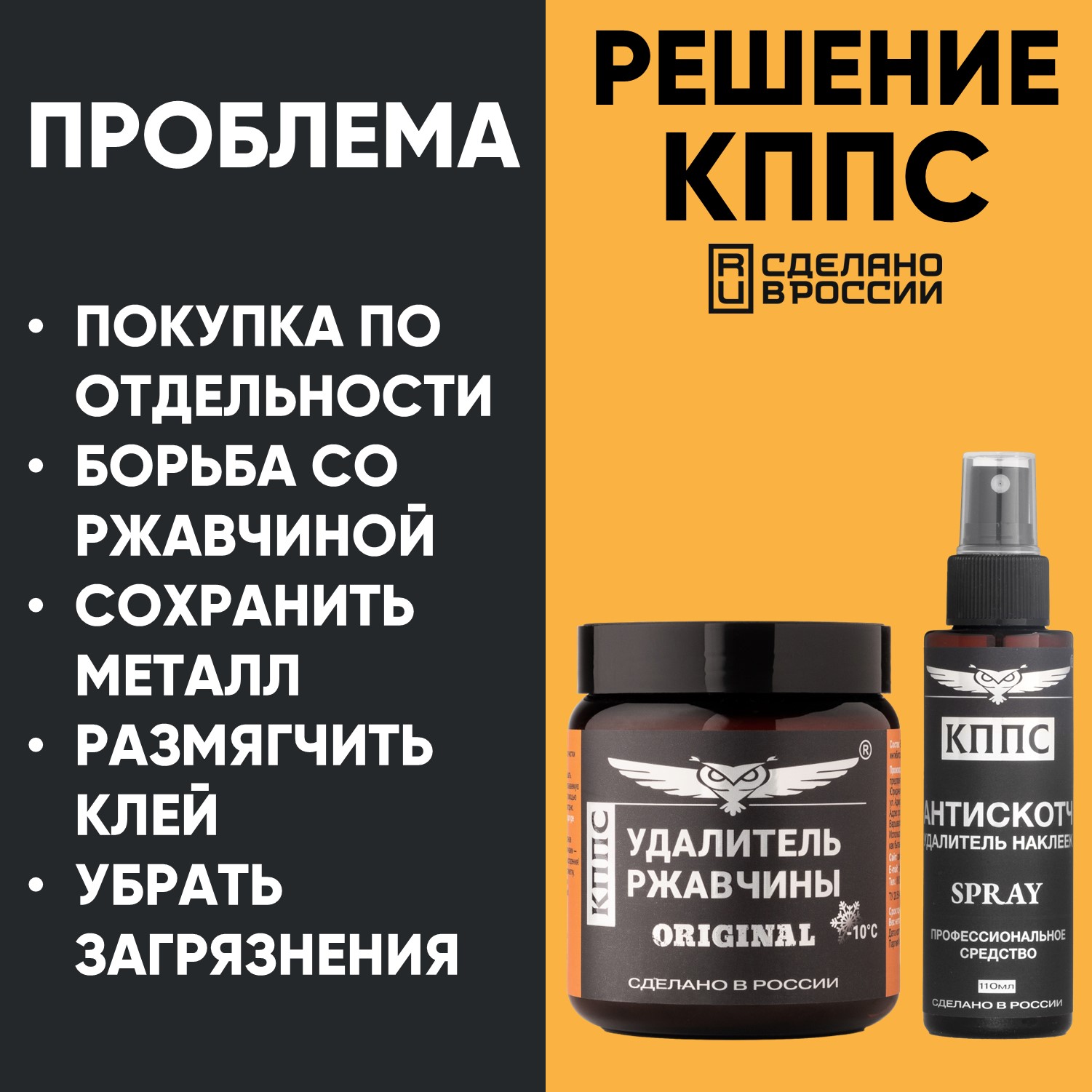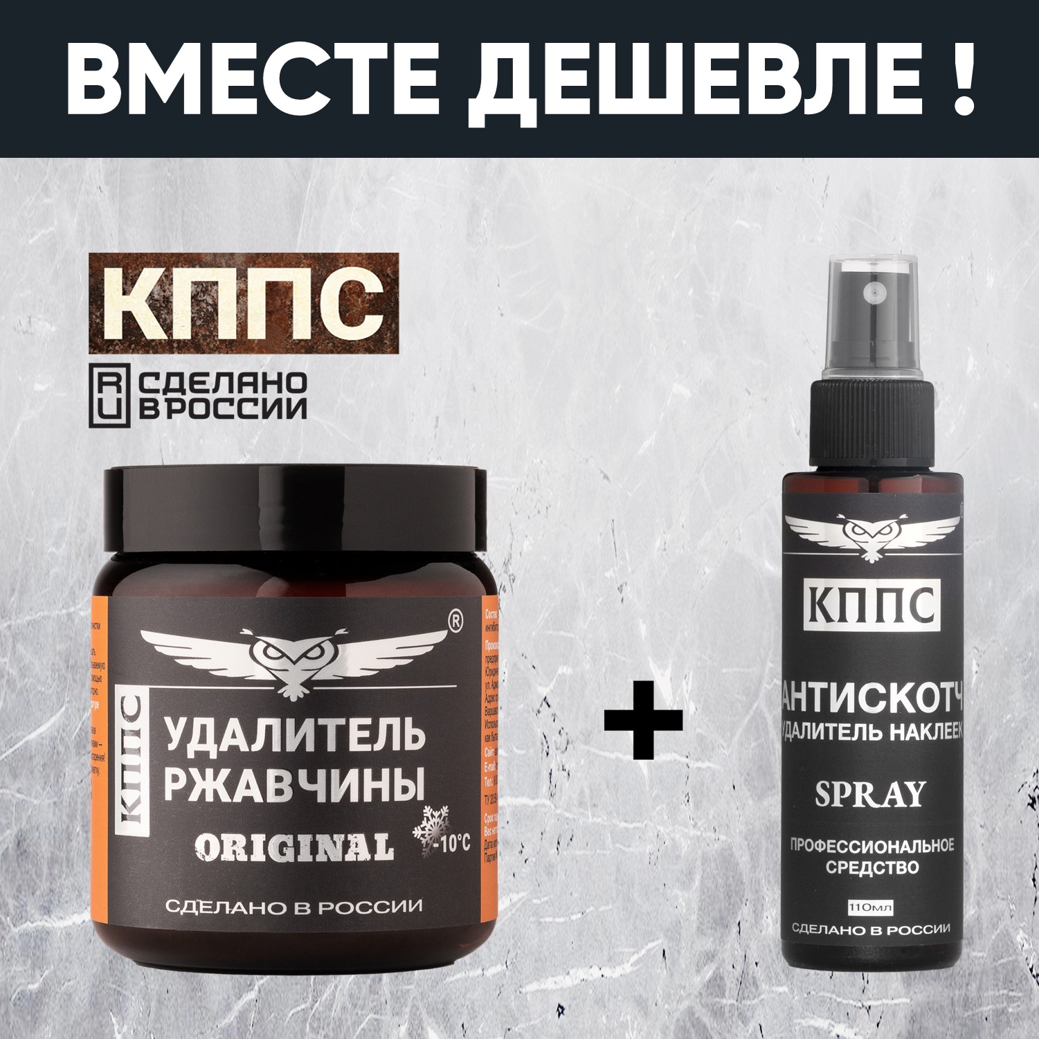 Технические характеристики Удалитель ржавчины КППС ORIGINAL (500г) + АНТИСКОТЧ удалитель наклеек КППС SPRAY (110 мл)