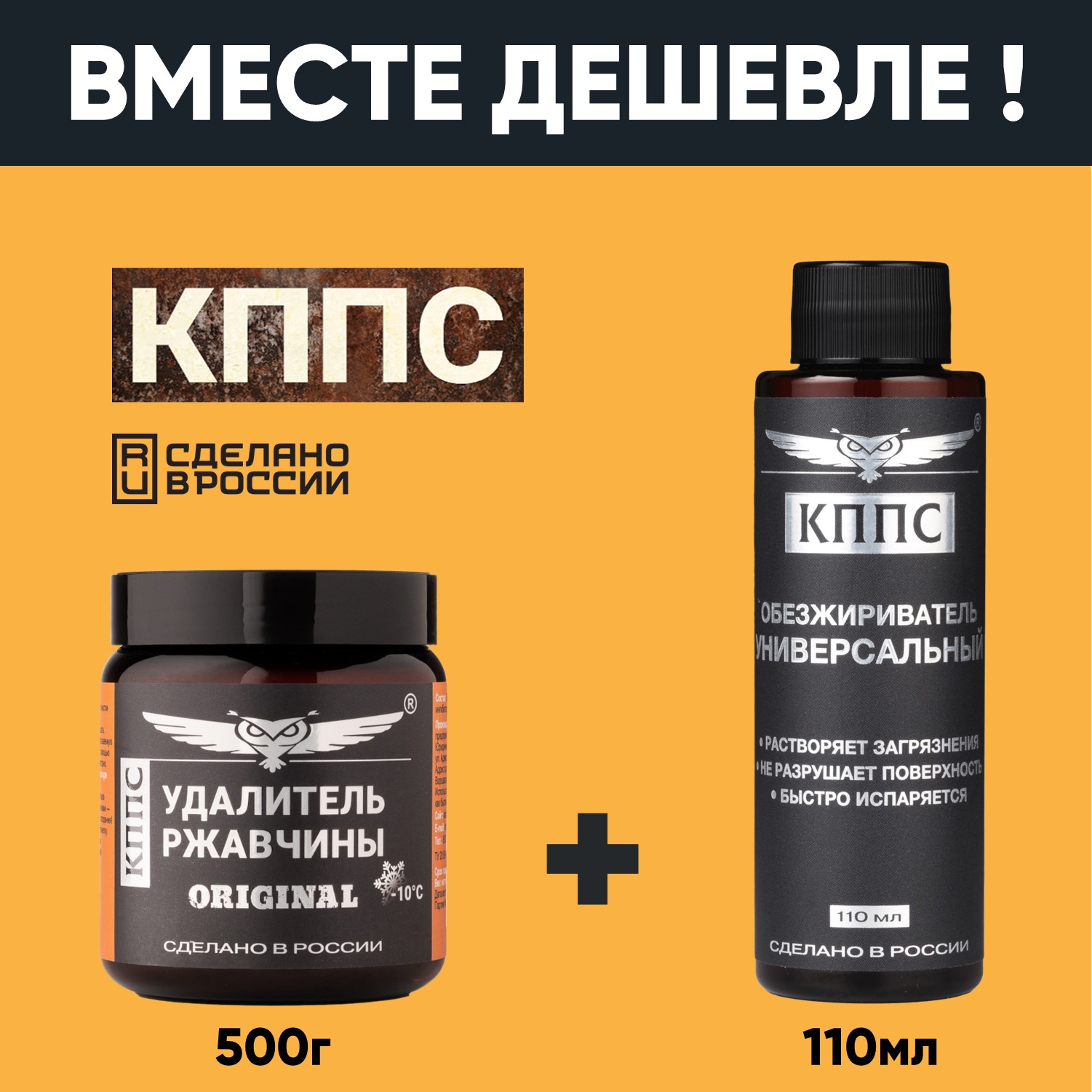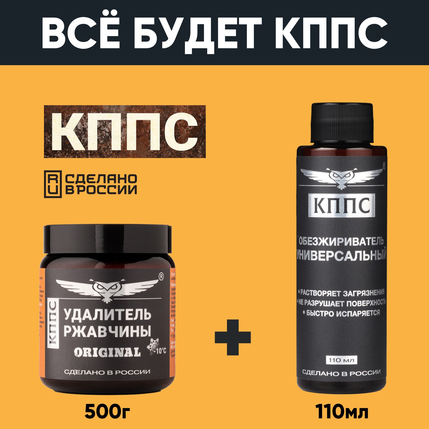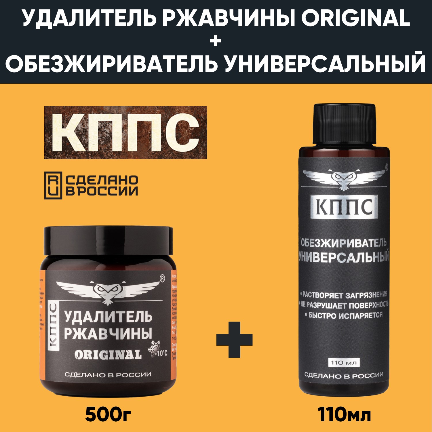Удалитель ржавчины КППС ORIGINAL (500г) + Универсальный обезжириватель КППС (110мл)