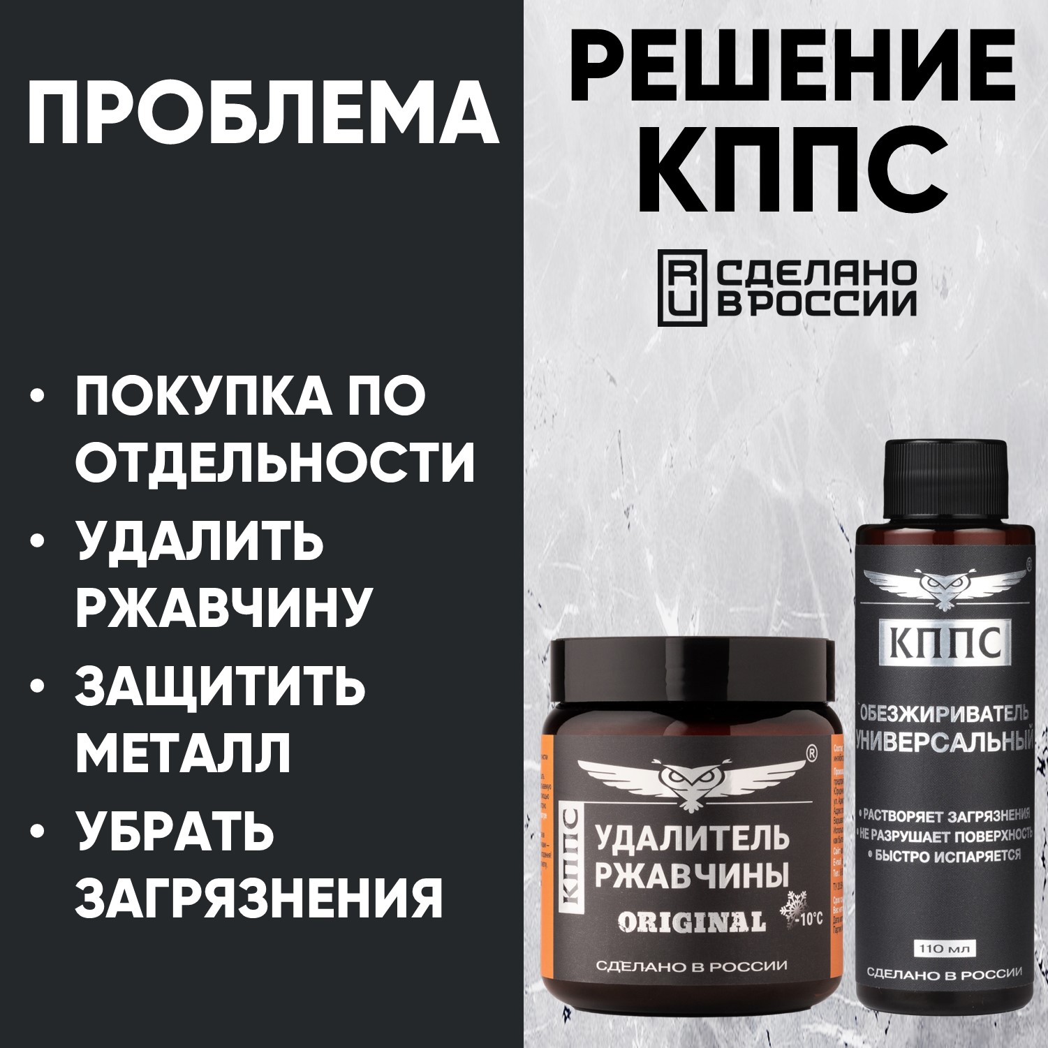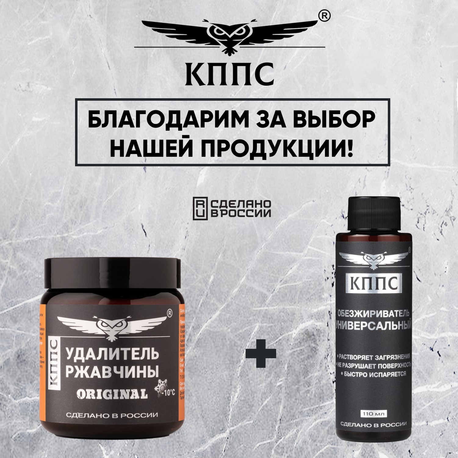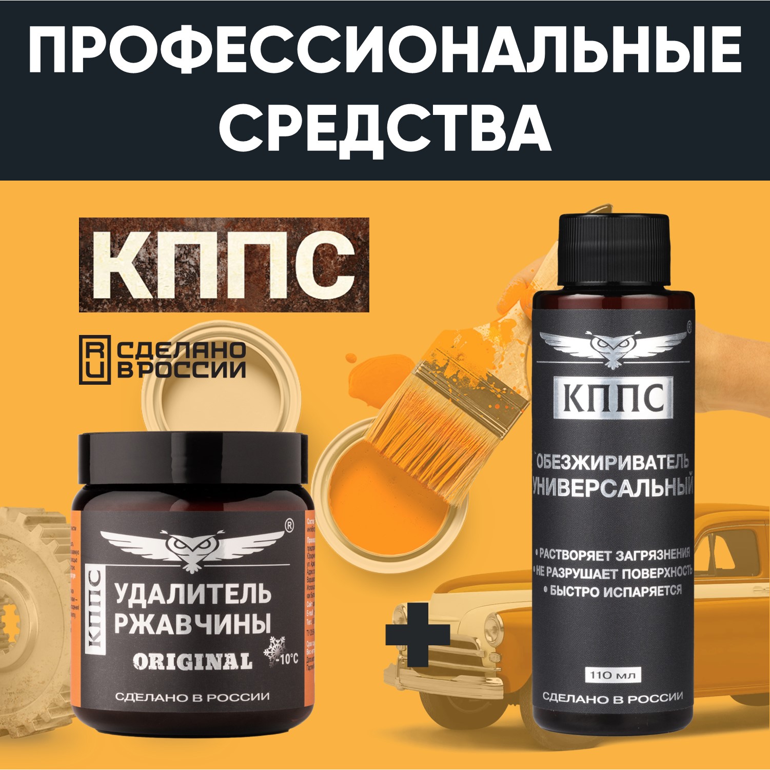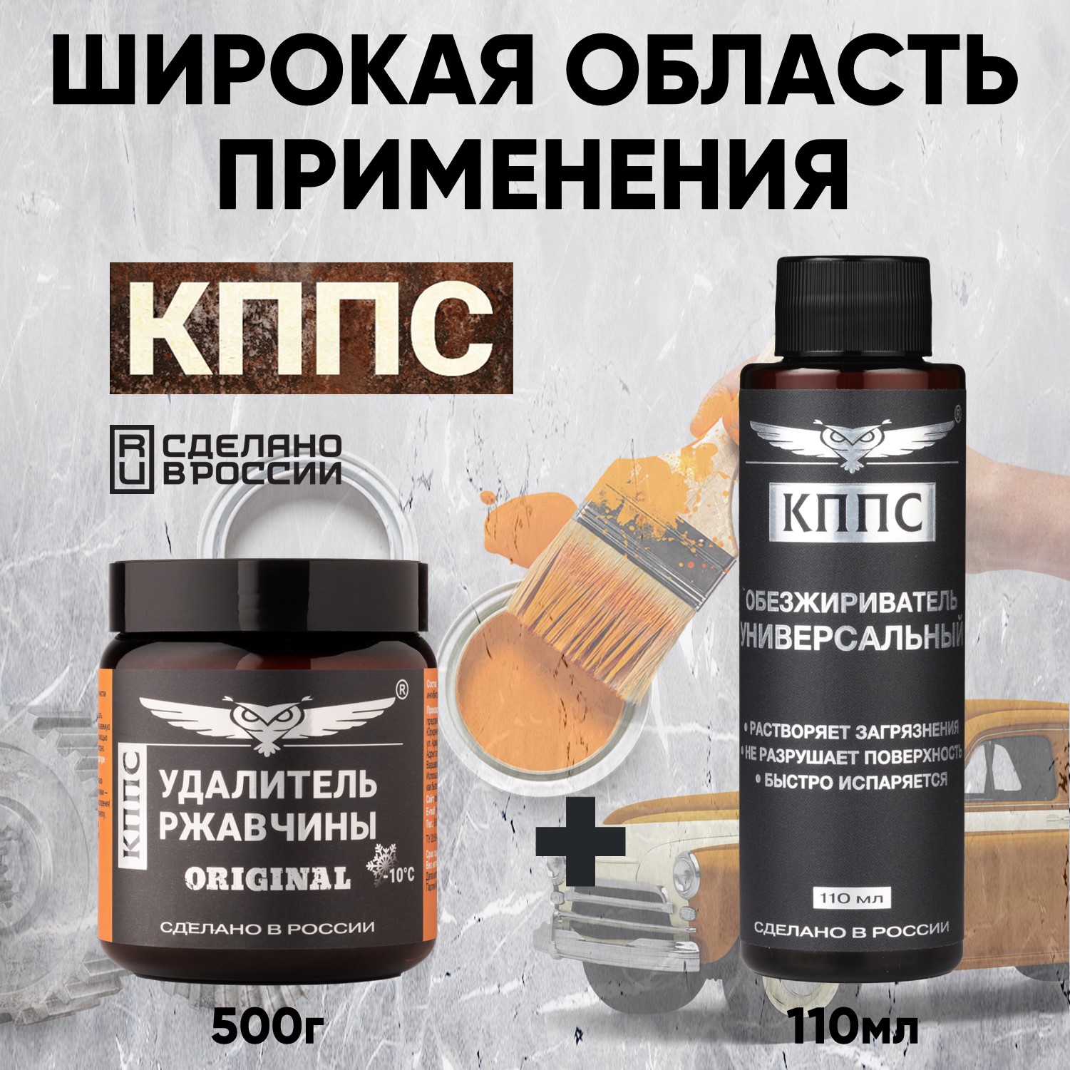 Удалитель ржавчины КППС ORIGINAL (500г) + Универсальный обезжириватель КППС (110мл)