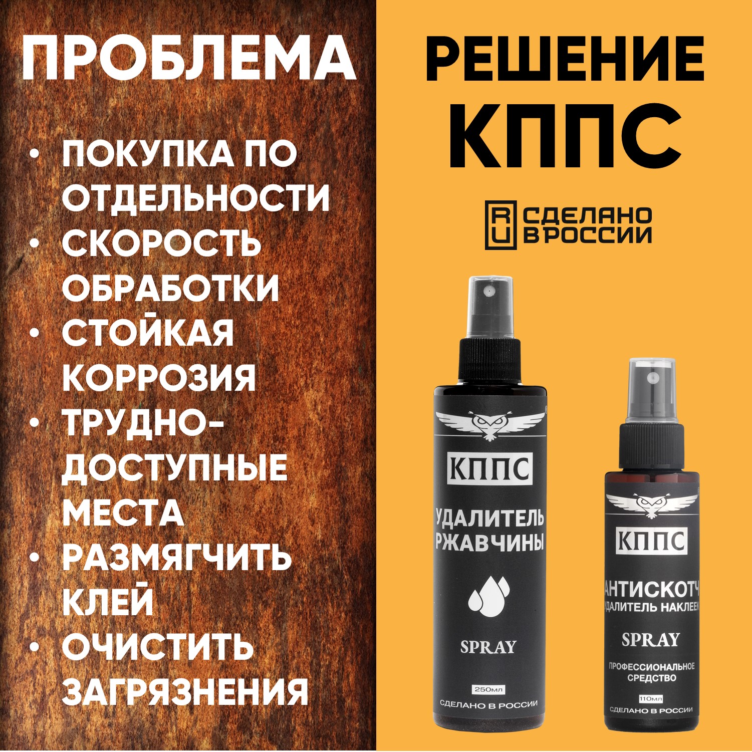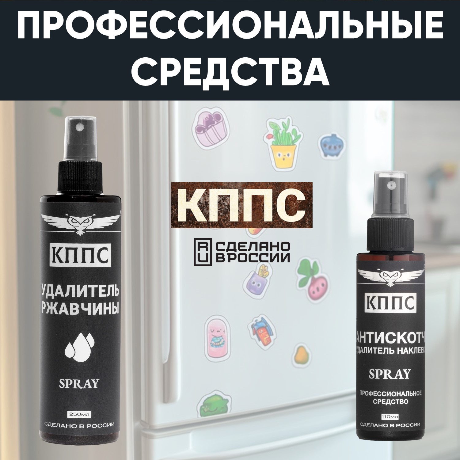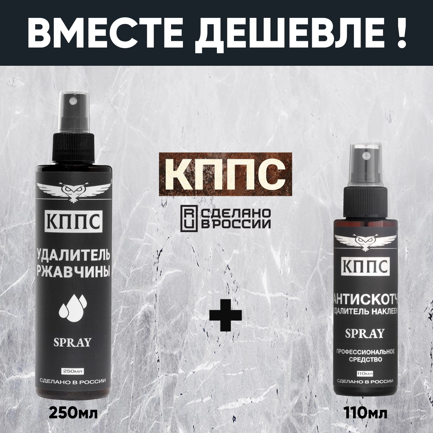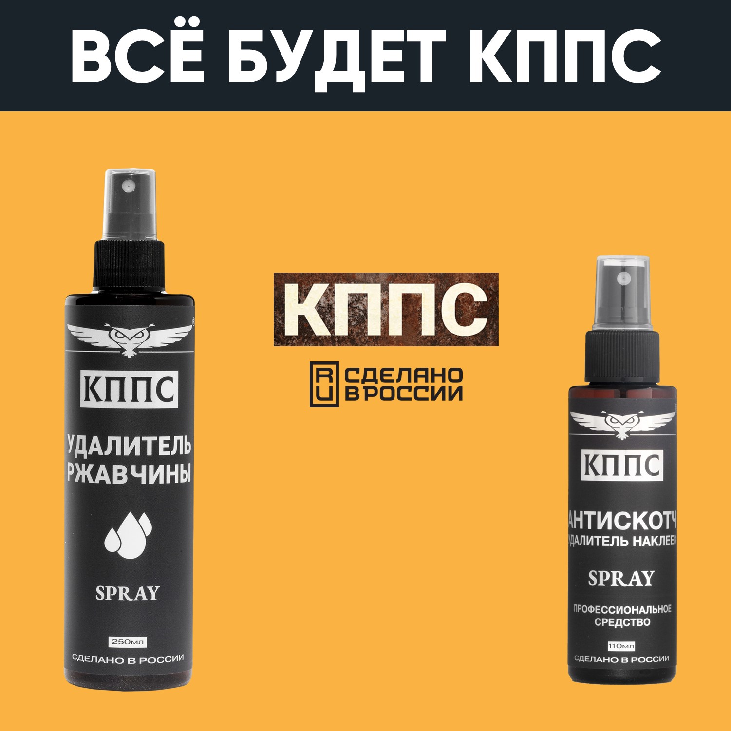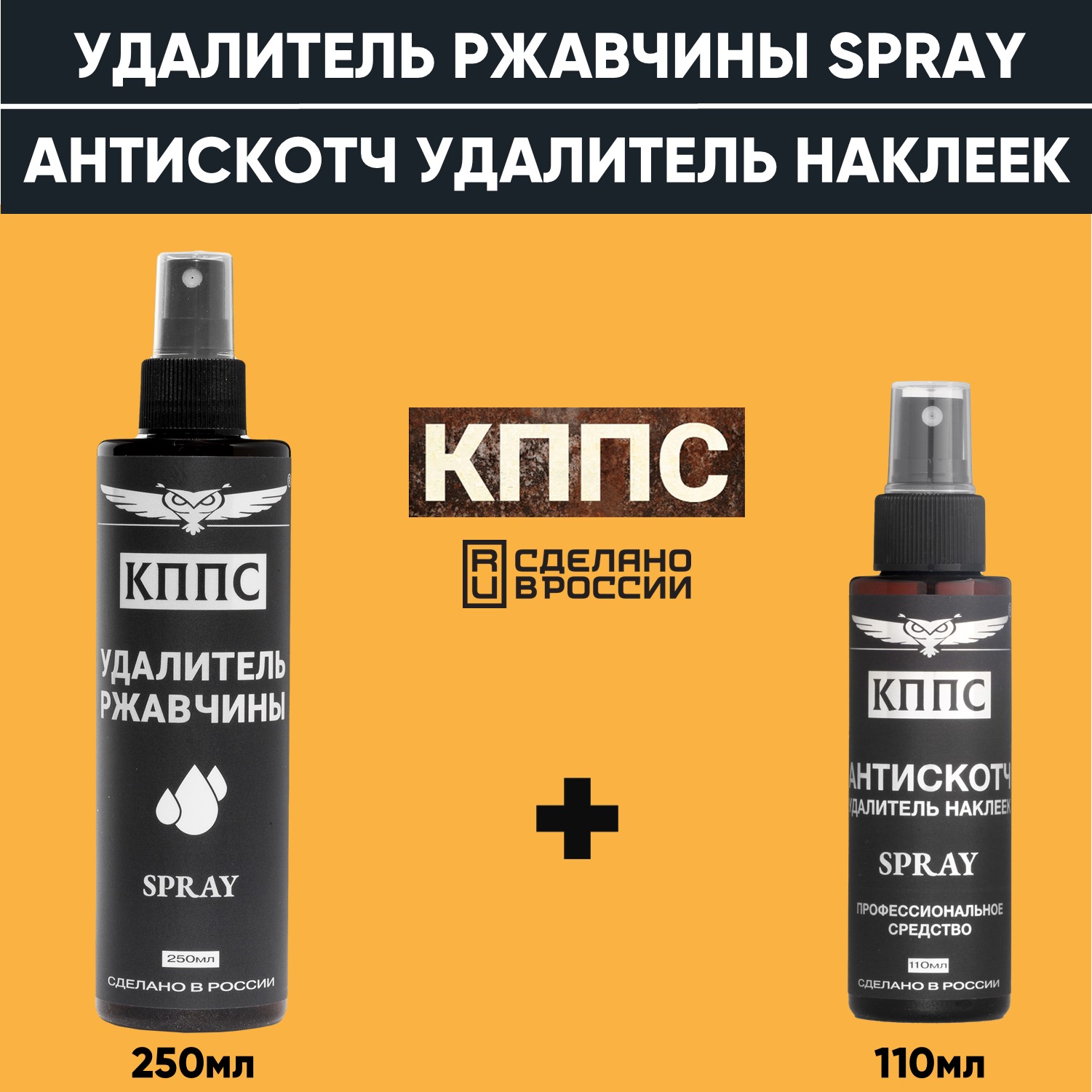 Удалитель ржавчины КППС SPRAY (250мл) + АНТИСКОТЧ удалитель наклеек КППС SPRAY (110 мл)