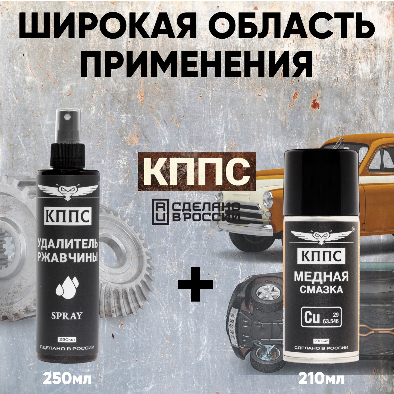 Технические характеристики Удалитель ржавчины КППС SPRAY (250мл) + Медная смазка КППС (210мл)