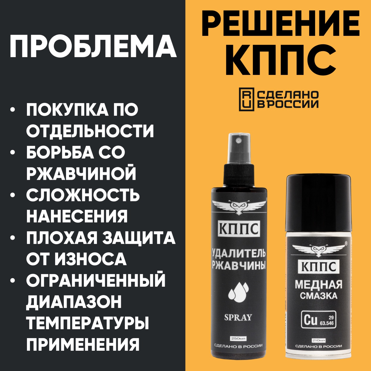 Удалитель ржавчины КППС SPRAY (250мл) + Медная смазка КППС (210мл)