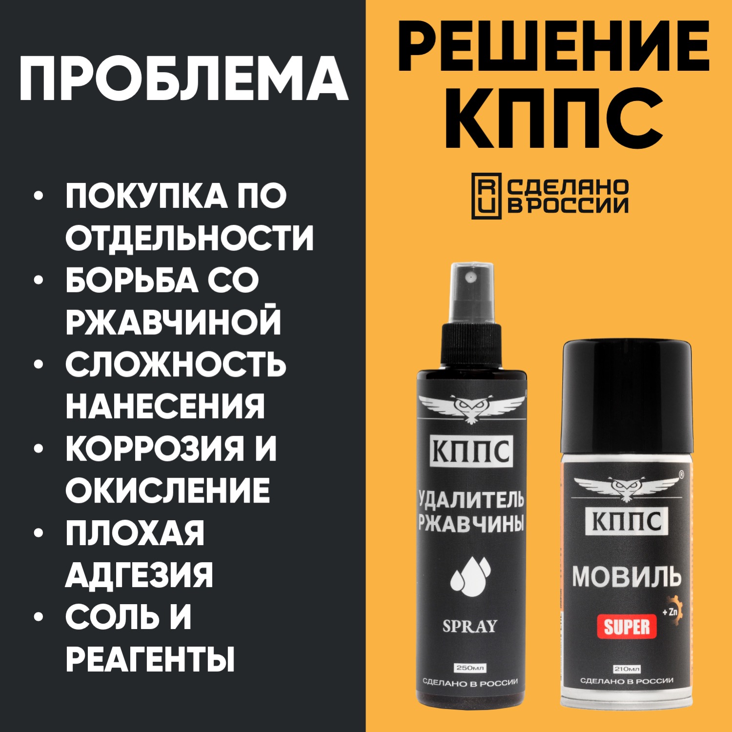 Удалитель ржавчины КППС SPRAY (250мл) + Мовиль КППС SUPER (210мл)