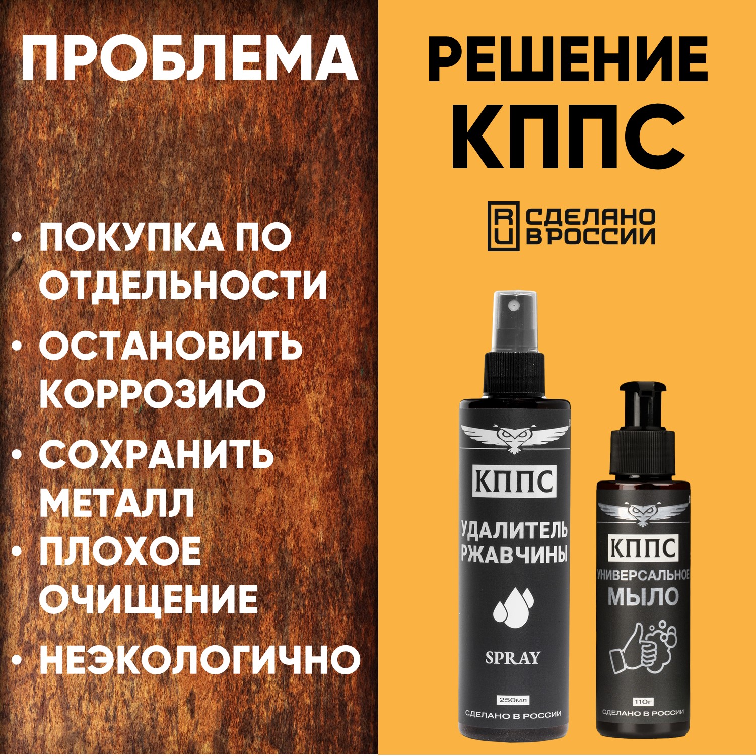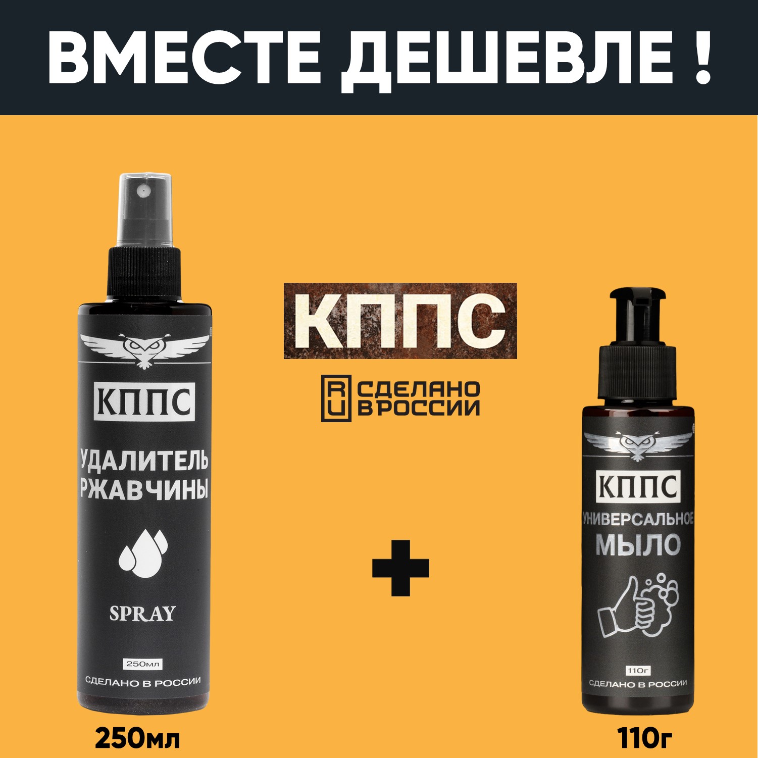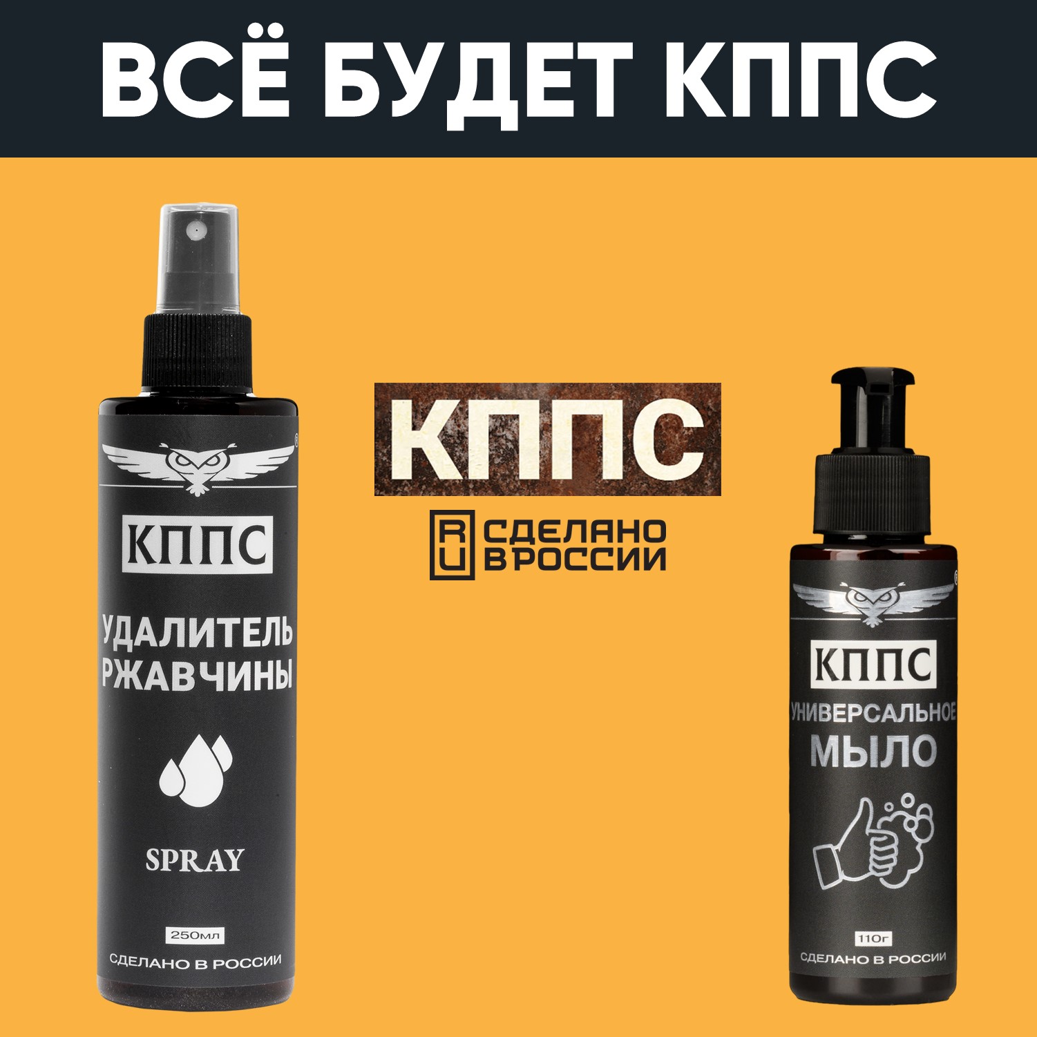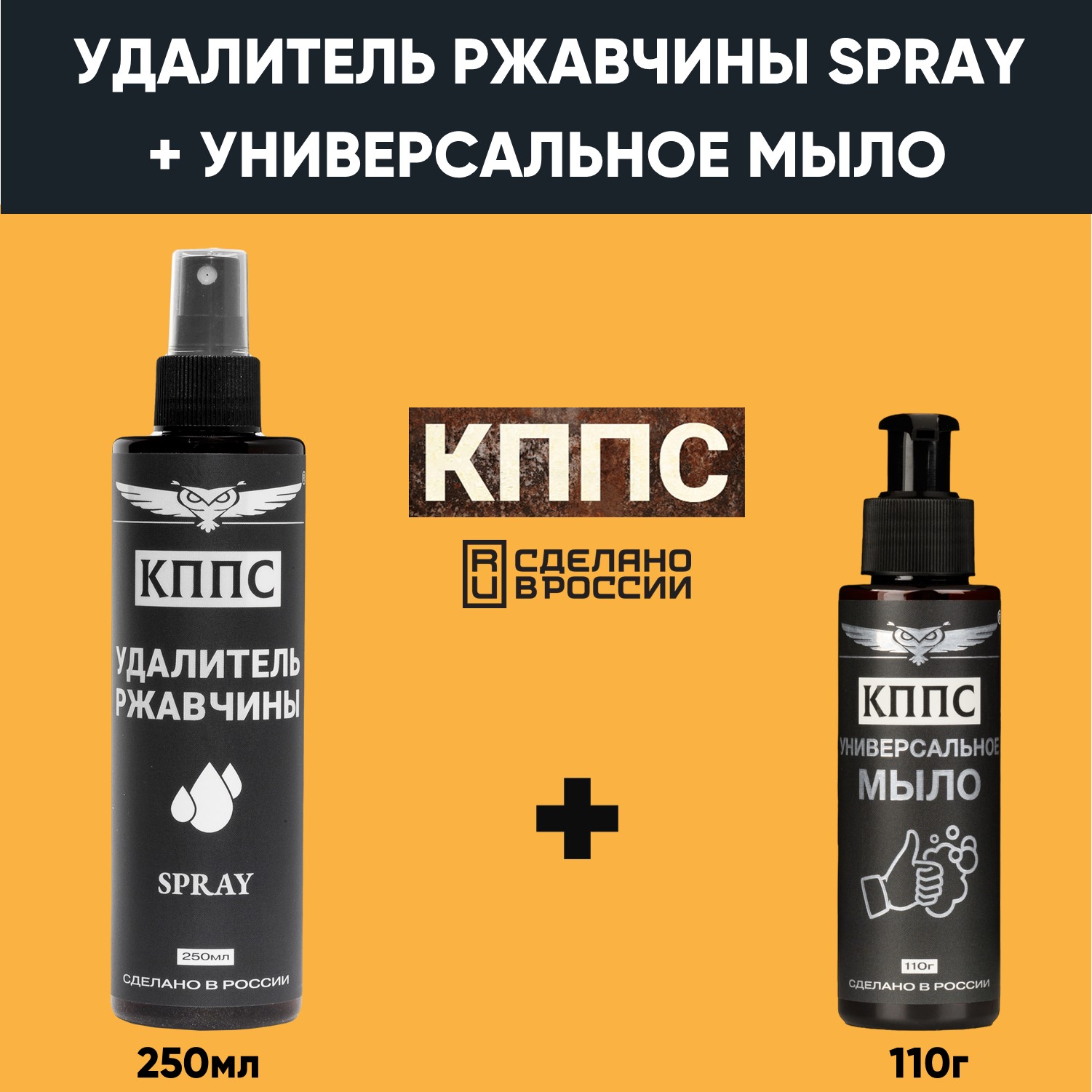 Удалитель ржавчины КППС SPRAY (250мл) + Универсальное мыло КППС (110г)
