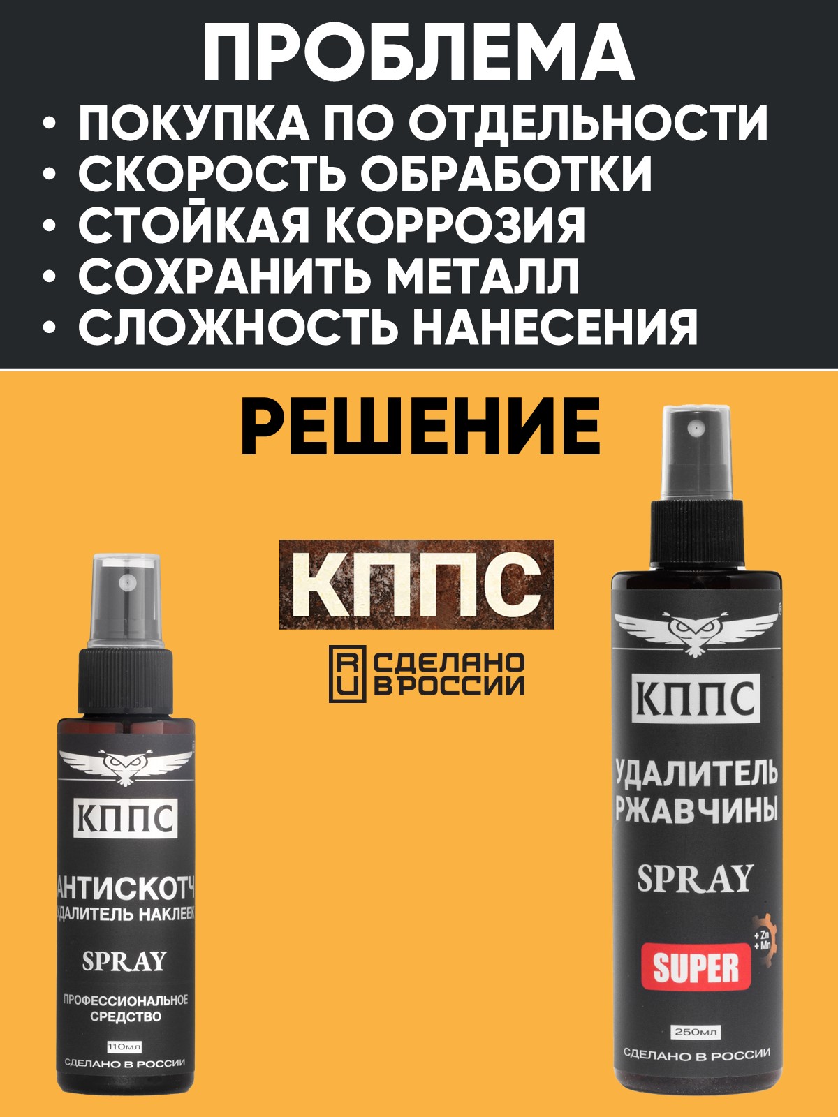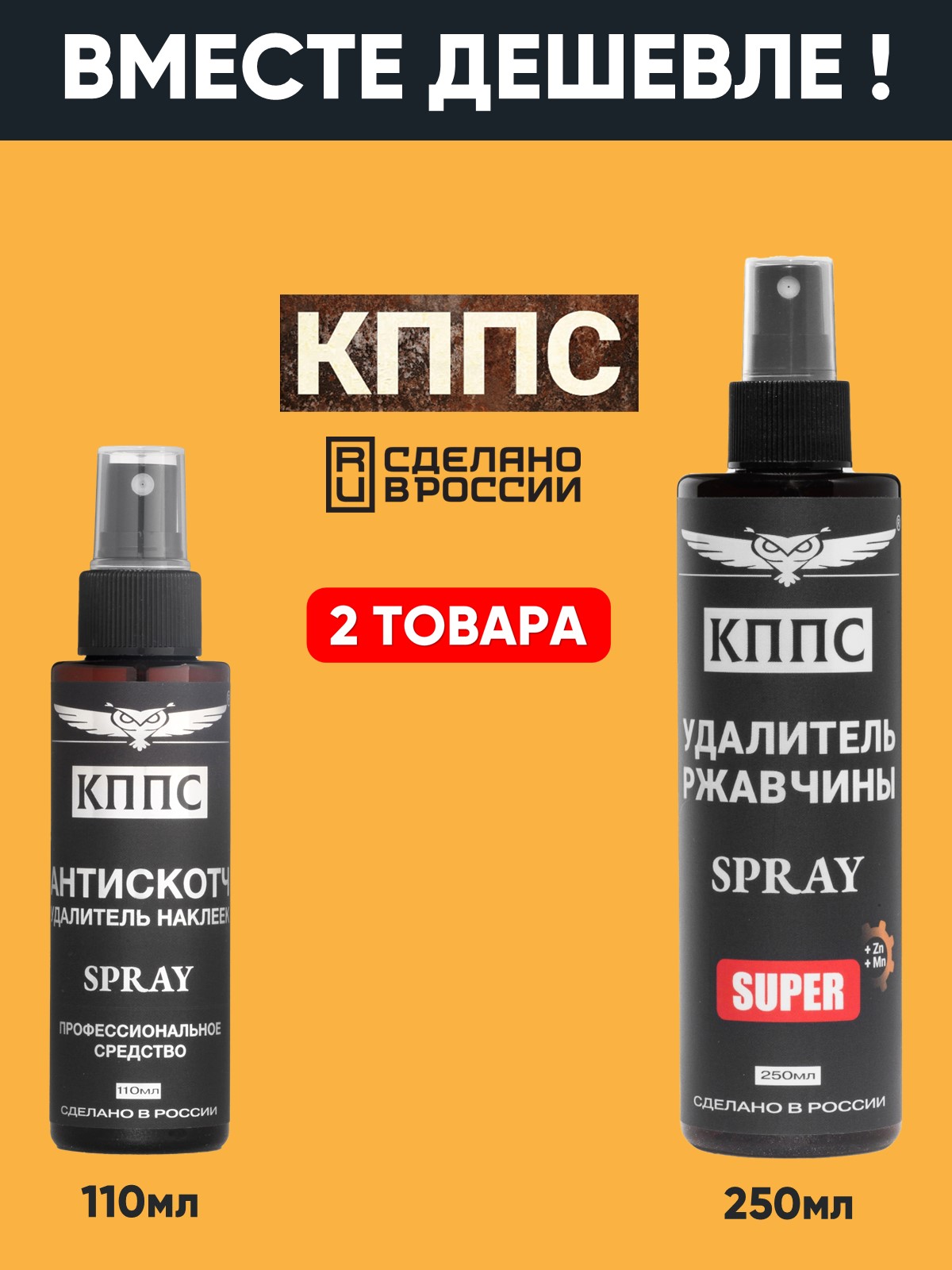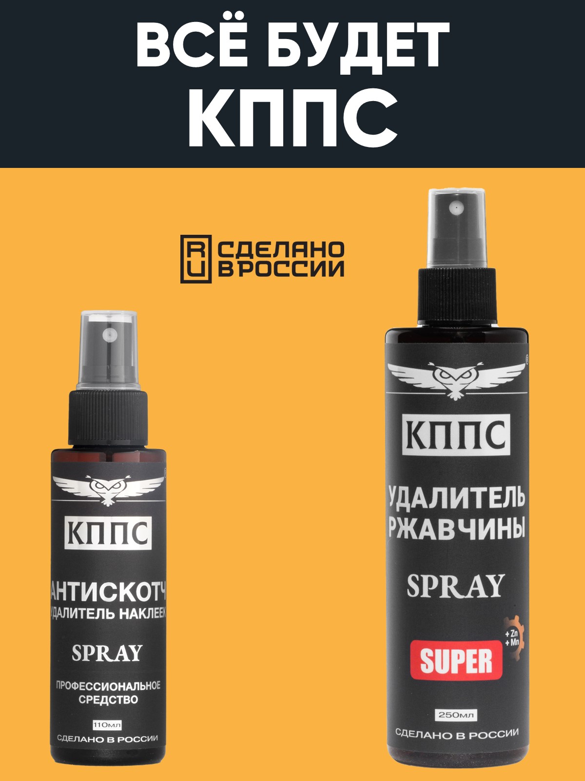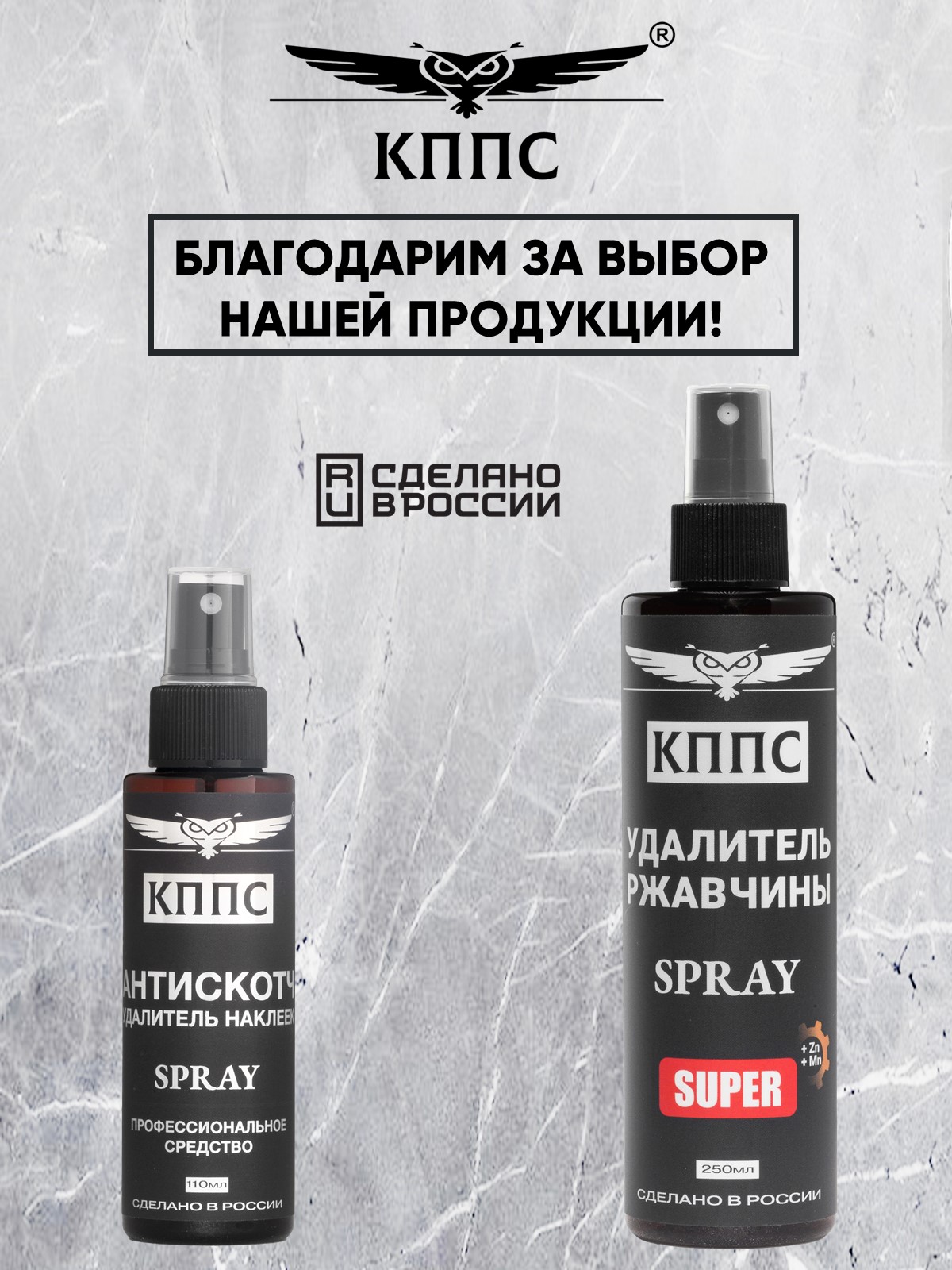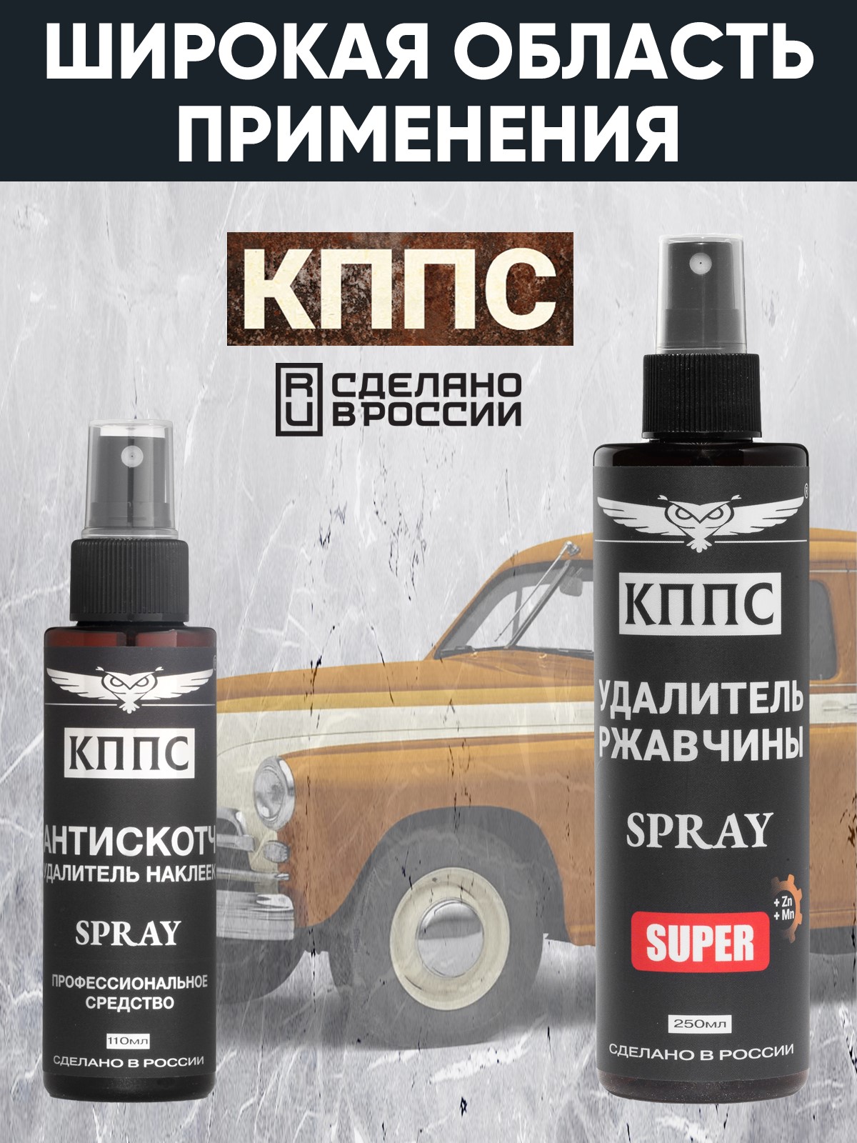Технические характеристики Удалитель ржавчины КППС SPRAY SUPER (250мл) + АНТИСКОТЧ удалитель наклеек КППС SPRAY (110мл)