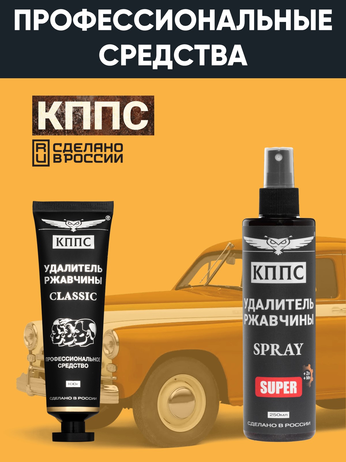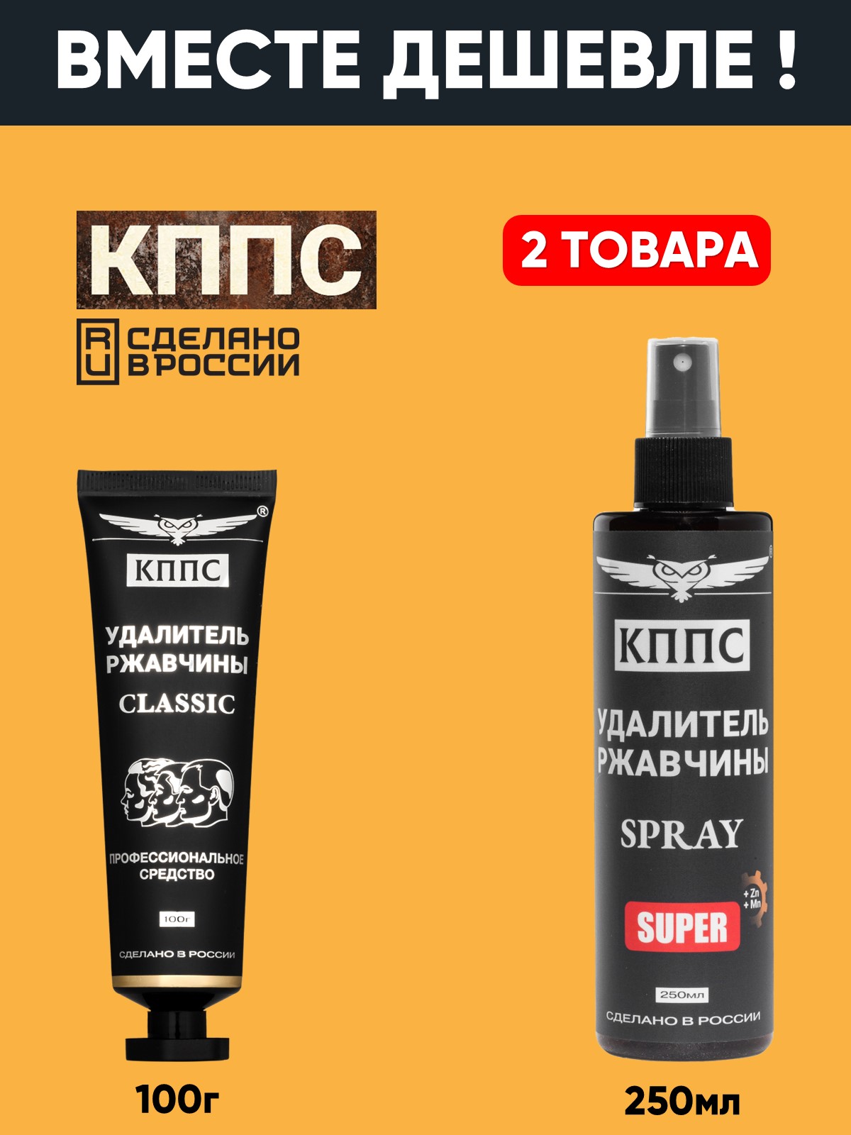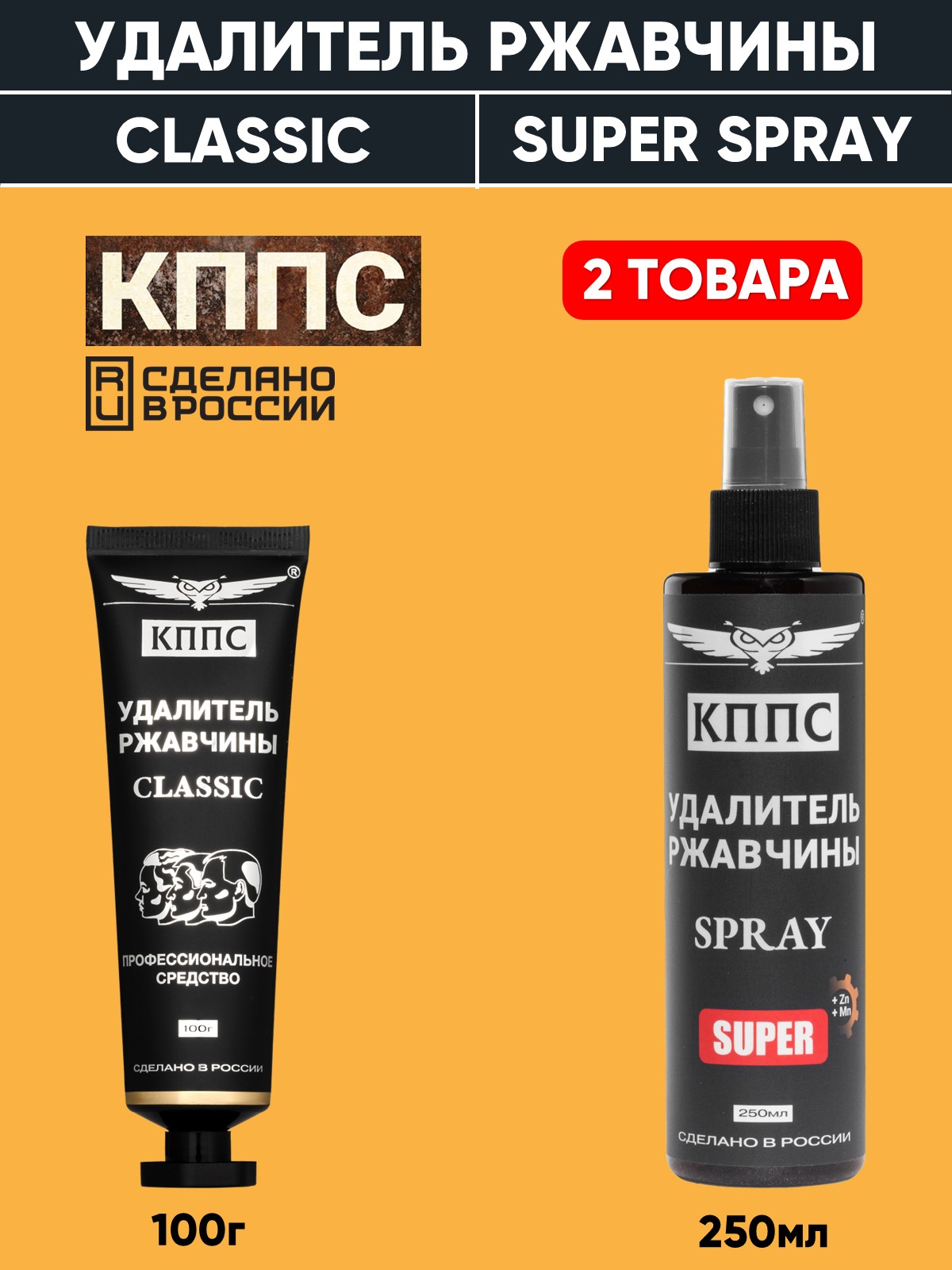 Технические характеристики Удалитель ржавчины КППС SPRAY SUPER (250мл) + Удалитель ржавчины КППС CLASSIC (100г)