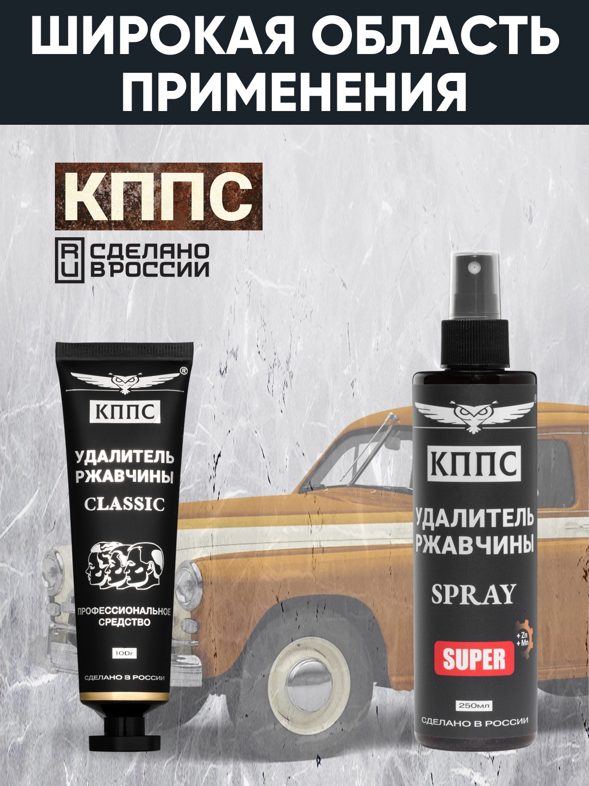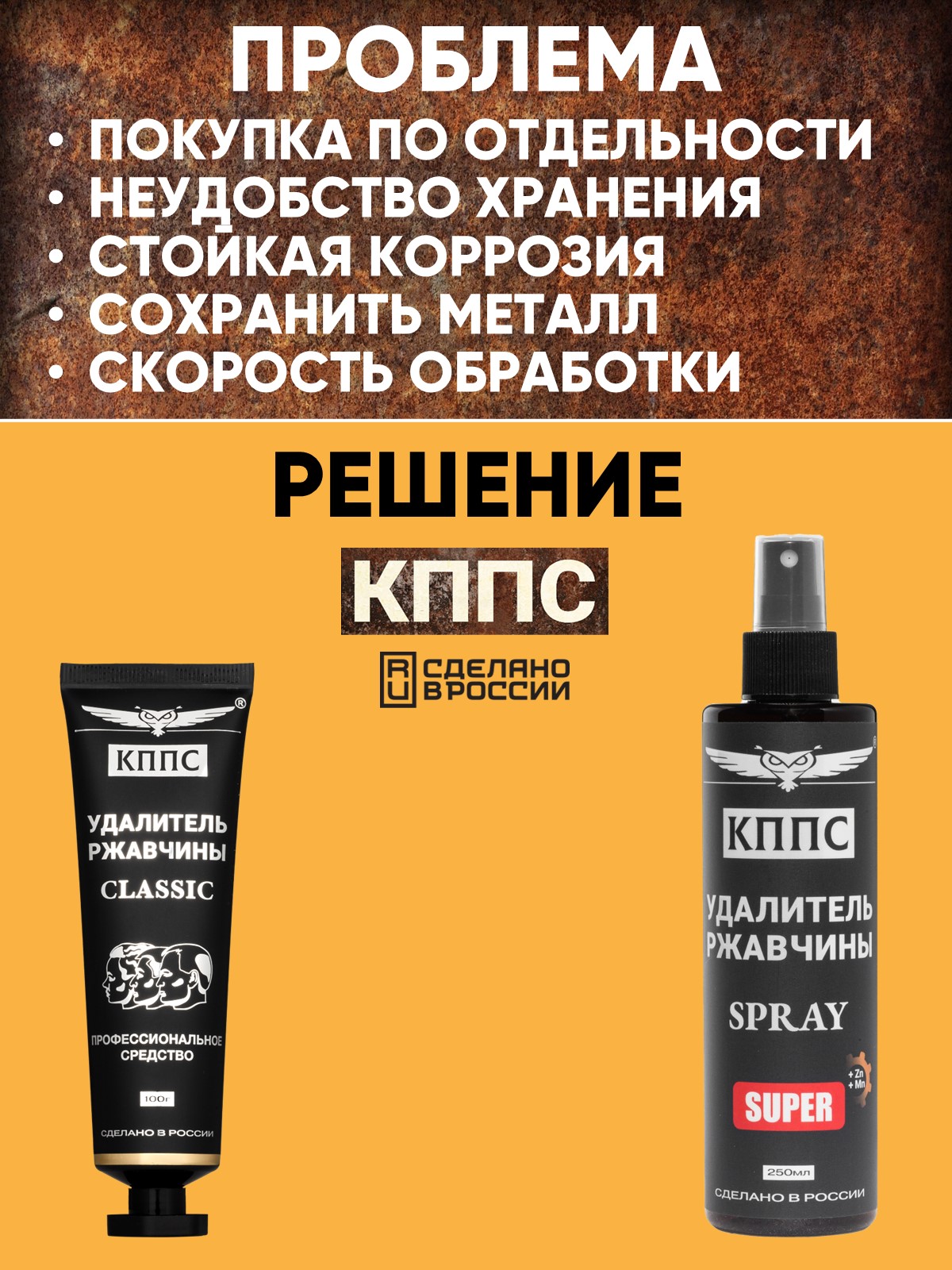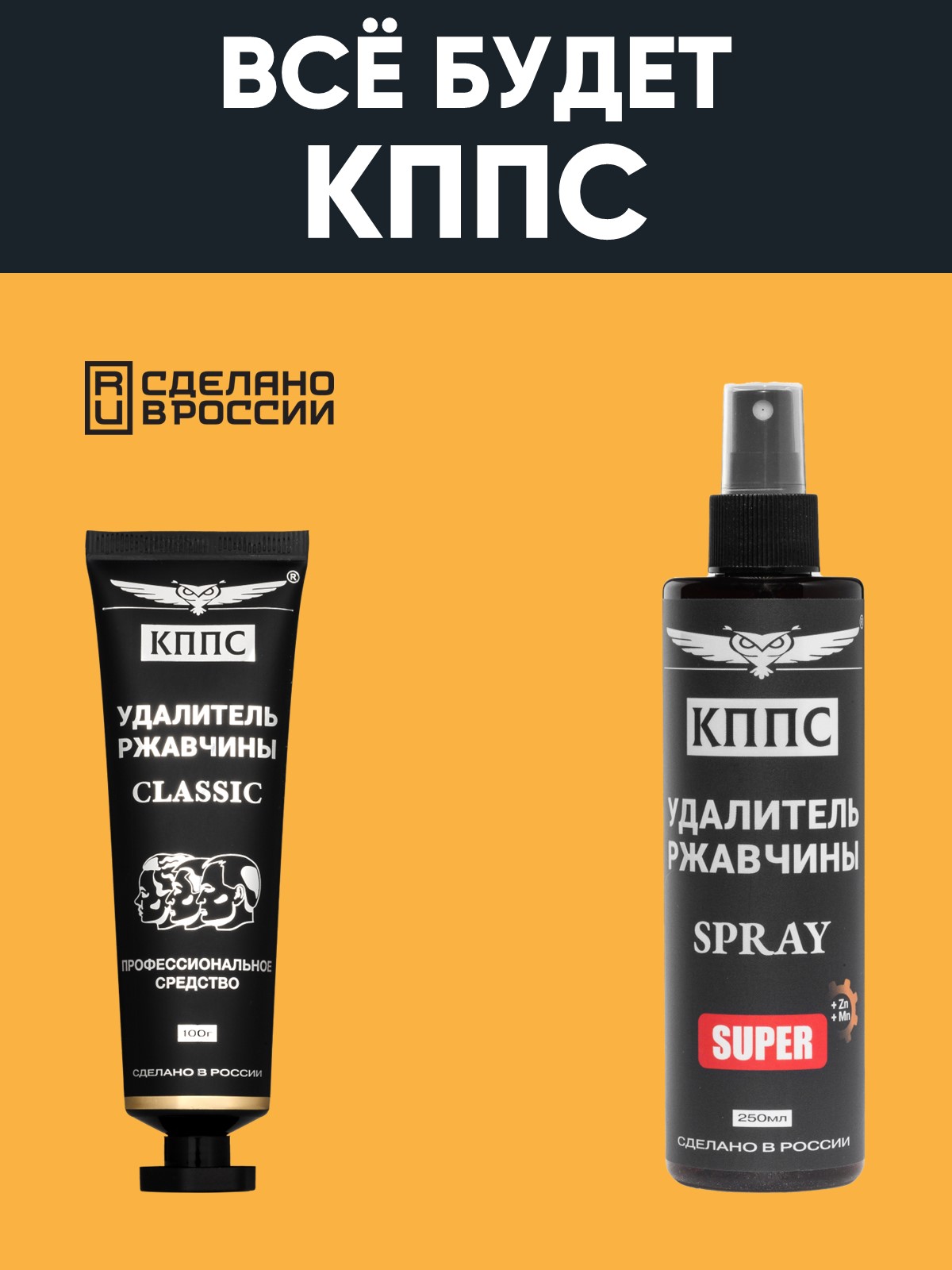 Технические характеристики Удалитель ржавчины КППС SPRAY SUPER (250мл) + Удалитель ржавчины КППС CLASSIC (100г)