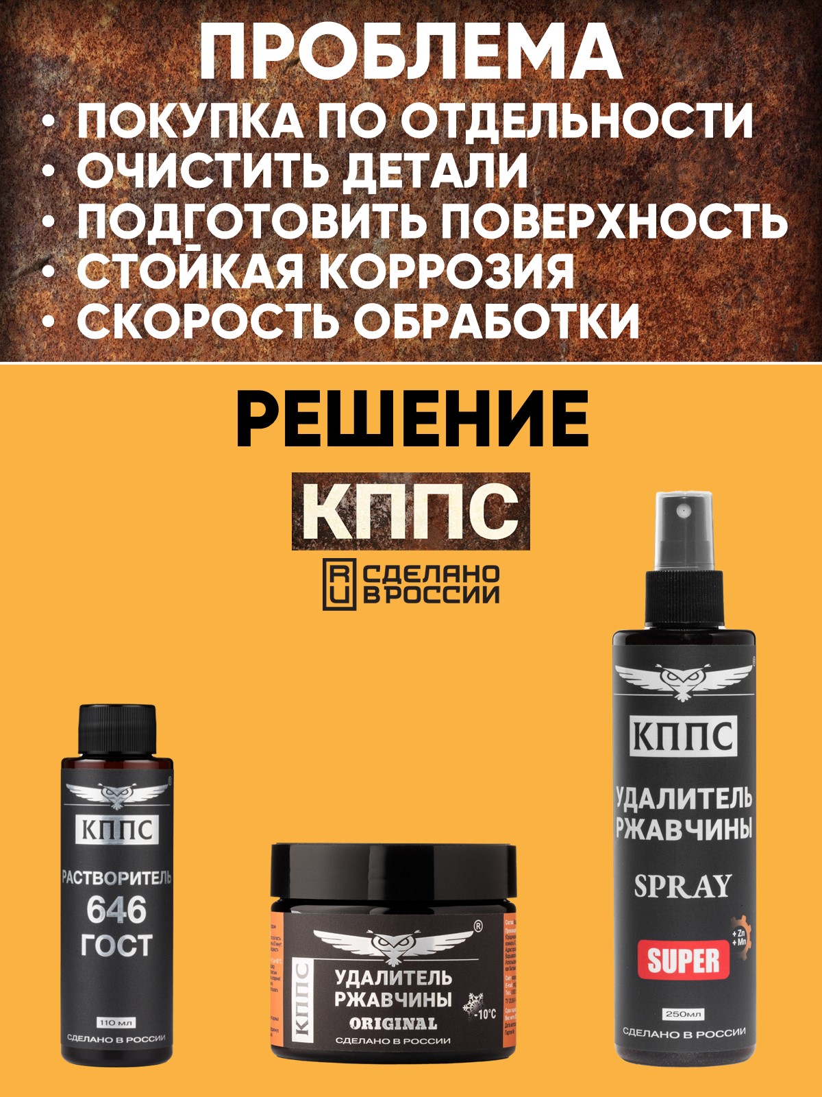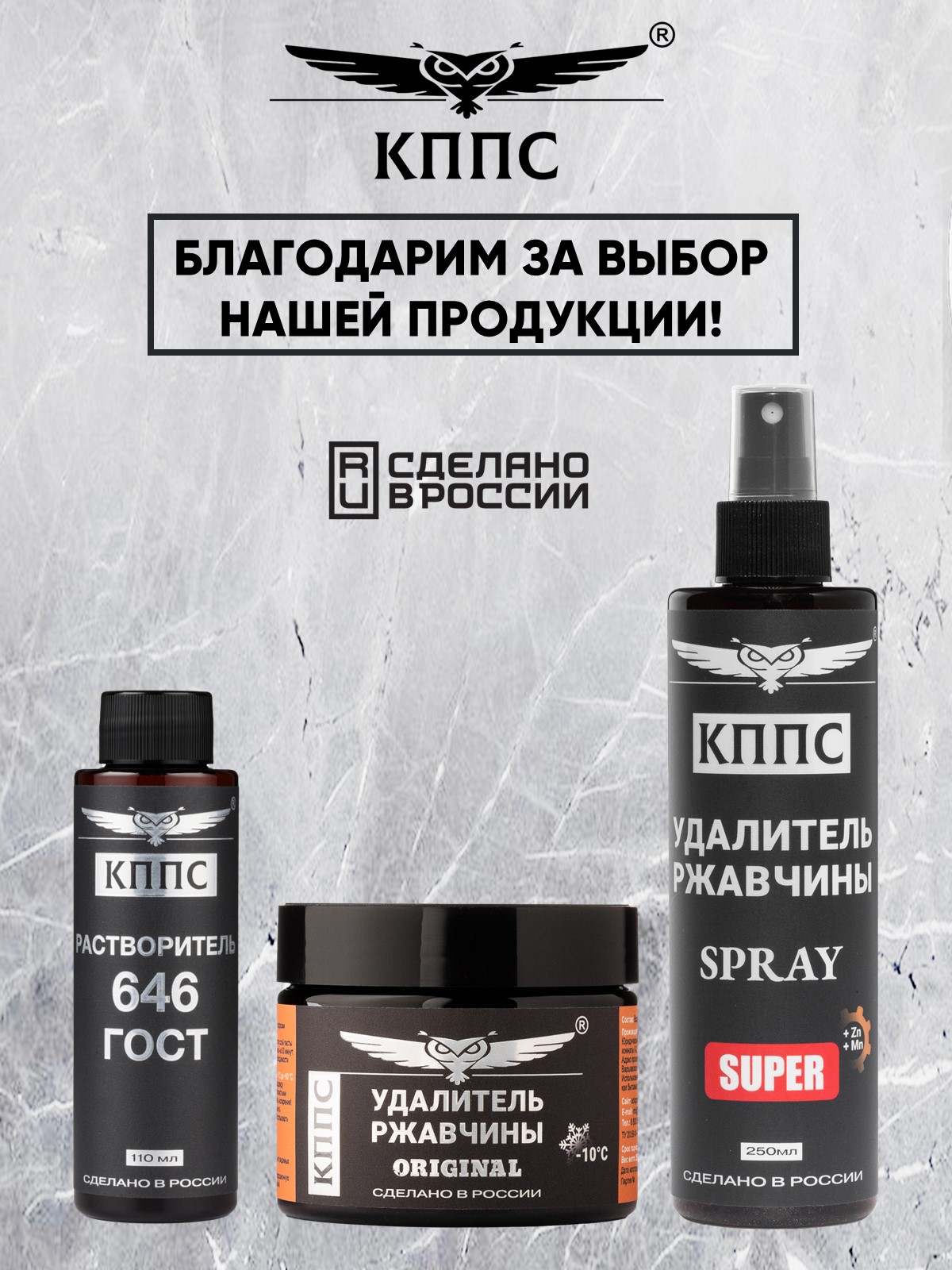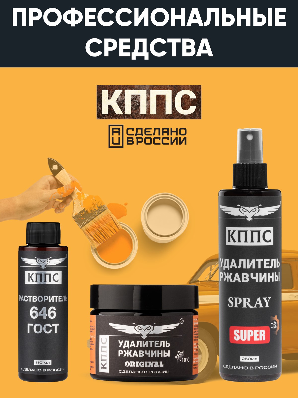 Удалитель ржавчины КППС SPRAY SUPER (250мл) + Удалитель ржавчины КППС ORIGINAL (250г) + Растворитель КППС 646 ГОСТ (110мл)