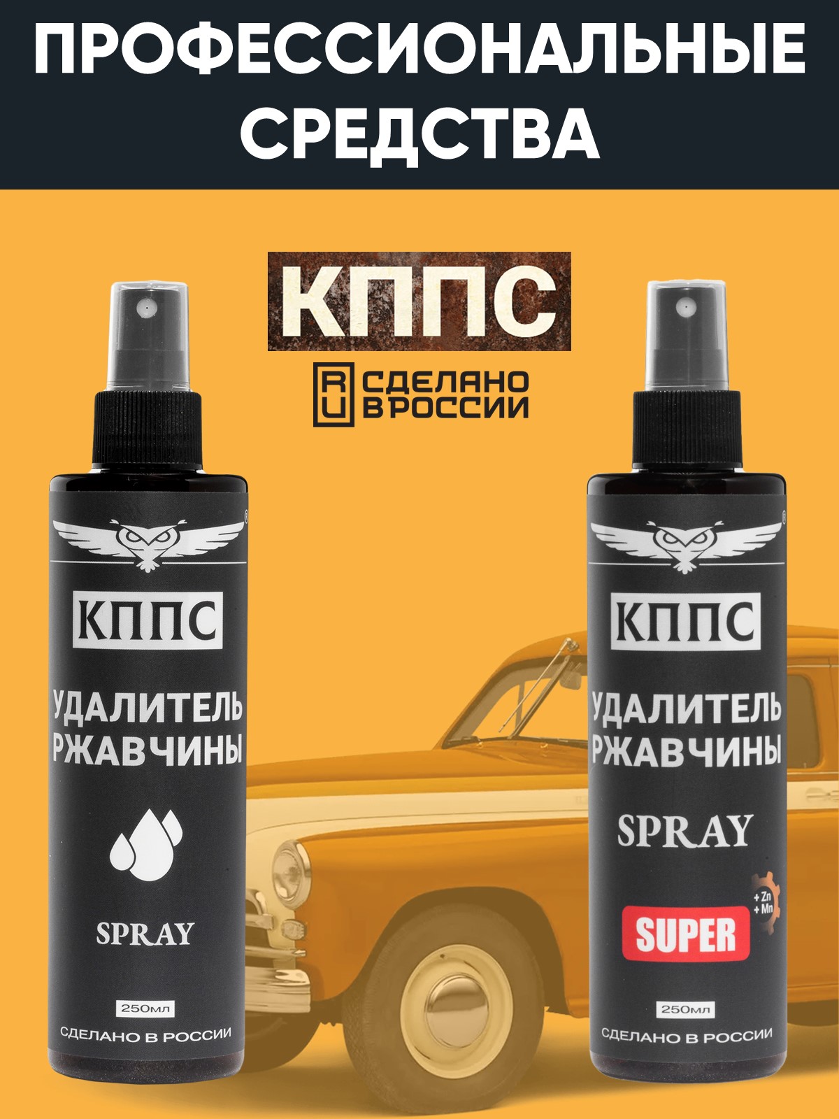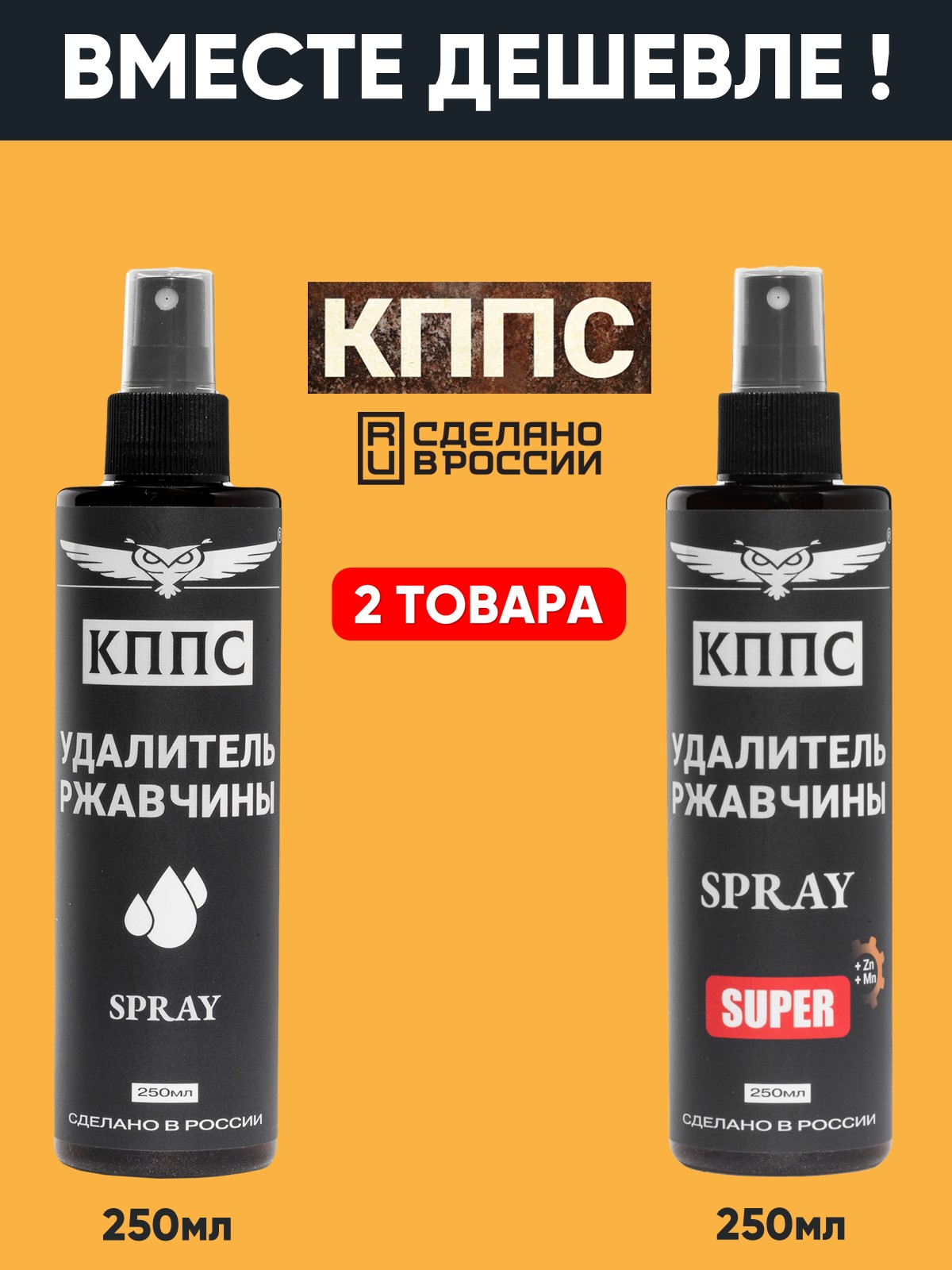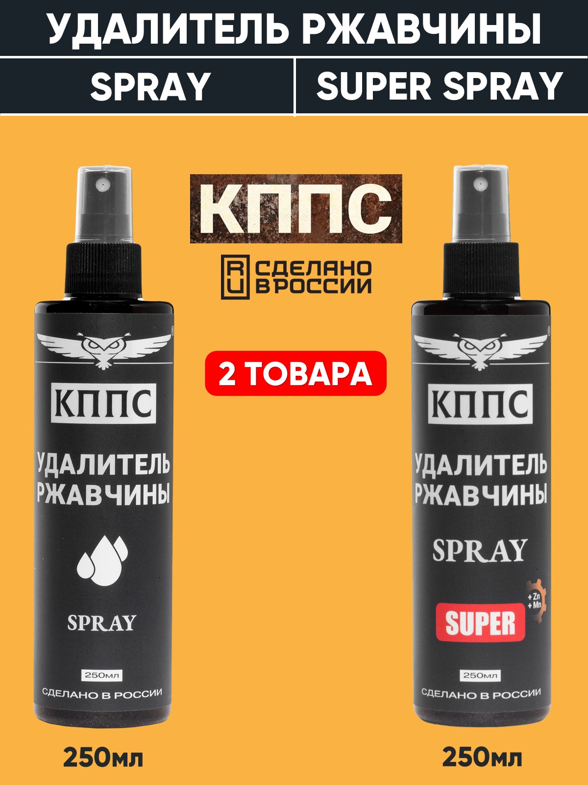 Технические характеристики Удалитель ржавчины КППС SPRAY SUPER (250мл) + Удалитель ржавчины КППС SPRAY (250мл)