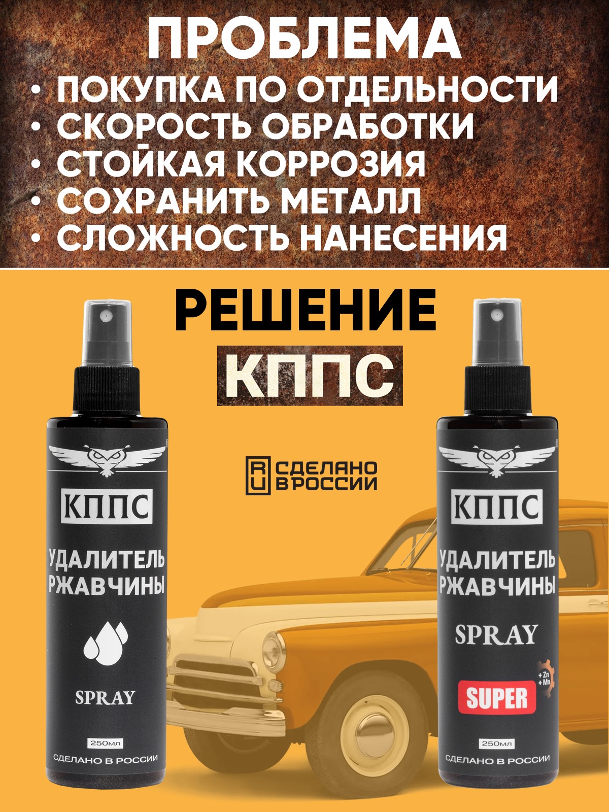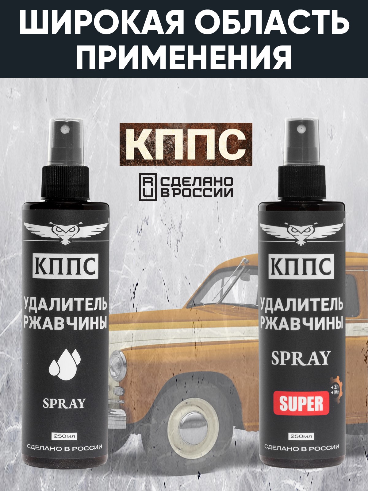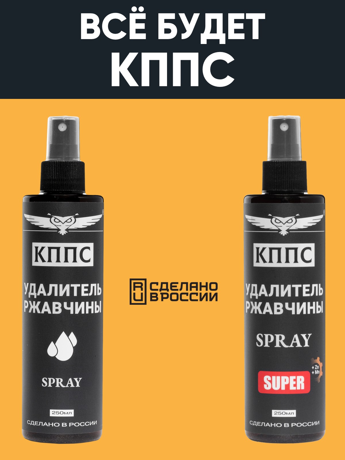 Технические характеристики Удалитель ржавчины КППС SPRAY SUPER (250мл) + Удалитель ржавчины КППС SPRAY (250мл)