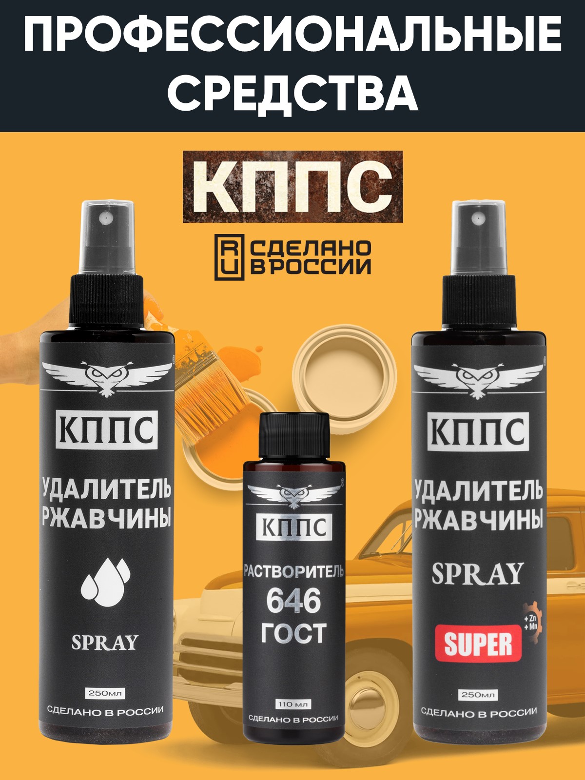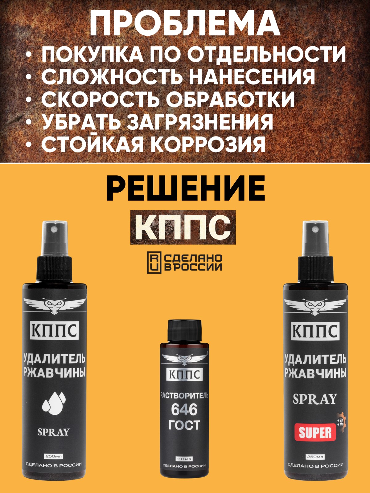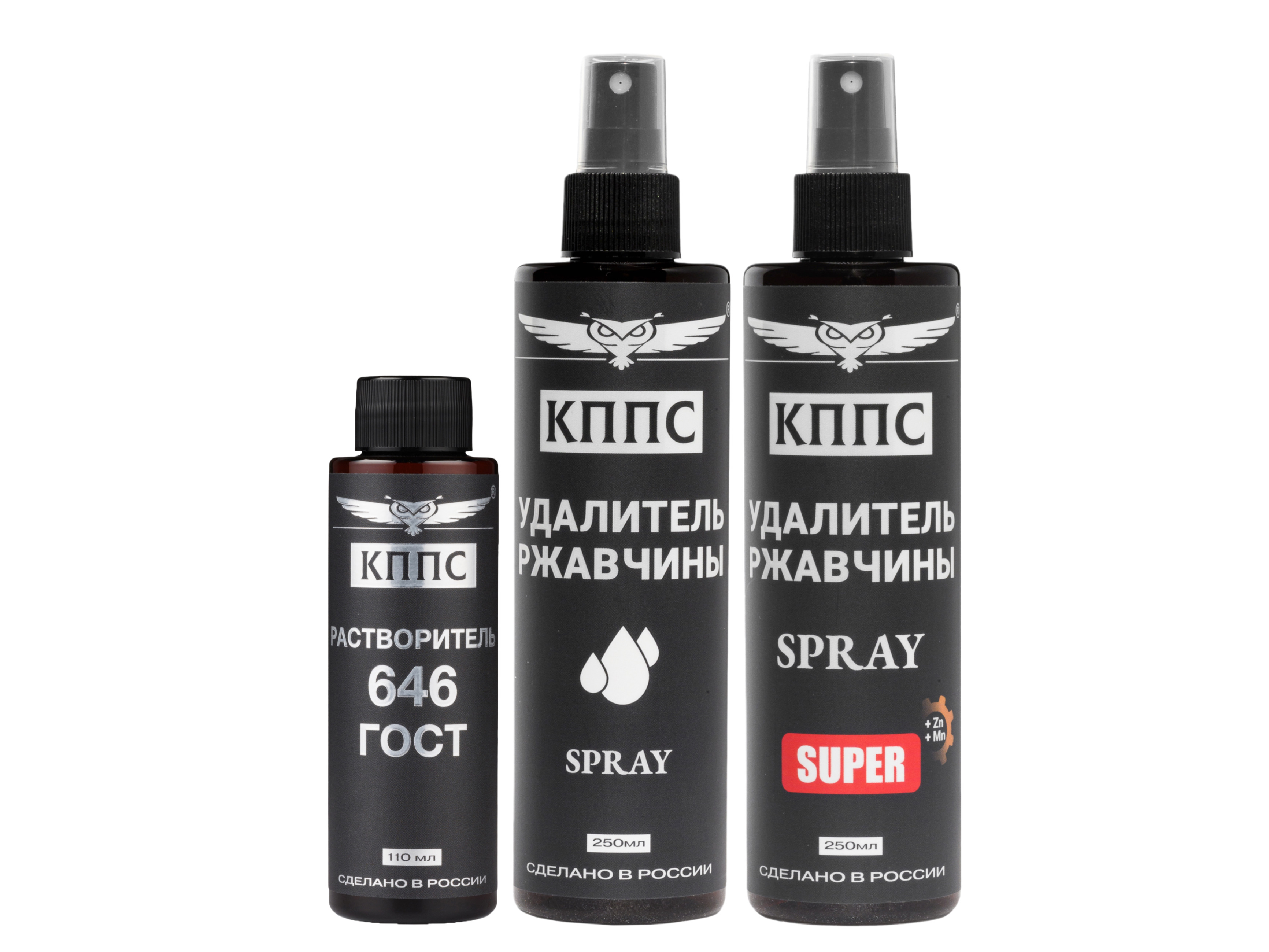 Технические характеристики Удалитель ржавчины КППС SPRAY SUPER (250мл) + Удалитель ржавчины КППС SPRAY (250мл) + Растворитель КППС 646 ГОСТ (110мл)