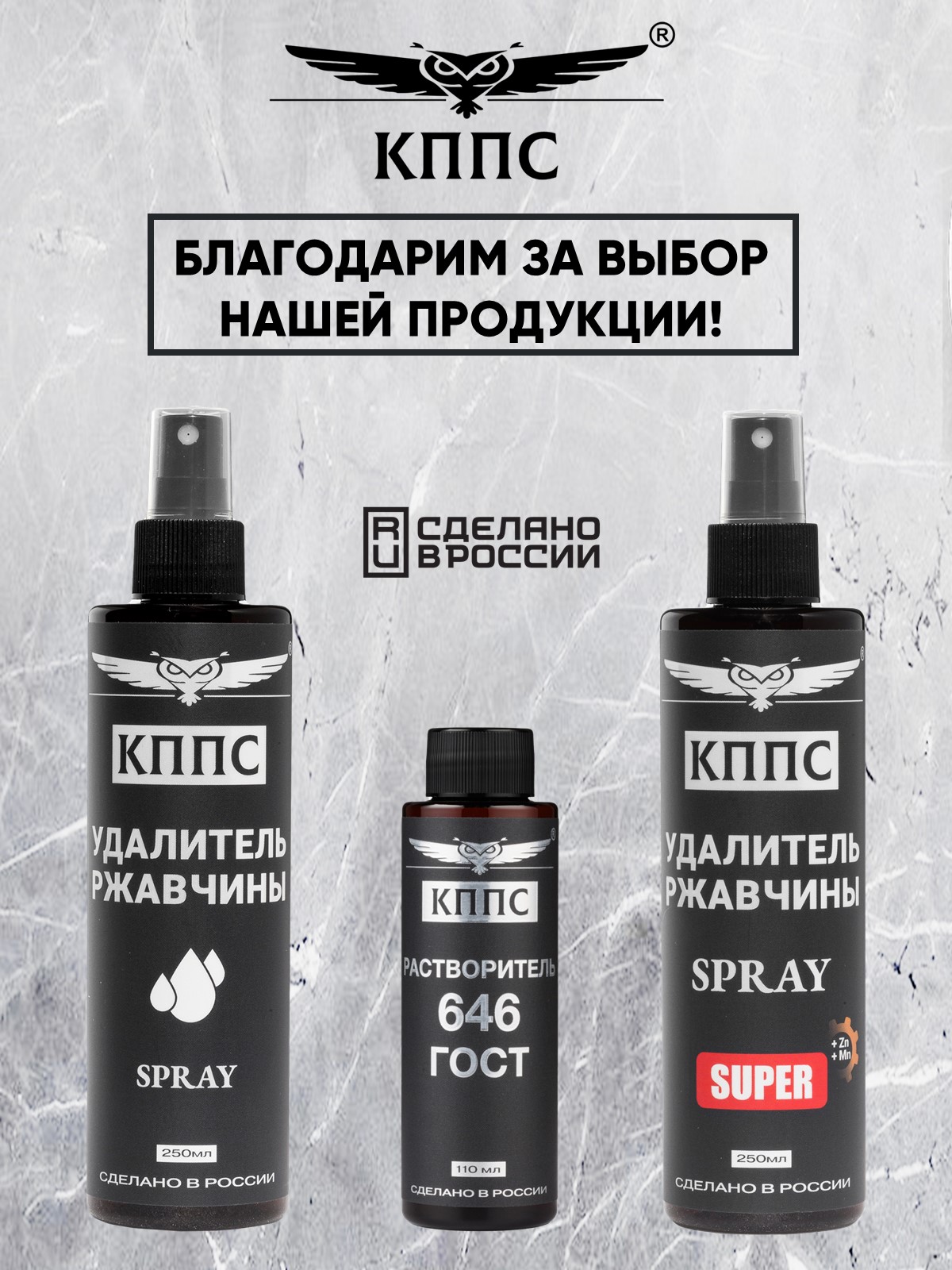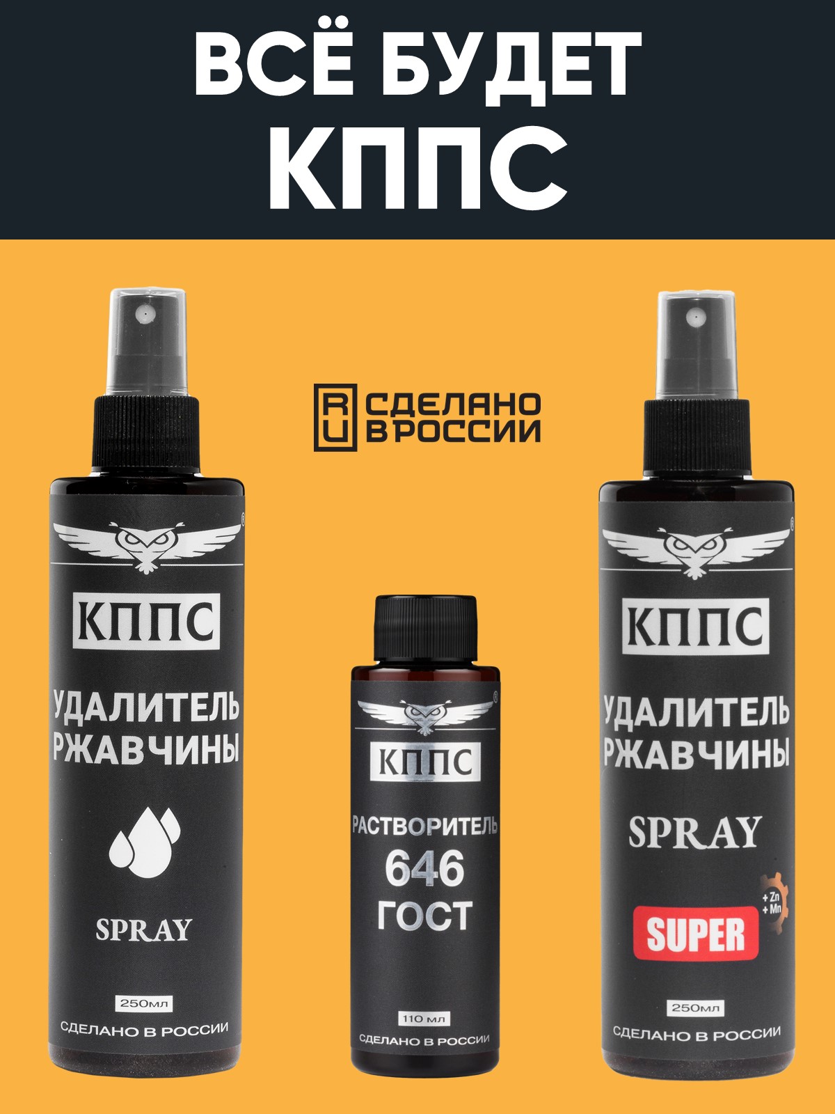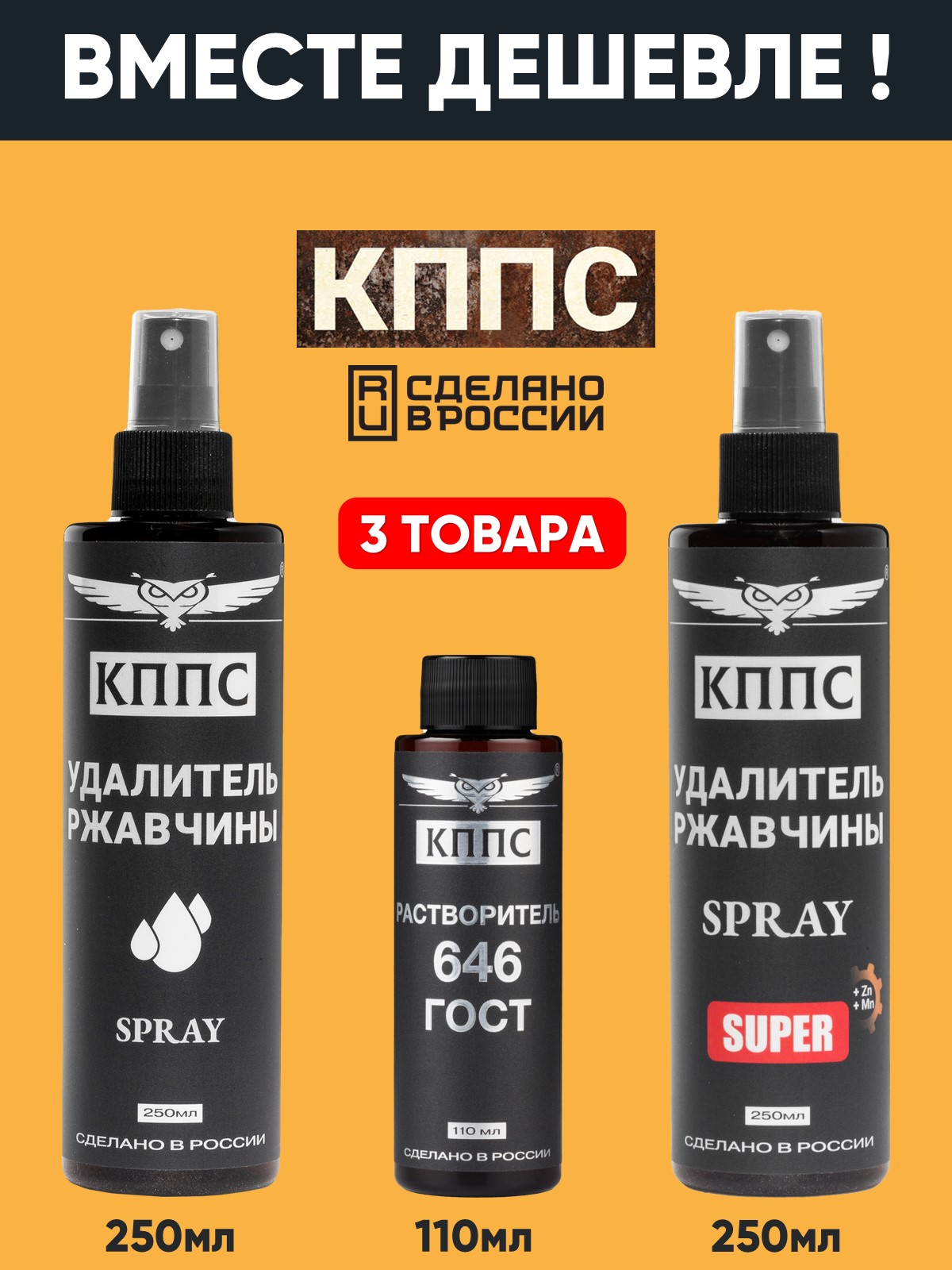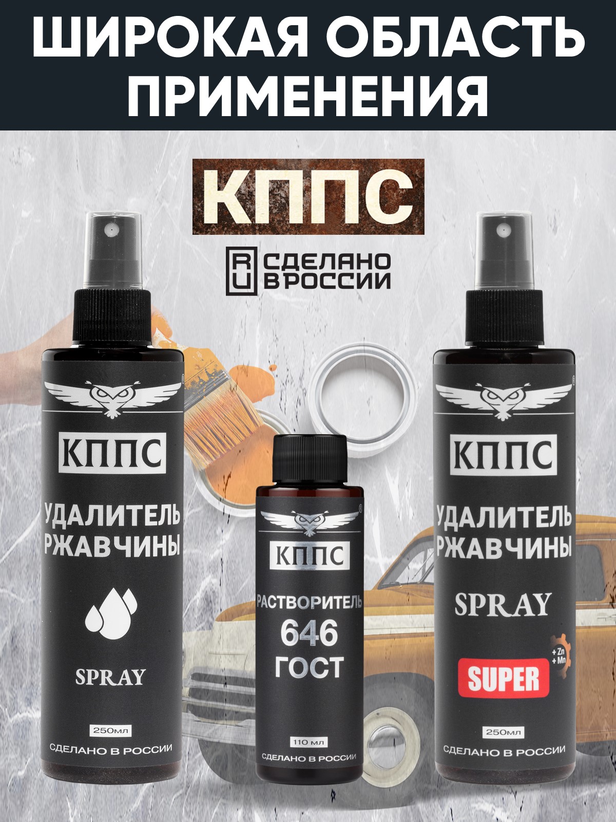 Технические характеристики Удалитель ржавчины КППС SPRAY SUPER (250мл) + Удалитель ржавчины КППС SPRAY (250мл) + Растворитель КППС 646 ГОСТ (110мл)
