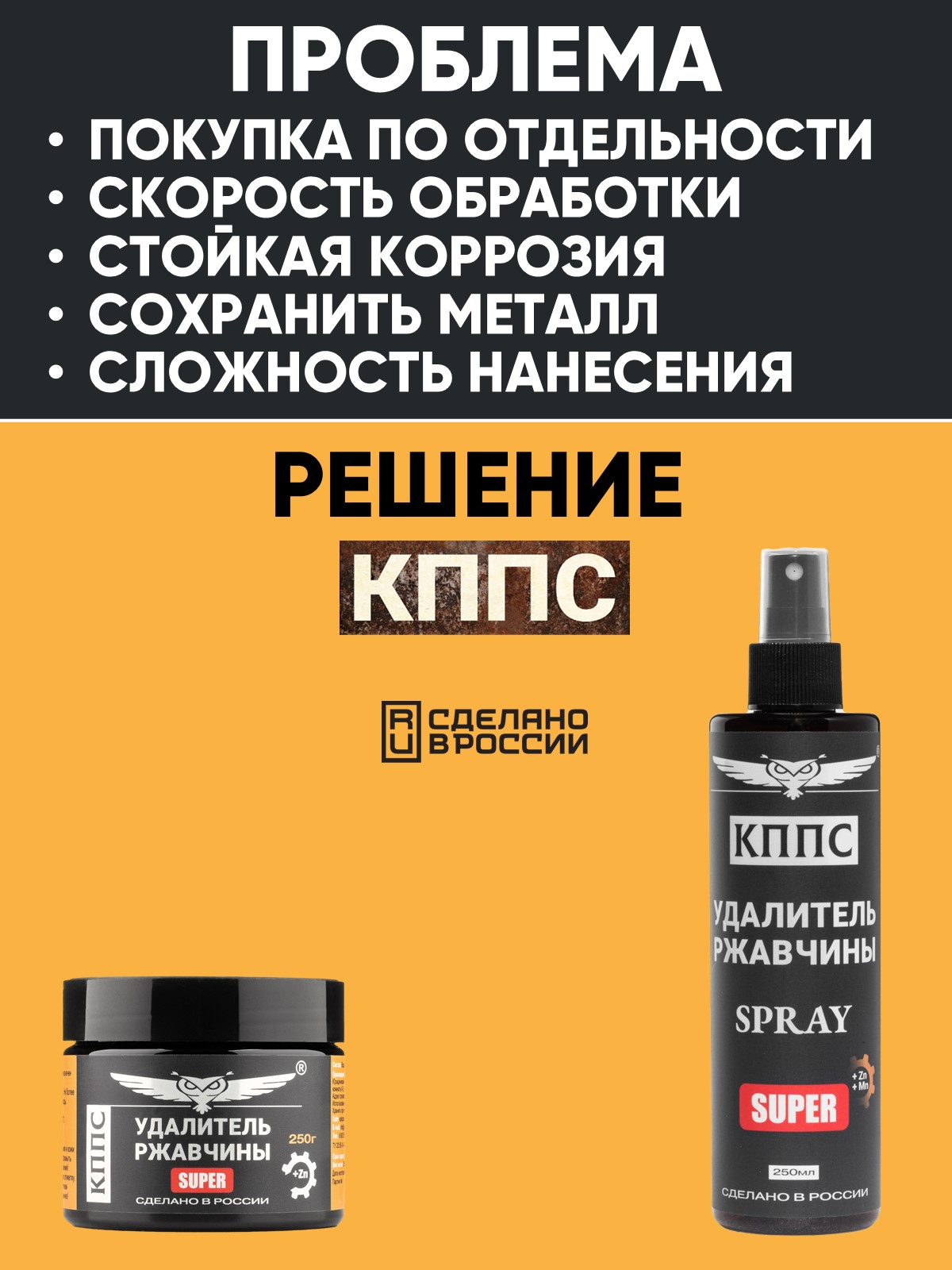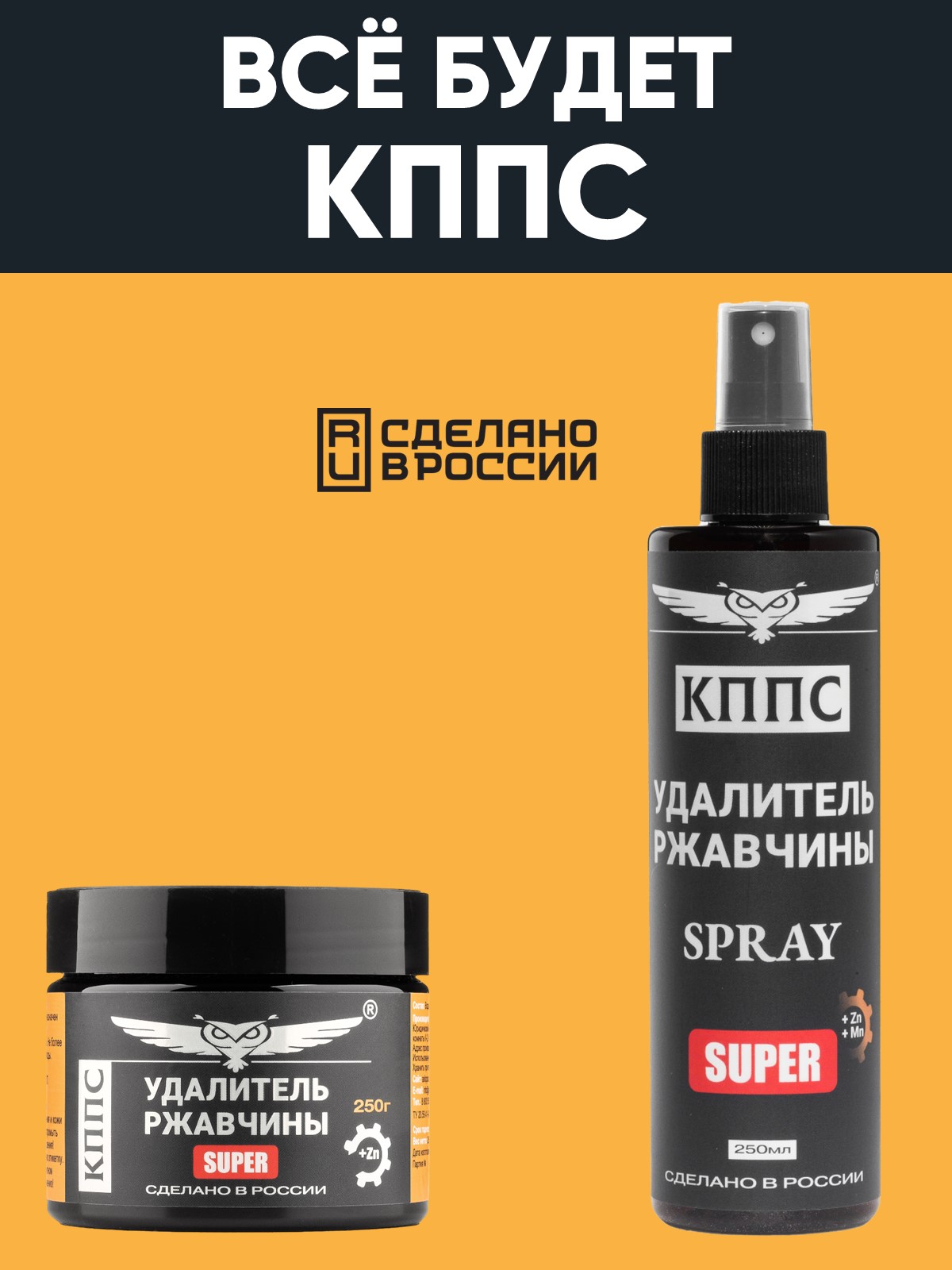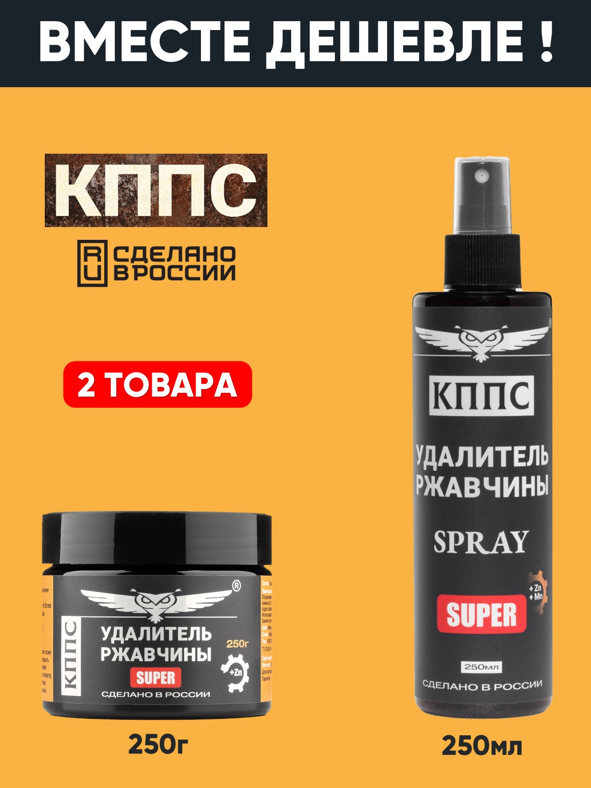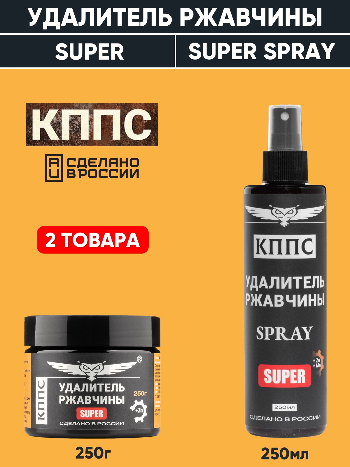 Удалитель ржавчины КППС SPRAY SUPER (250мл) + Удалитель ржавчины КППС SUPER (250г)