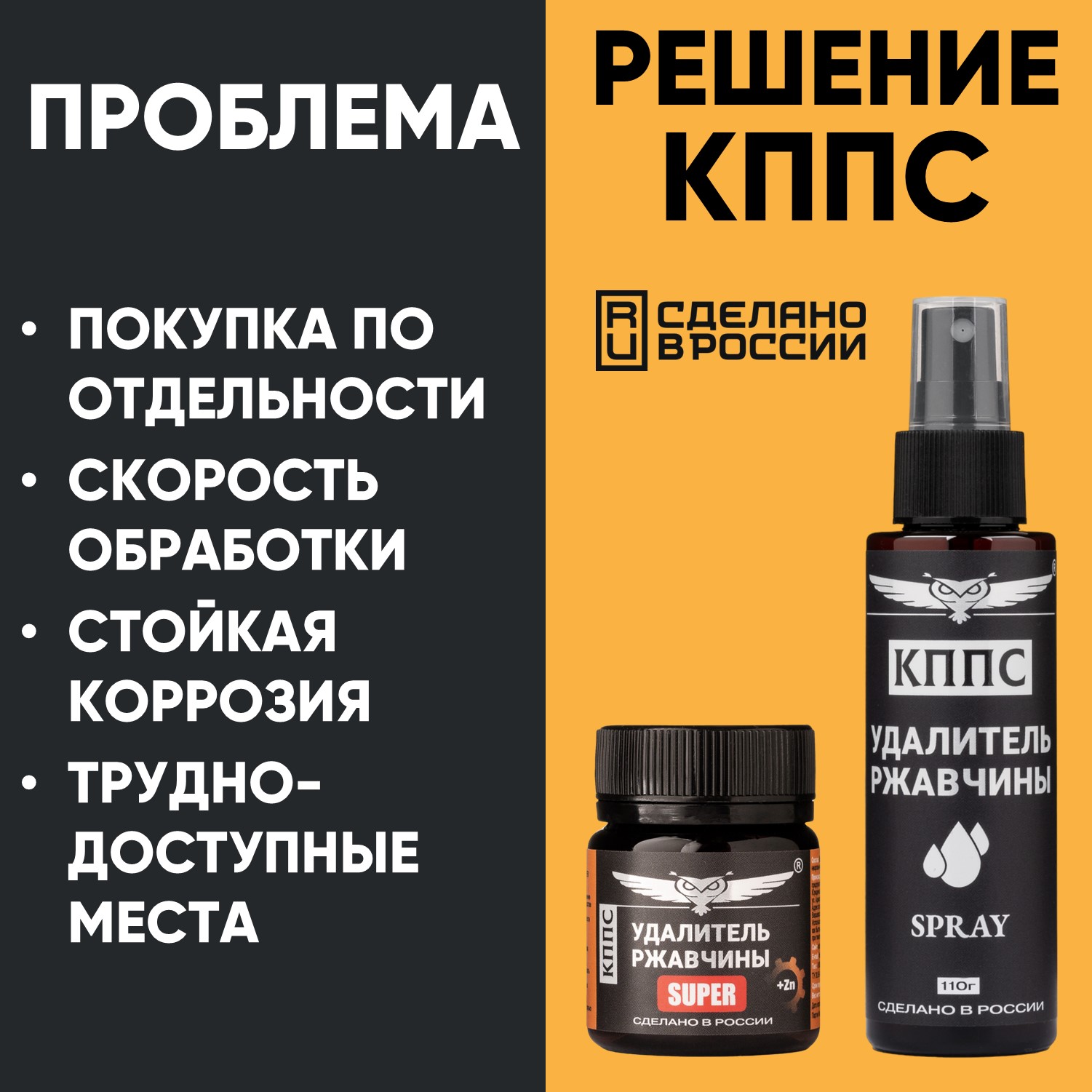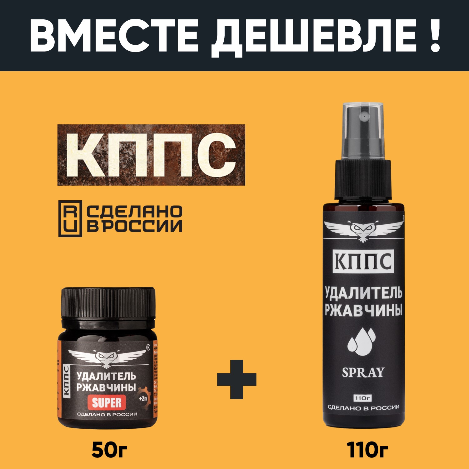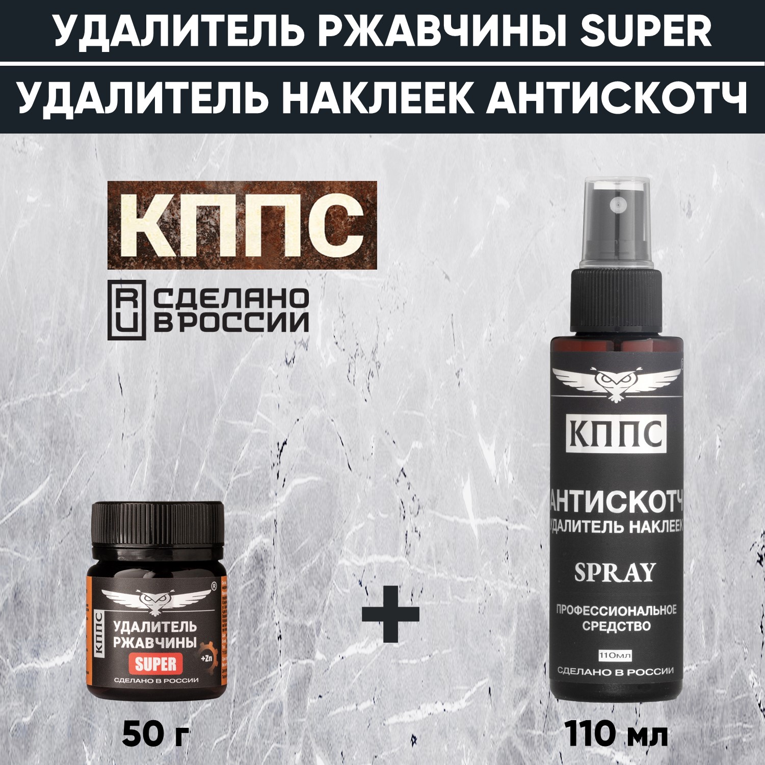 Технические характеристики Удалитель ржавчины КППС SUPER (50г) + АНТИСКОТЧ удалитель наклеек КППС SPRAY (110 мл)