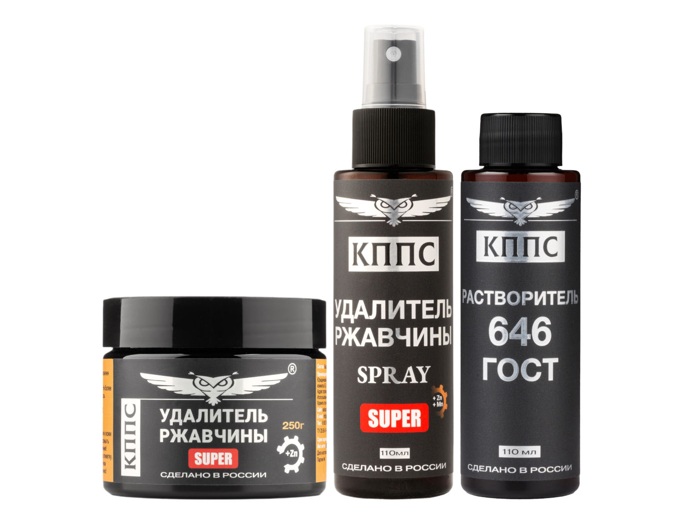 Удалитель ржавчины КППС Super Spray 110мл + Удалитель ржавчины КППС Super (250г) + Растворитель КППС 646 ГОСТ (110мл)