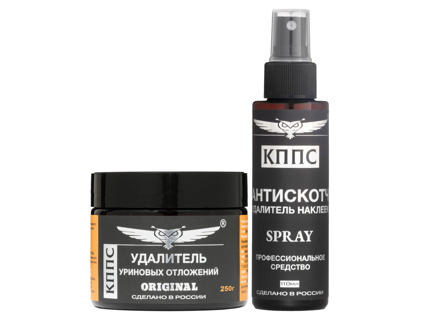 Технические характеристики Удалитель уриновых отложений КППС ORIGINAL (250г) + Антискотч Удалитель наклеек КППС (110мл)
