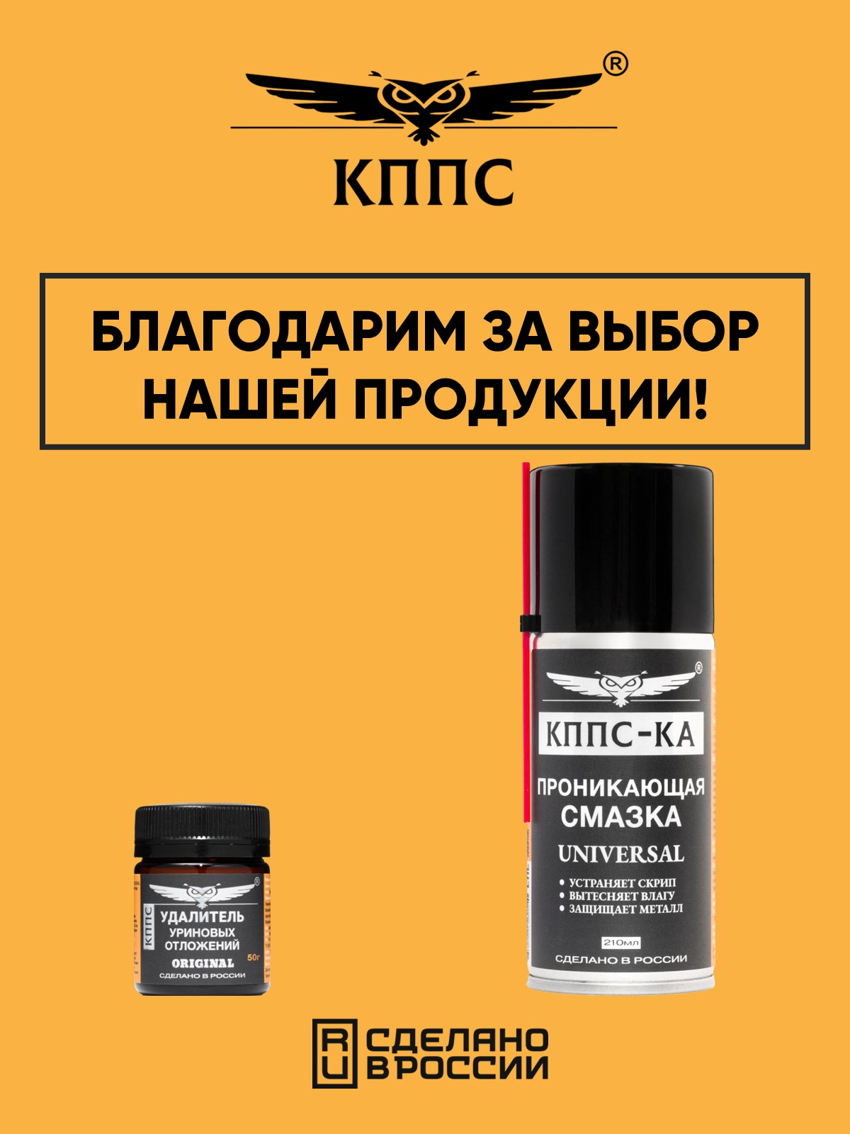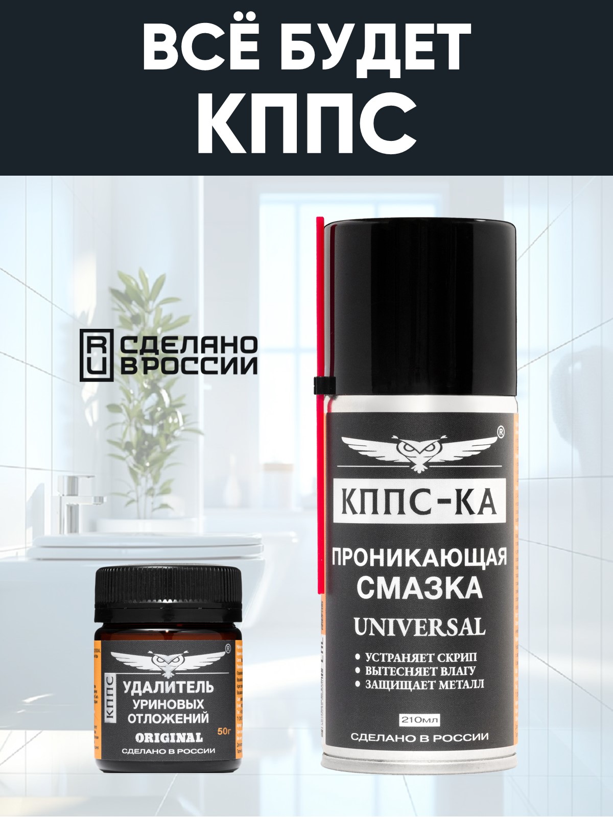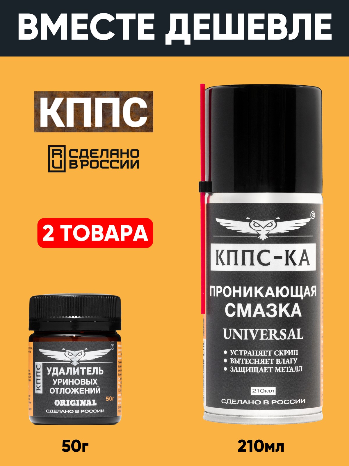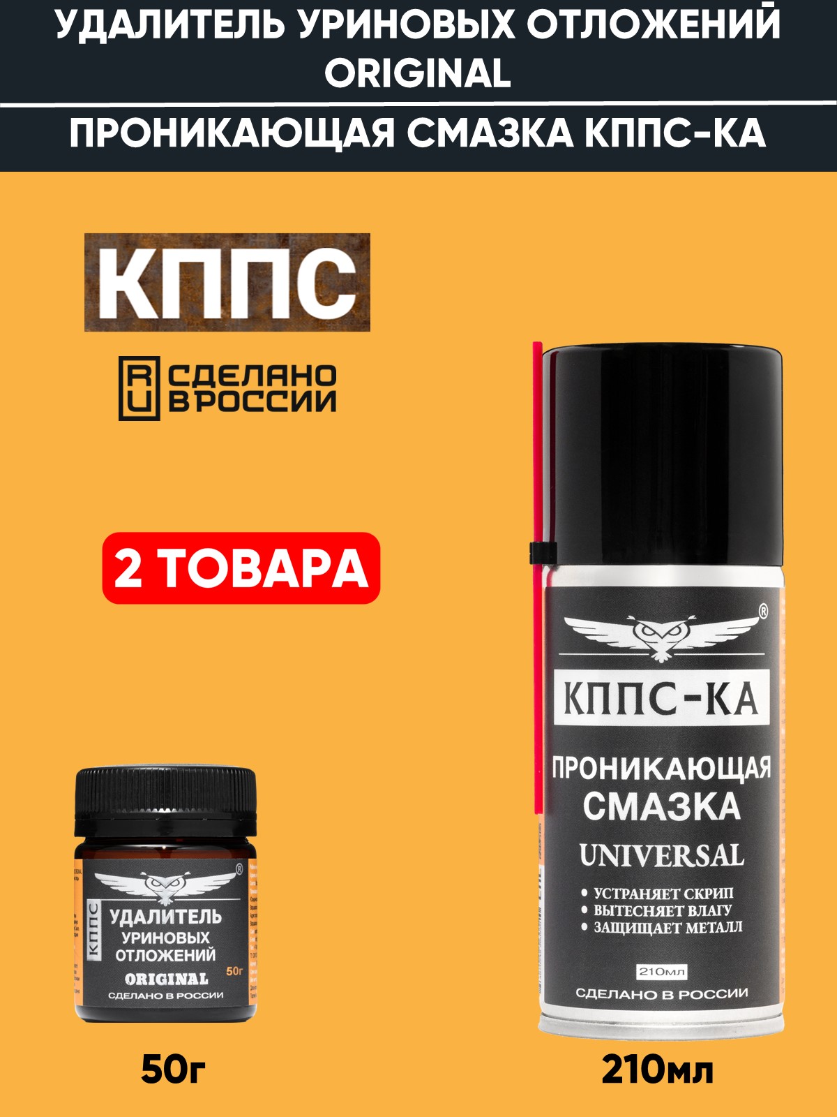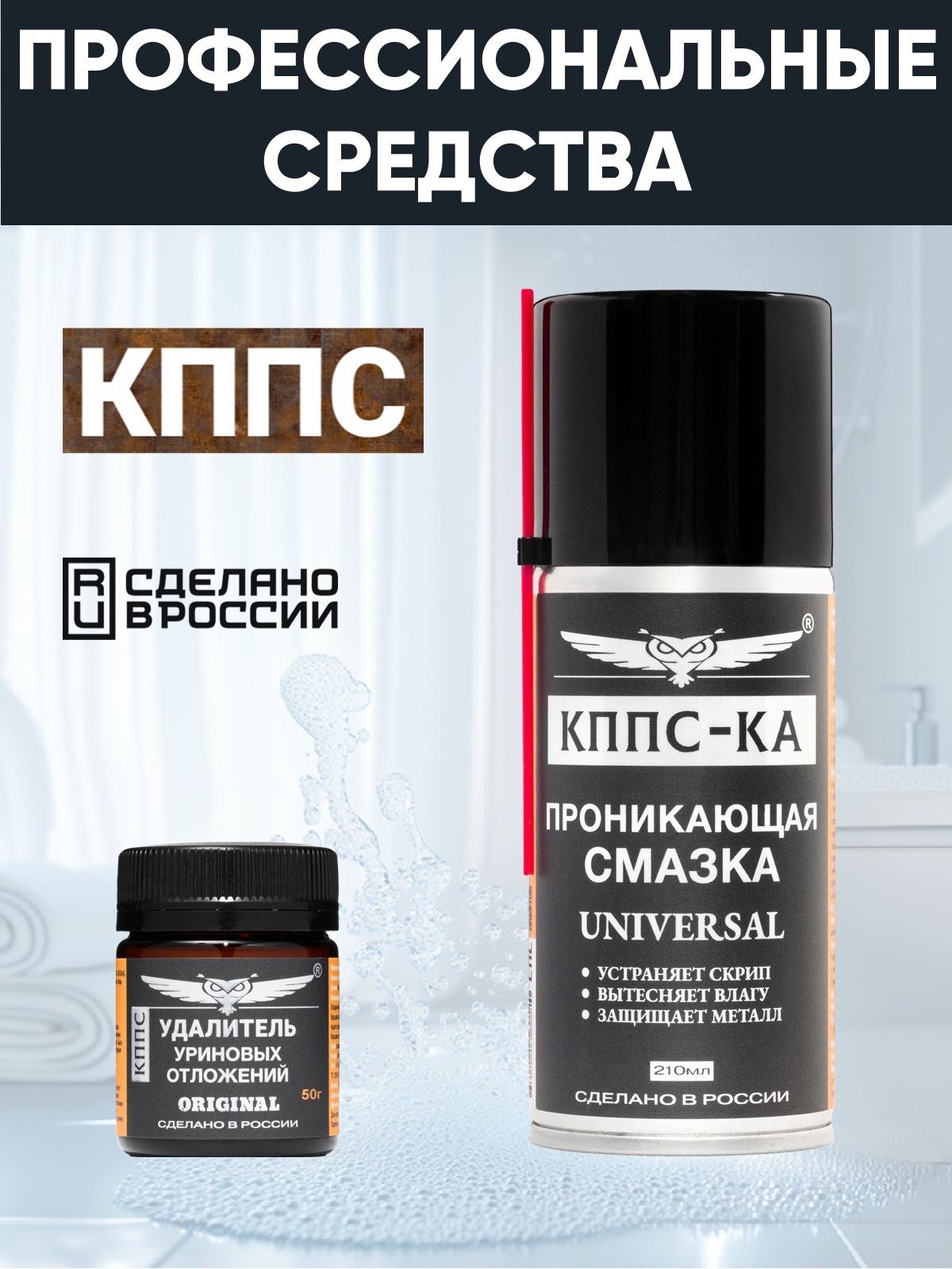 Технические характеристики Удалитель уриновых отложений КППС ORIGINAL (50г) + Проникающая смазка КППС-КА (210мл)
