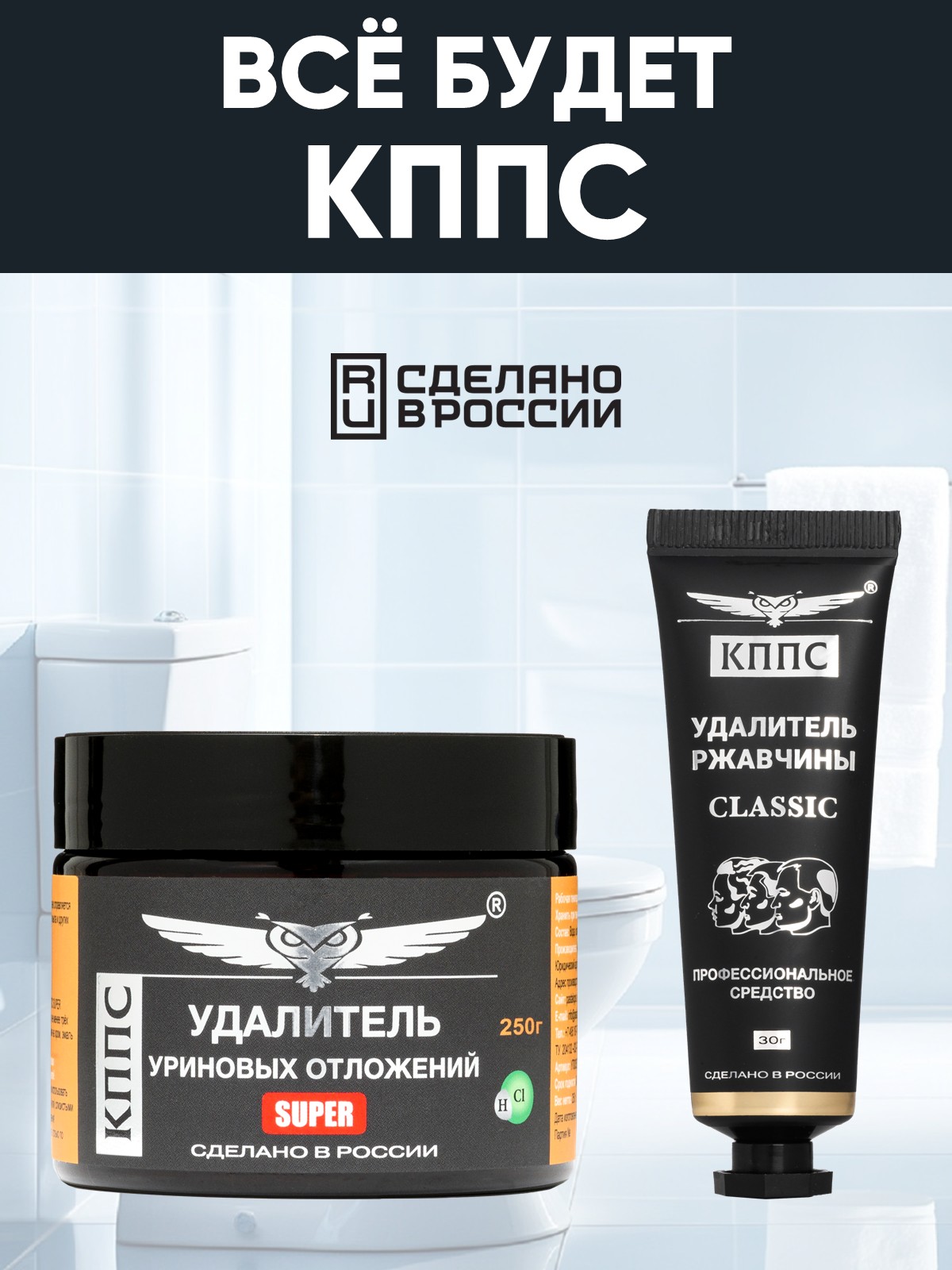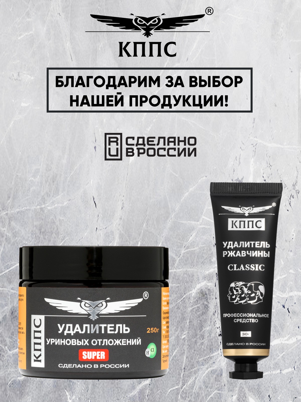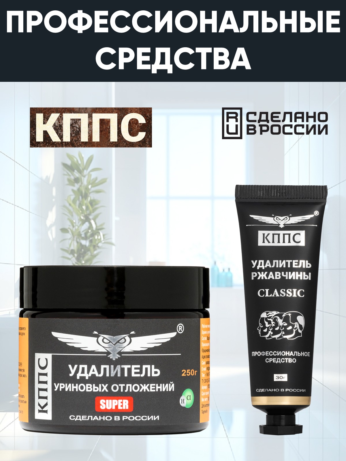Технические характеристики Удалитель уриновых отложений КППС SUPER (250г) + Удалитель ржавчины КППС CLASSIC (30г)