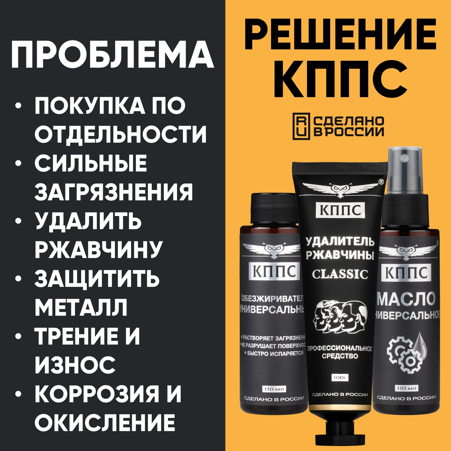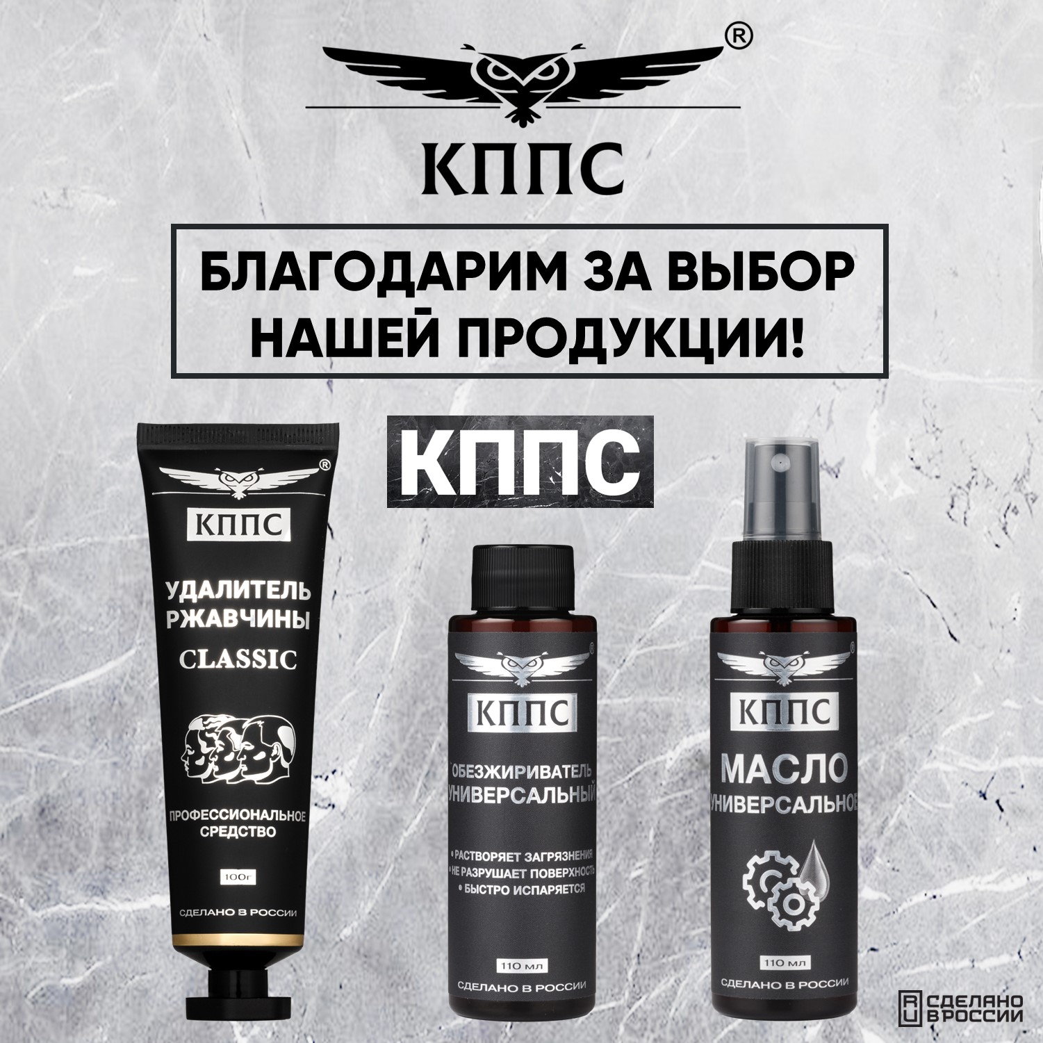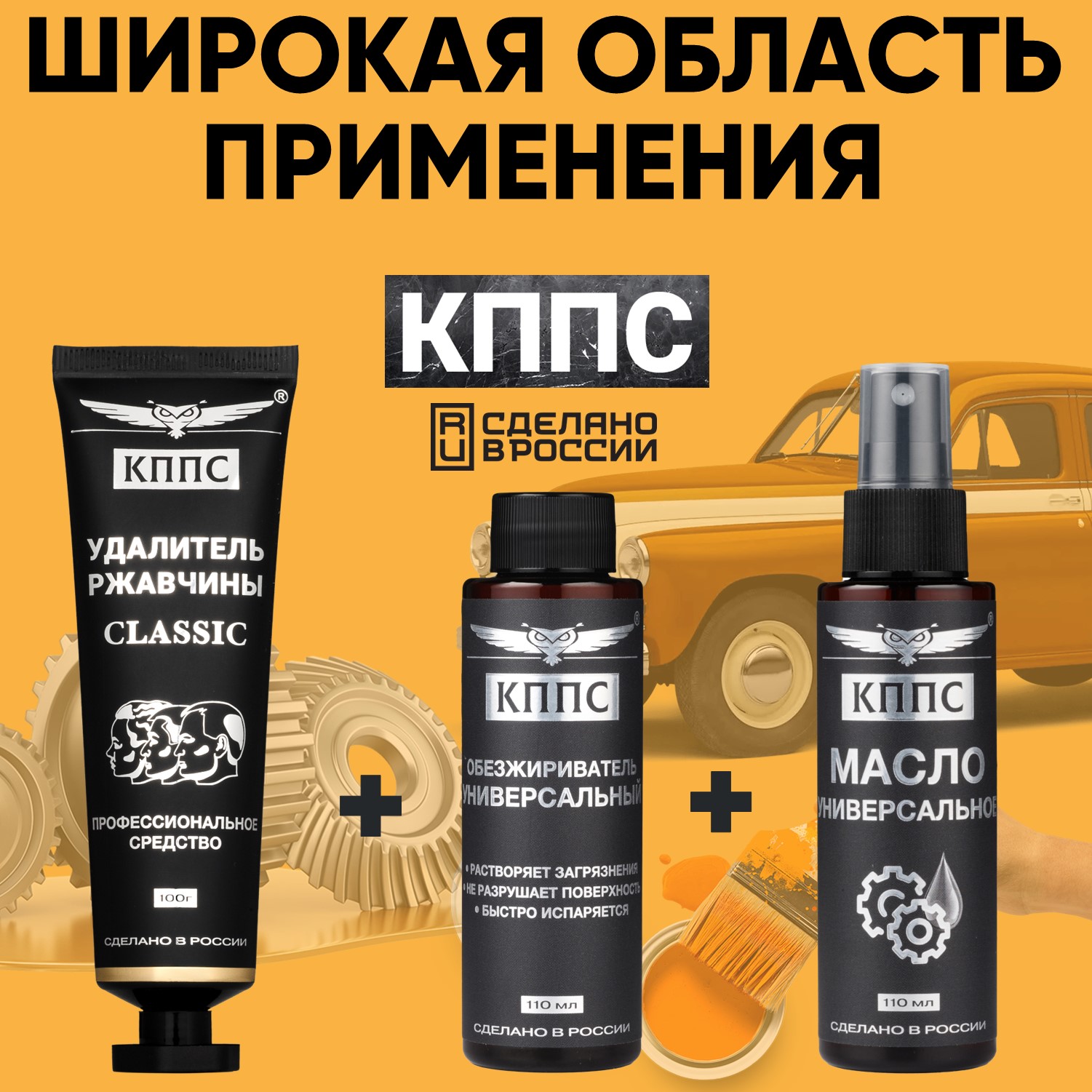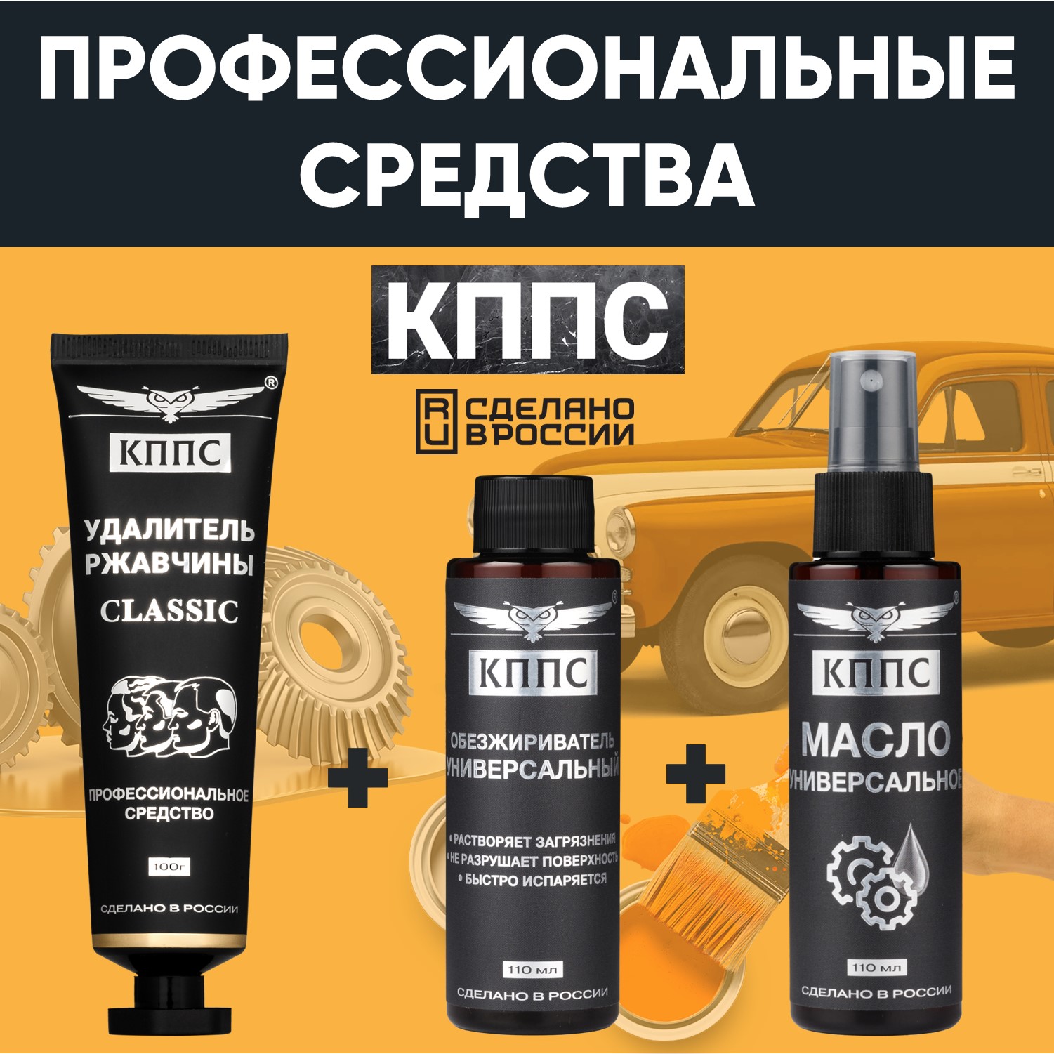 Универсальное масло КППС (спрей 110мл) + Удалитель ржавчины КППС CLASSIC (100г) + Универсальный обезжириватель КППС (110мл)