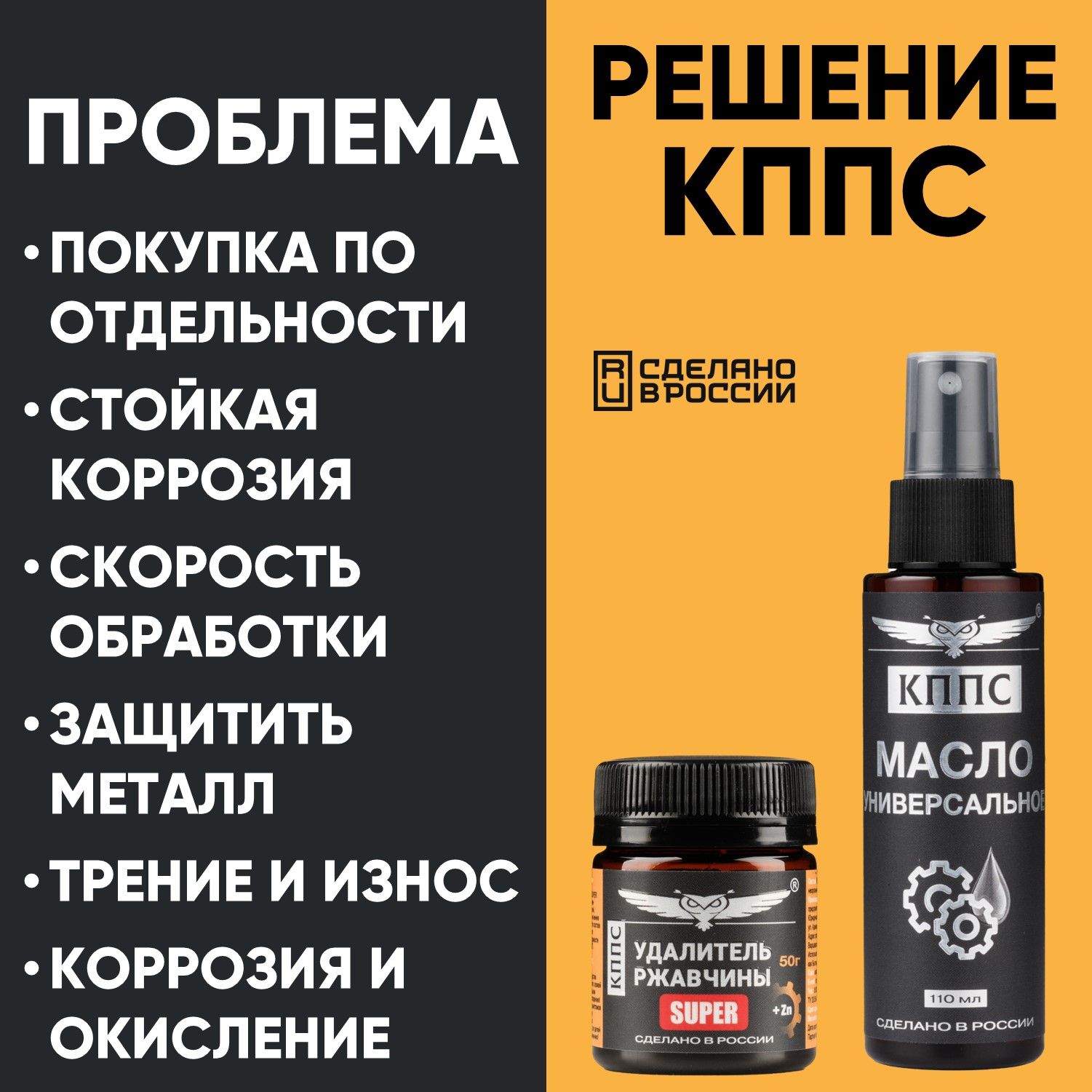 Технические характеристики Универсальное масло КППС (спрей 110мл) + Удалитель ржавчины КППС SUPER (50г)