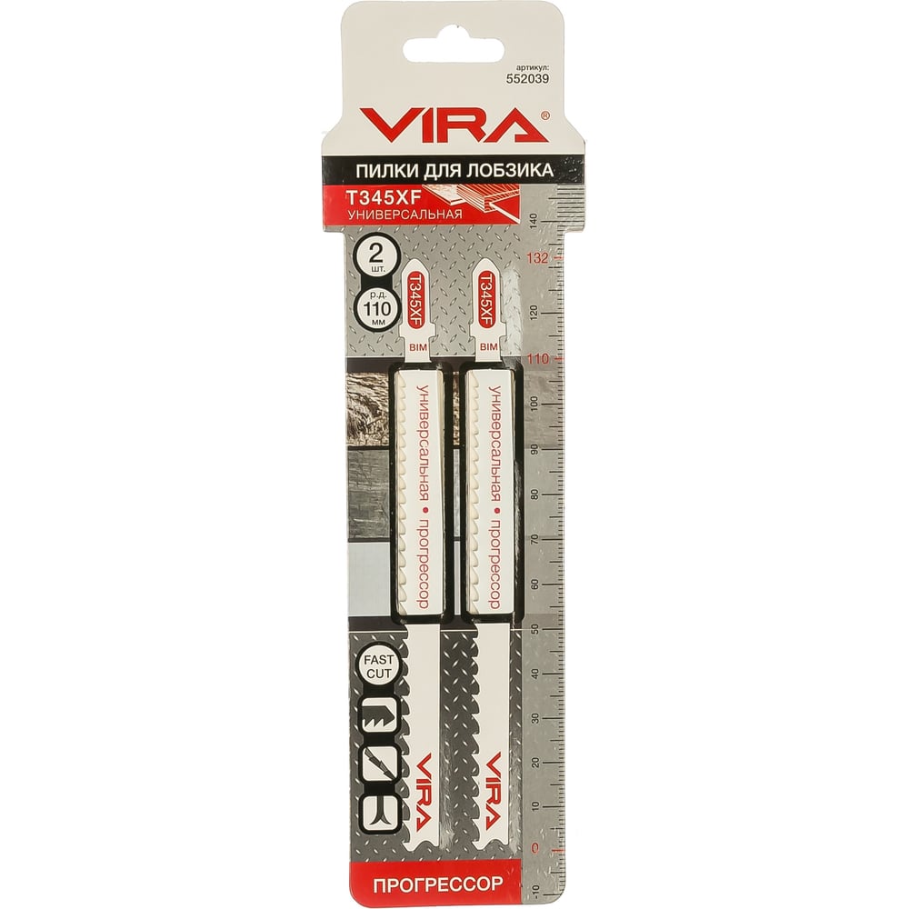 Пилки для лобзика RAGE by VIRA 2шт. по металлу, древесине и композитам T345XF. Прогрессор. Зубья имеют прогрессивный шаг 2,4 – 5,0 мм, волнистое полотно, фрезерованные разведенные зубья. Разводка зубьев обеспечивает быстрый рез. Рабочая длина – 110 мм. Пилки подходят для распиливания листовой стали до 10 мм, труб, профилей до 30 мм, алюминия до 20 мм, мягких металлов до 30 мм, полимерных материалов до 40 мм, древесины. Изготовлены из биметаллической стали BIM. Благодаря глубокому совмещению быстрорежущей HSS и высокоуглеродистой HCS сталей, биметалл имеет повышенную эластичность, износостойкость при сохранении высоких режущих качеств. Этот же материал используют для изготовления полотен для промышленных станковых пил. Пилка имеет T- образный хвостовик, подходящий к большинству современных лобзиков. Рекомендуем как универсальные пилки для профессионалов при распиливании как металлов, так и древесины средней толщины.