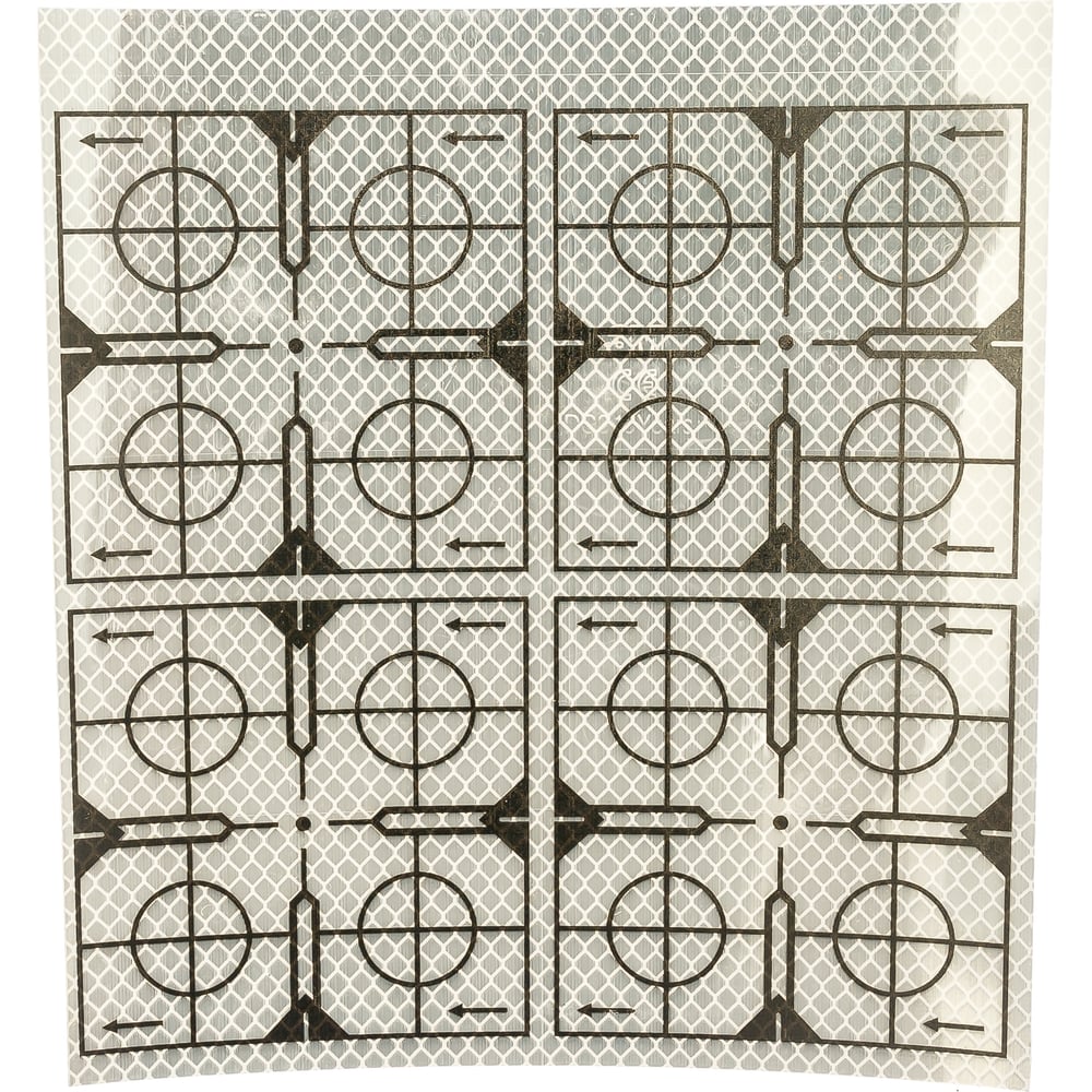 Отражатель пленочный RGK служит для получения точных измерений с помощью электронных тахеометров и лазерных дальномеров. Представляет собой самоклеющую пленку со световозвращающей поверхностью и специальной разметкой. Параметры: Размер (ДхШ) - 90х90 мм; Количество - 4 шт.