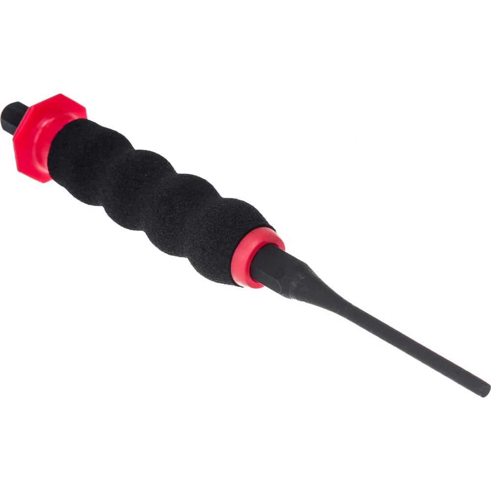 Выколотка с протектором (4х180 мм) KING TONY 76404-07G - это слесарный инструмент для извлечения штифтов и шплинтов. В качестве материала выколотки используется закаленный сплав (хром, ванадий, добавка молибдена). Мягкое покрытие пластиковой рукоятки (резина) снижает амортизацию при работе. Диаметр бойка - 4 мм.