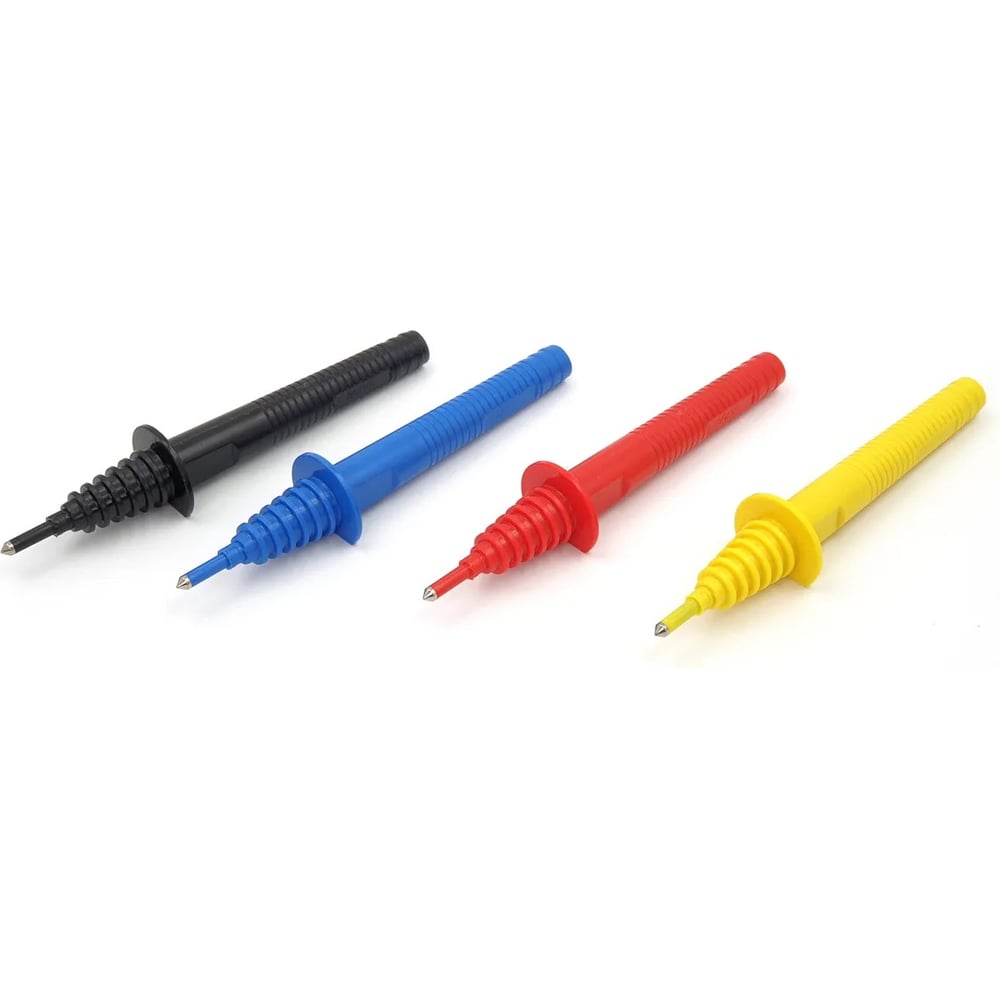 Комплект зондов острых с разъёмами "банан" 4 шт SONEL WASON4ZRU используется со многими моделями приборов при измерении различных параметров. Используя зонд, можно подключиться как к открытым токоведущим частям, так и к линии через стандартную розетку. Для предотвращения проскальзывания и попадания на открытые части электроустановки на рукоятке зонда имеется специальный упор. С одной стороны упор имеет срез, необходимый для подключения двух близко расположенных зондов (подключения к контактам розетки). Острое окончание зонда позволяет прокалывать оксидную плёнку, загрязнения, ржавчину, что увеличивает точность проведенного измерения. С обратной стороны от острия зонда расположен стандартный разъём типа «банан» 4 мм для подключения измерительных проводов, зажимов Крокодил изолированных типа K01, К02.