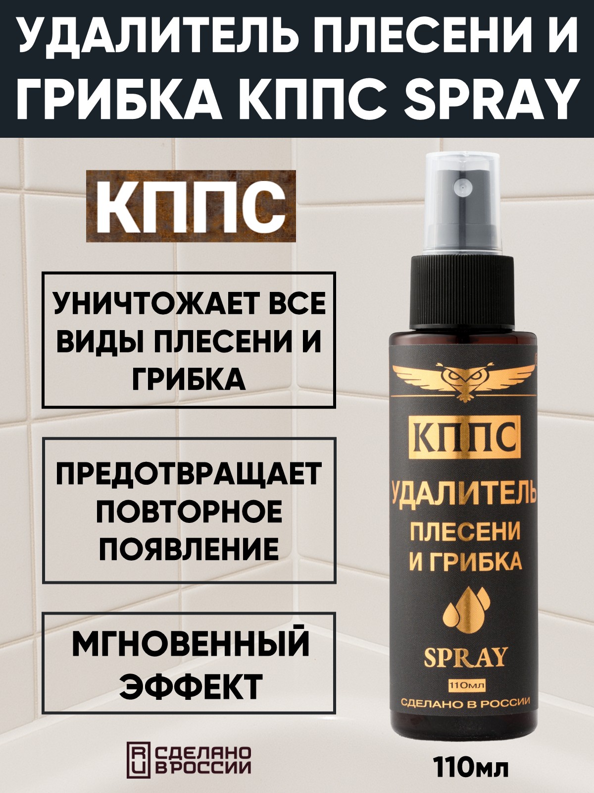 Удалитель плесени и грибка КППС SPRAY — мощное средство для борьбы с чёрными пятнами и неприятным запахом плесени. Продукт глубоко проникает в структуру поверхности, уничтожая споры плесени и грибка даже в труднодоступных местах. КППС SPRAY не только удаляет видимые следы плесени, но и предотвращает её дальнейшее распространение, что особенно важно для поддержания чистоты и здоровья в доме.