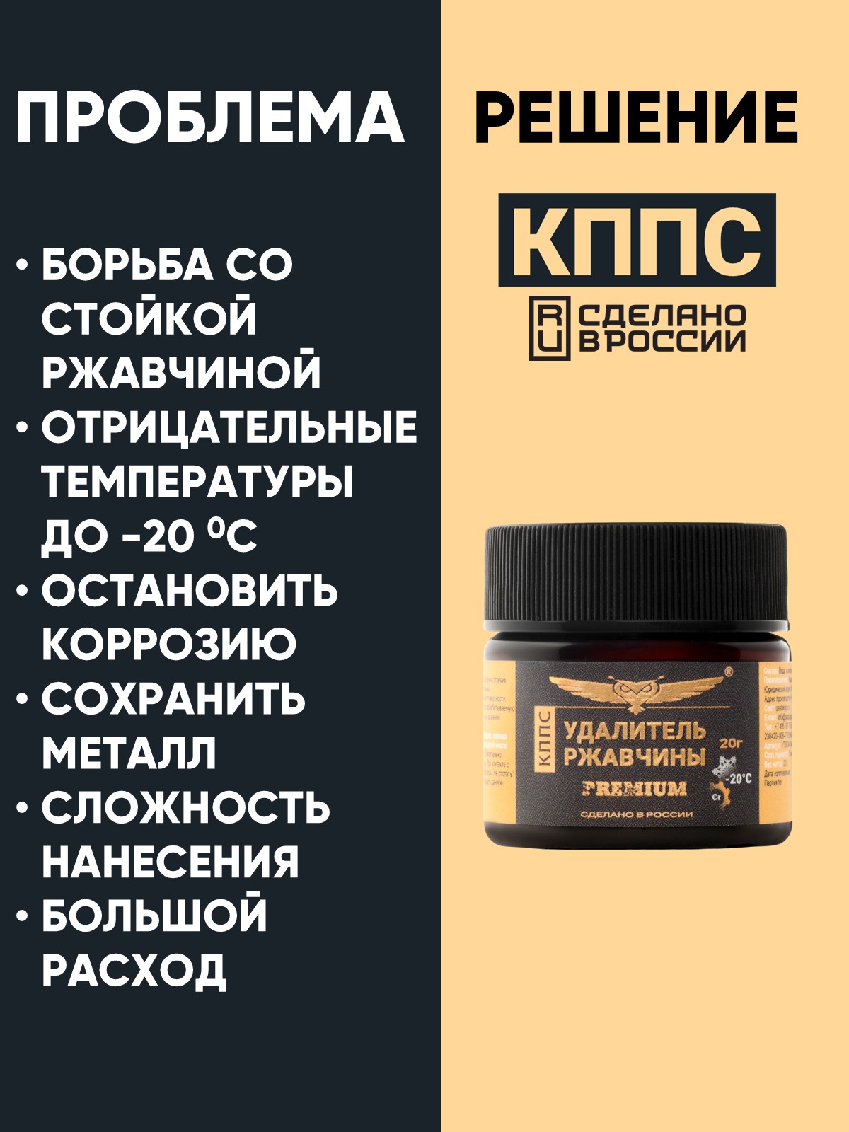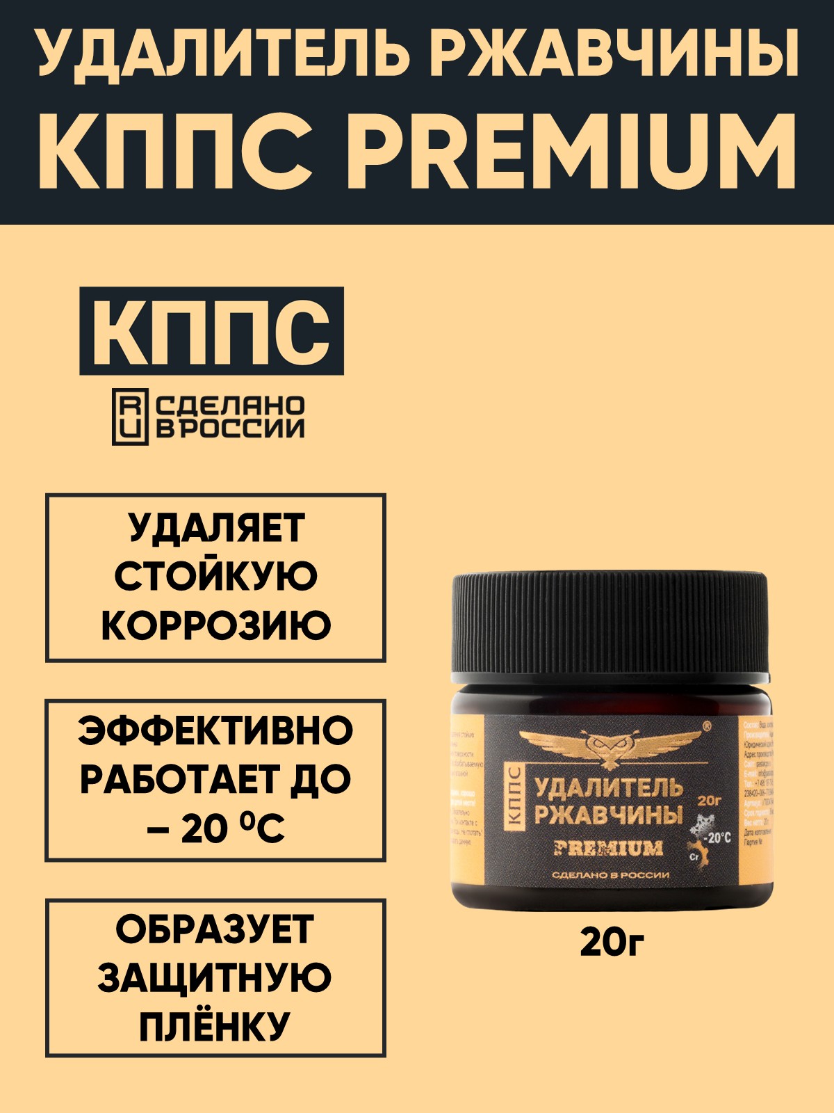 Технические характеристики Удалитель ржавчины КППС PREMIUM (20г), Паста антикоррозионная