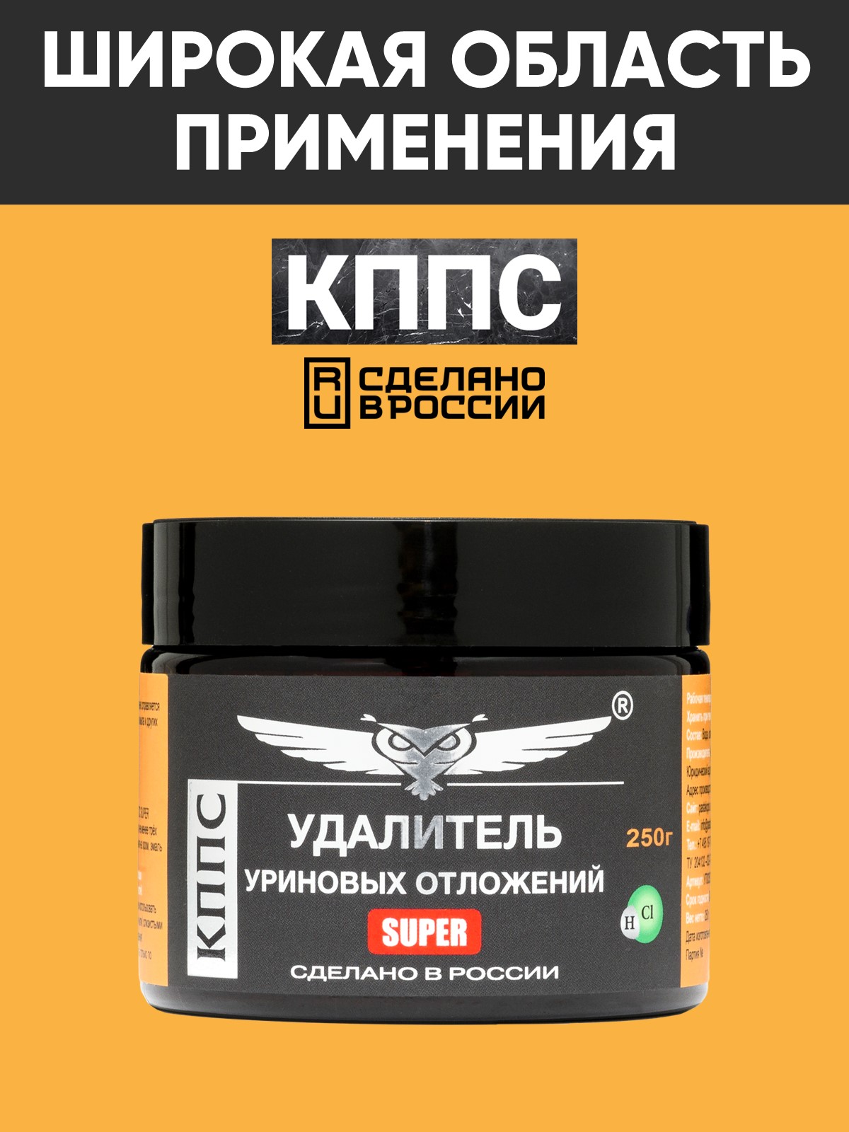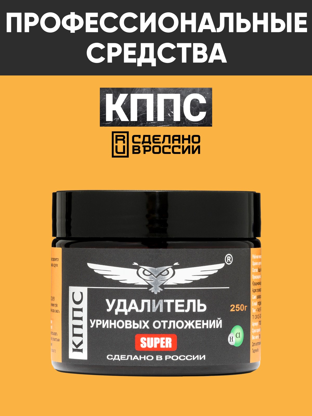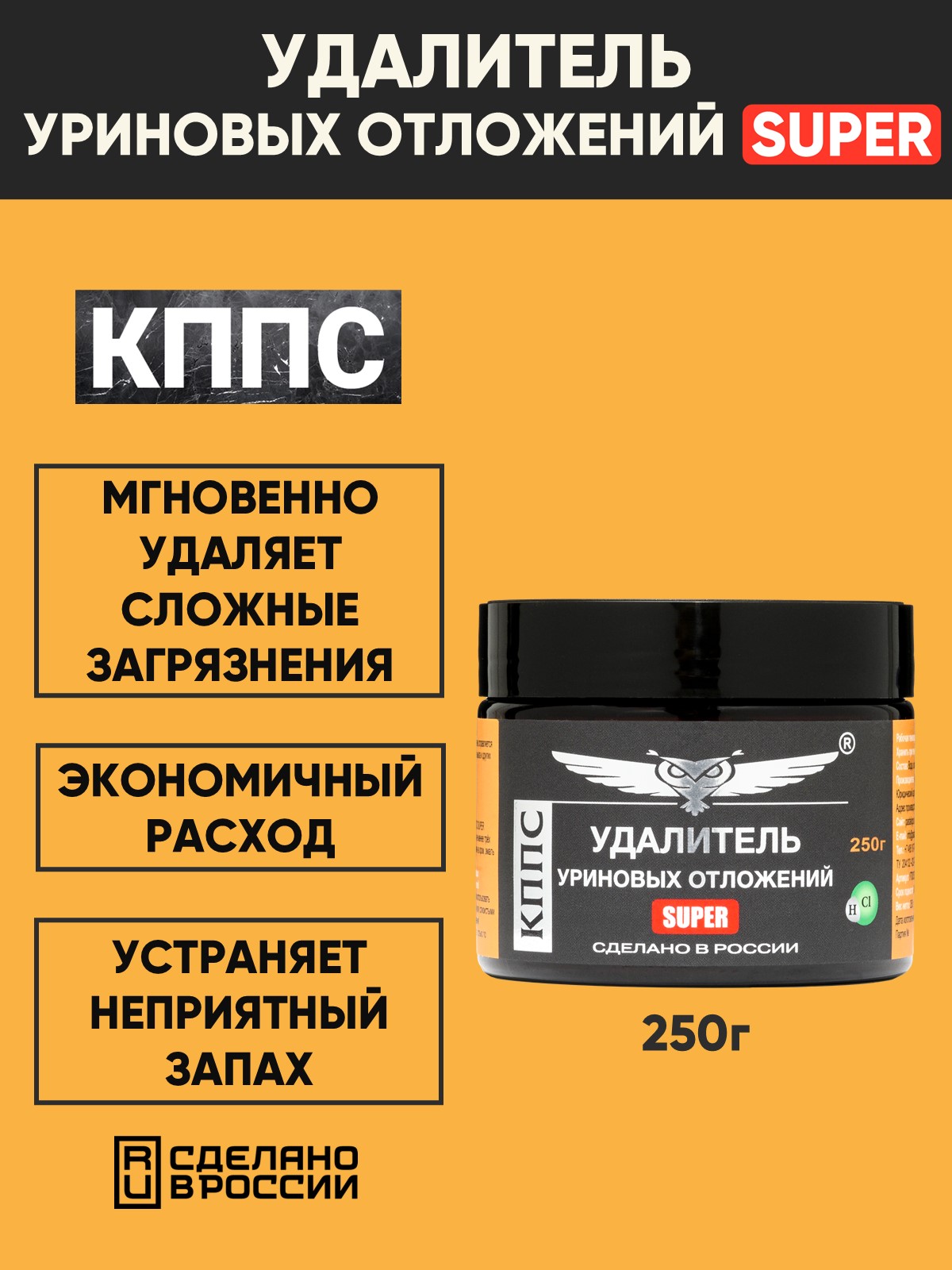 Технические характеристики Удалитель уриновых и известковых отложений КППС SUPER (250г)